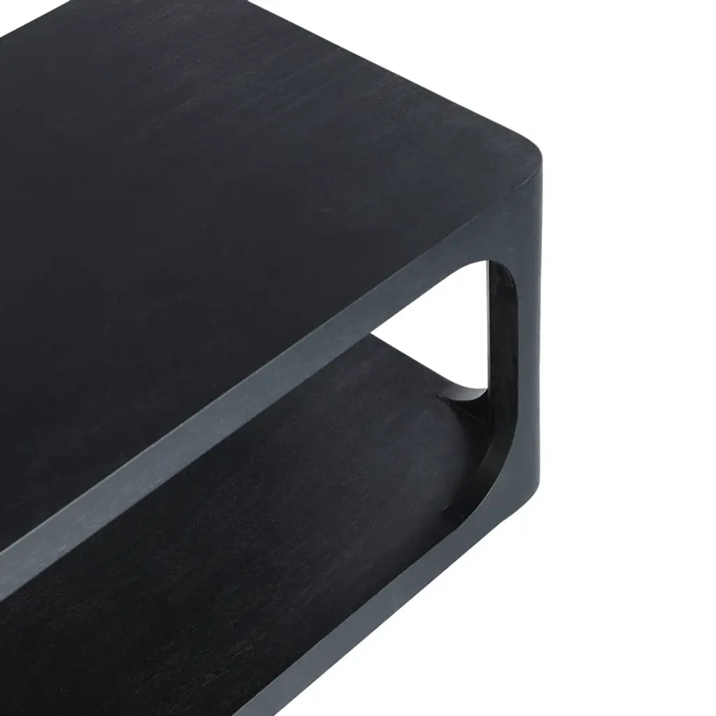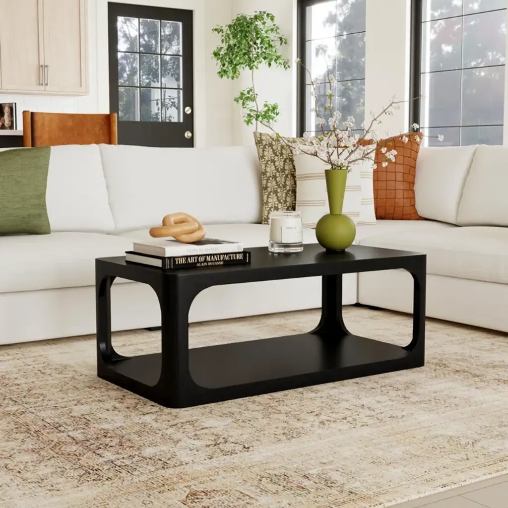 Bring modern design home with the Sybil coffee table, featuring smooth sanded lines great for pairing with any décor. Crafted from solid mango wood, this piece has a sculptural design with straight legs that curve to connect the bottom shelf to the tabletop. Ideal for keeping pillows and blankets organized, this coffee table offers endless opportunities. Best of all, it arrives fully assembled and ready for use.