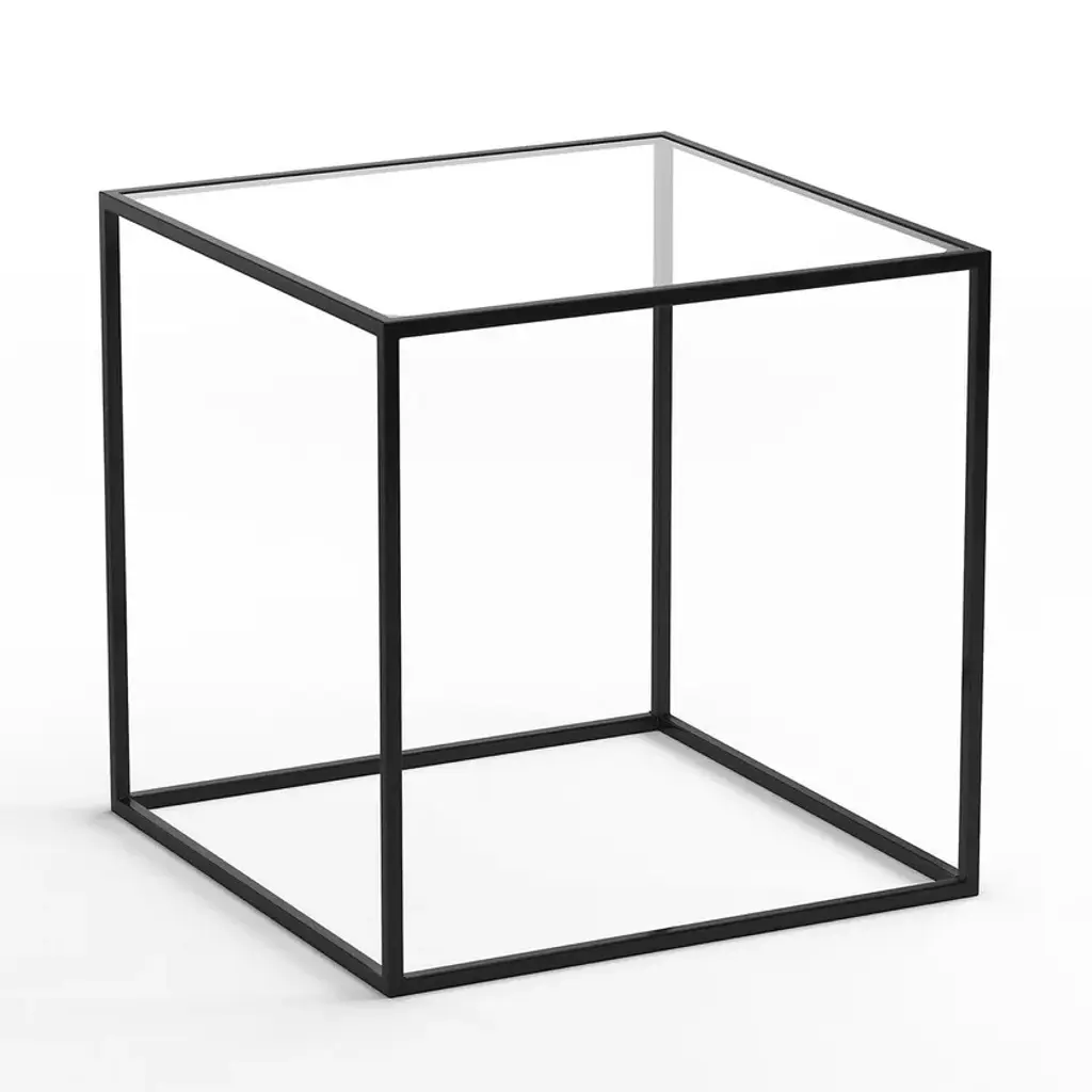 The square Sybil coffee table stands out for its elegant appearance thanks to its cubic shape and lacquered metal.Fine tubular metal frameTransparent glass top