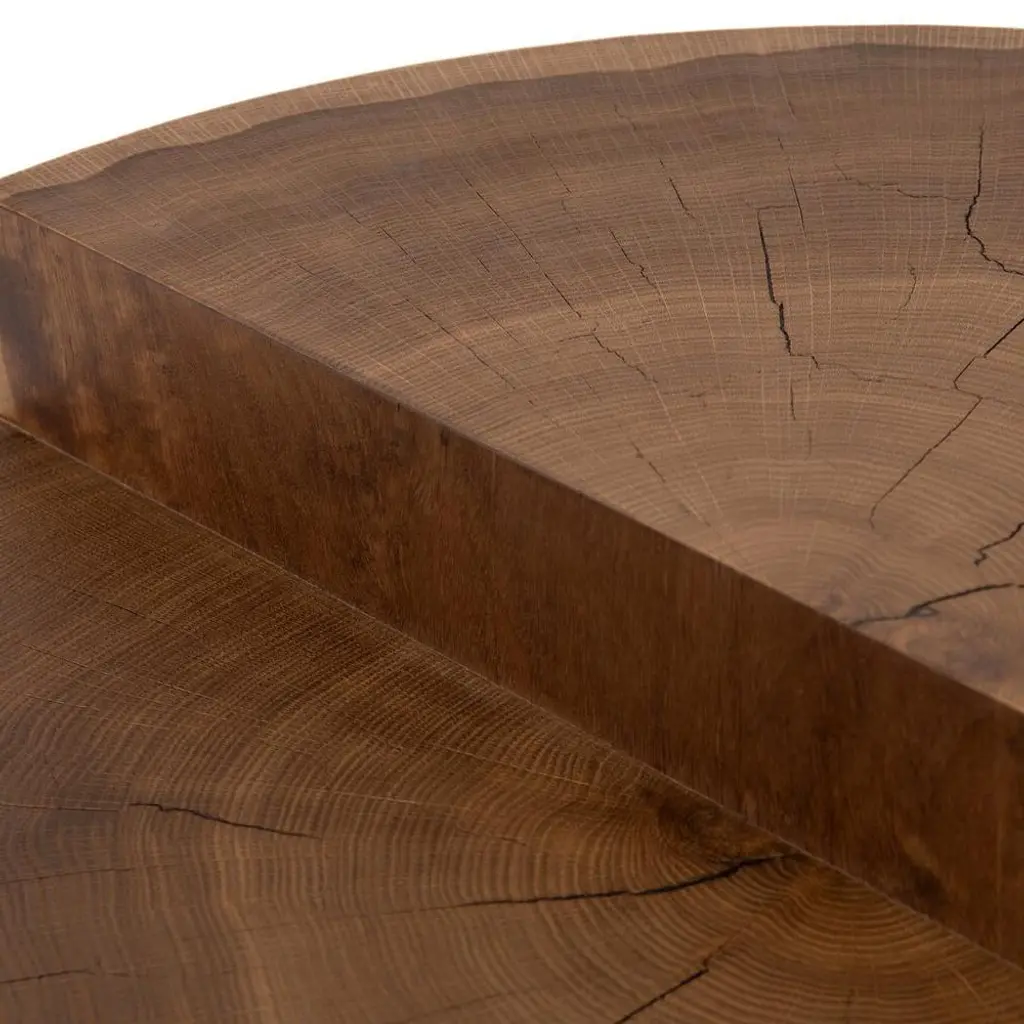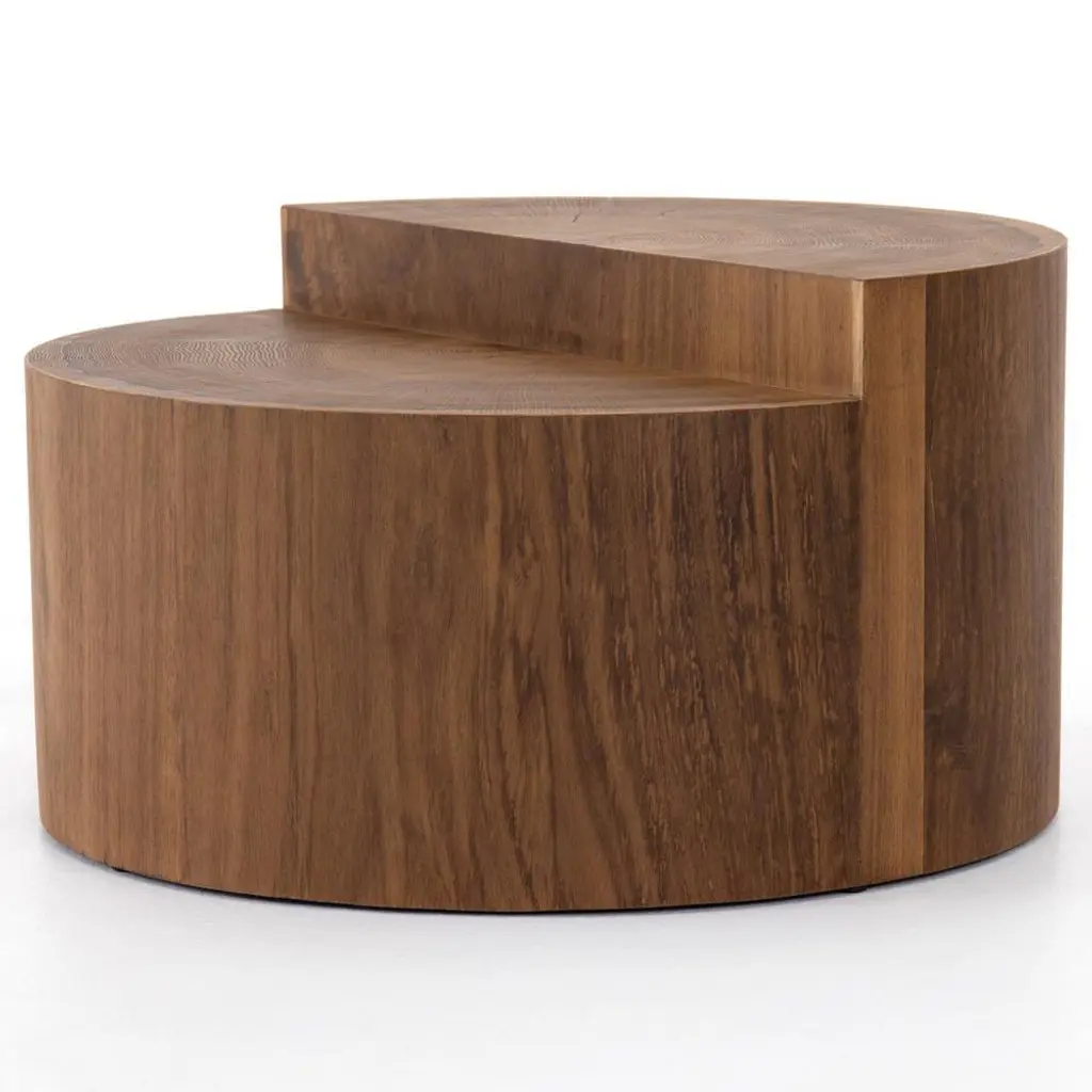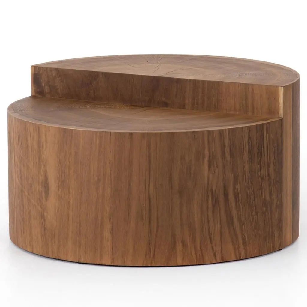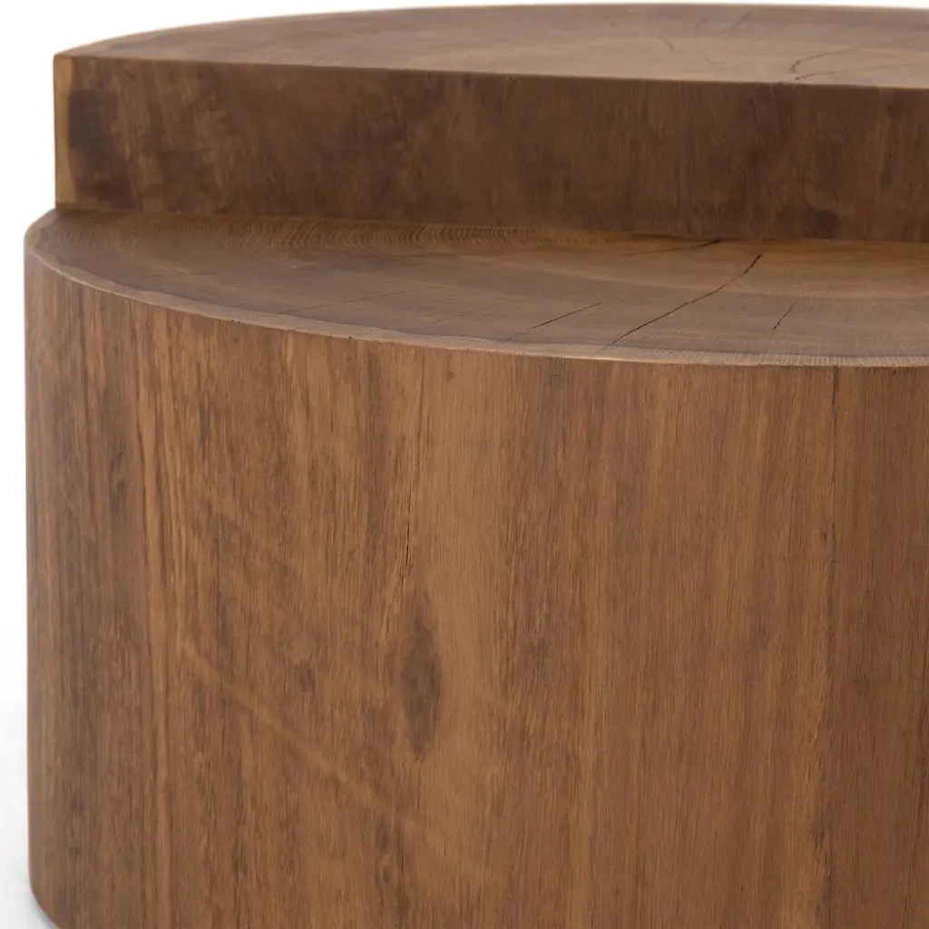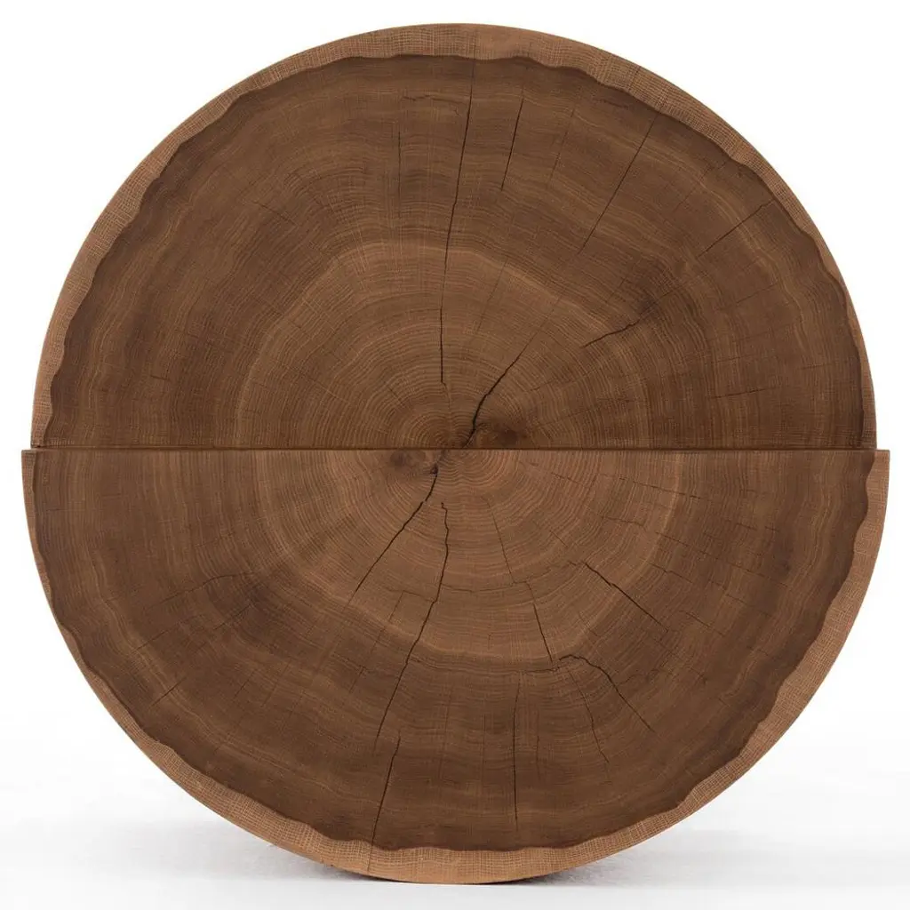 Sylvia Rustic Lodge Brown Wood Drum Coffee Table