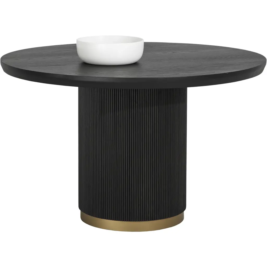 The T-Table Maxi in glossy black with gold details embodies a harmonious blend of functionality and elegance. Designed by Jaime Hayon, this unique piece serves as an auxiliary table, making it perfect for placement beside a chair, sofa, or lounge setting. Its compact size enhances versatility, allowing for easy movement and arrangement according to personal preference. Reminiscent of a cluster of mushrooms in a serene forest, each T-Table can stand alone or be grouped together for a striking visual impact. The bold contrast of glossy black and intricate gold detailing adds a touch of sophistication, making it an ideal decorative element in any modern interior. Whether utilized for serving drinks or as a statement art piece, the T-Table Maxi is designed to enhance any living space with its organic yet contemporary aesthetic.