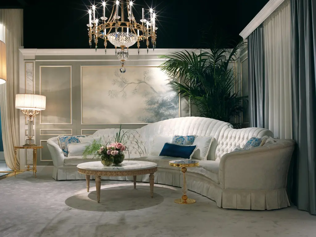 The T167/C coffee table is a timeless addition to any luxury living room. The soft and fine finish Decapé gold with patina CO10 emphasizes the artfully hand carved solid wood frame. The elegant Crema Delicato (MR31) marble top perfectly fits any setting. The T167/S side table is also available upon request.100% handmade and made in Italy, the top notch quality of design and material is what distinguishes the brand Zanaboni and that makes it one of the leading brand in the high end luxury made in Italy furniture industry.Please note: Prices do not include VAT. VAT may be added depending on the ship-to location.