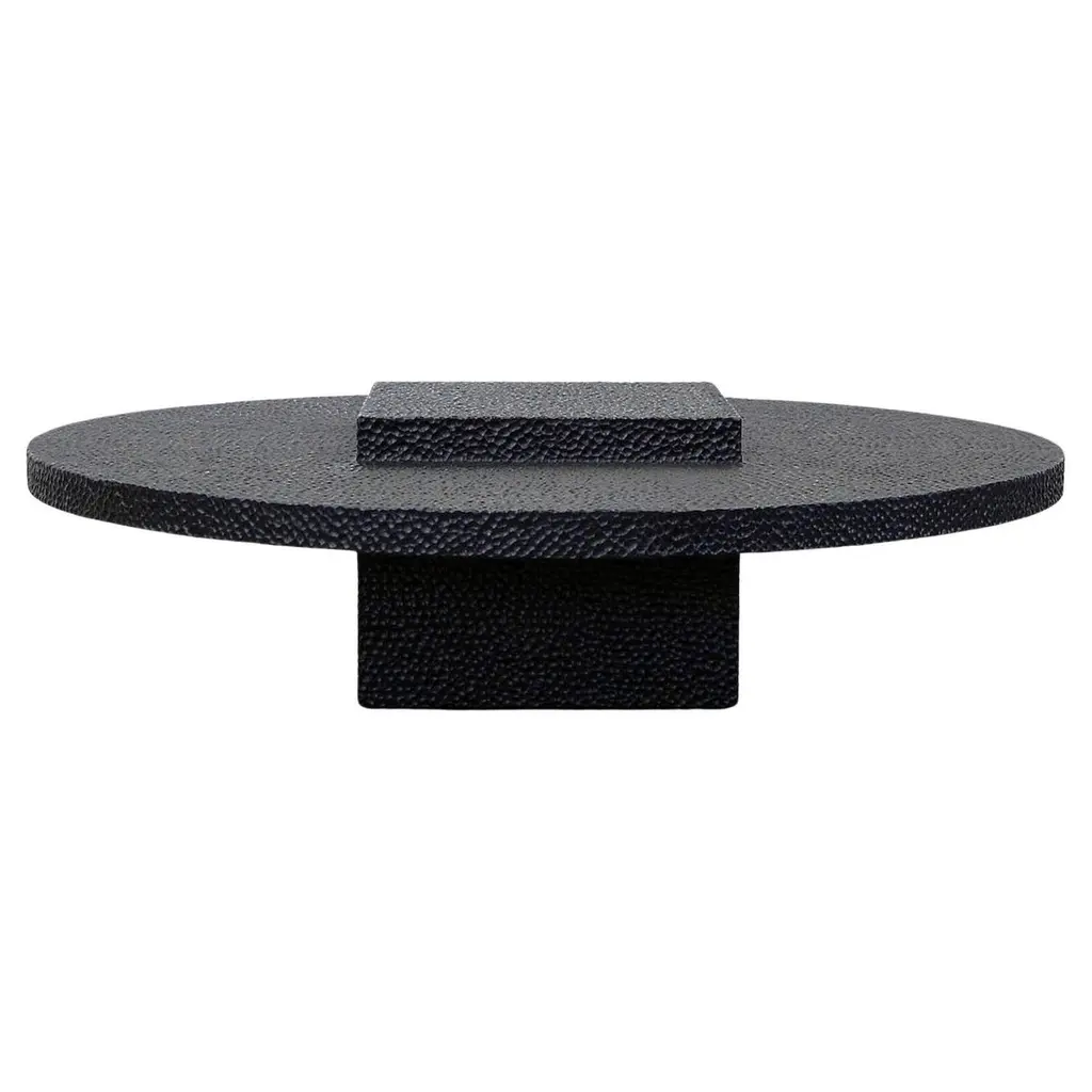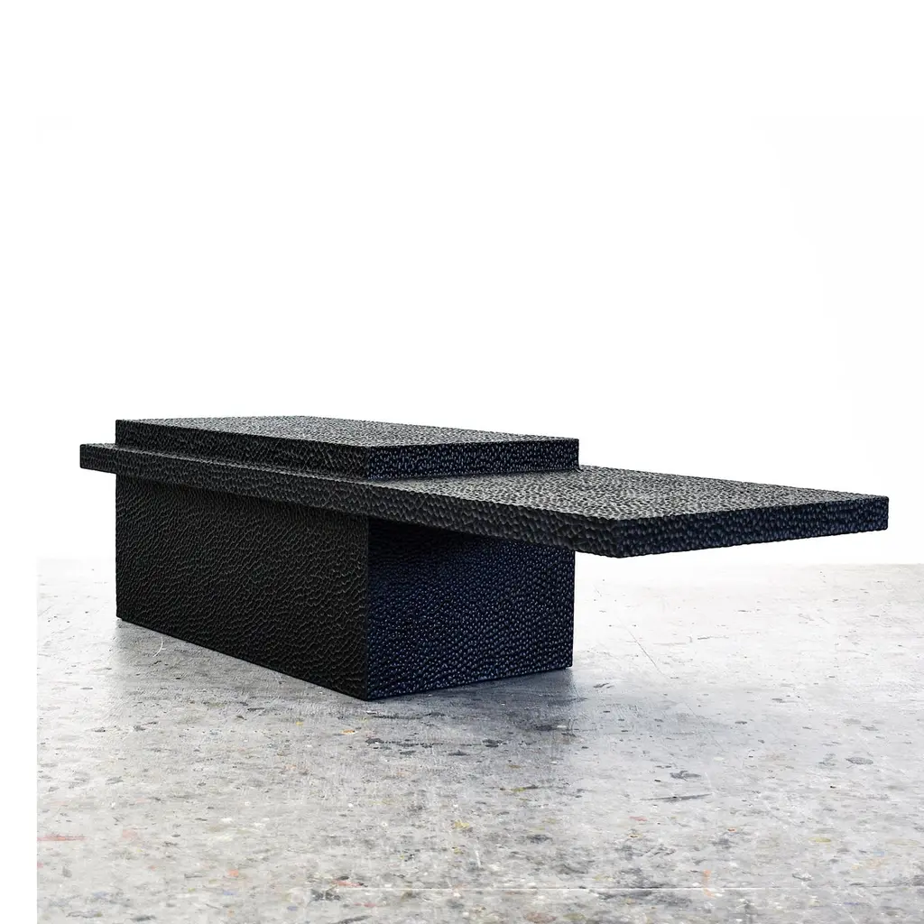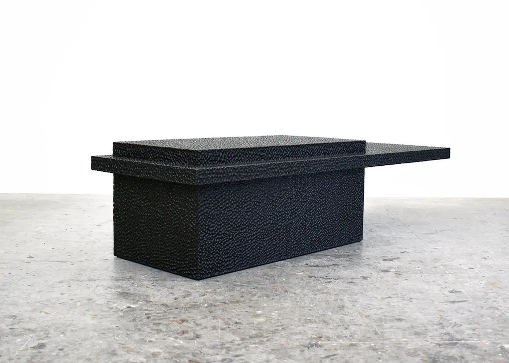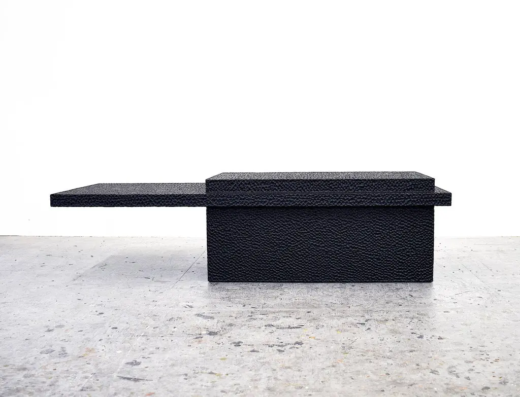 T2 coffee table by John Eric ByersDimensions: 35.5 x 155 x 55.9 cmMaterials: carved blackened MapleAll works are individually handmade to order.John Eric Byers creates geometrically inspired pieces that are minimal, emotional, and modernly refined.John's individually handmade work is guided by purity in form, surface texture, structure, and respect for use of materials. Heralded as a leading American artist working in wood, permanent collections include the Smithsonian American Art Museum, the Philadelphia Museum of Art and the Museum of Arts and Design in NYC. Numerous awards include a Louis Comfort Tiffany Foundation Award, New York Foundation of the Arts Awards, and inclusion in the Smithsonian's Oral Archives of American Arts.