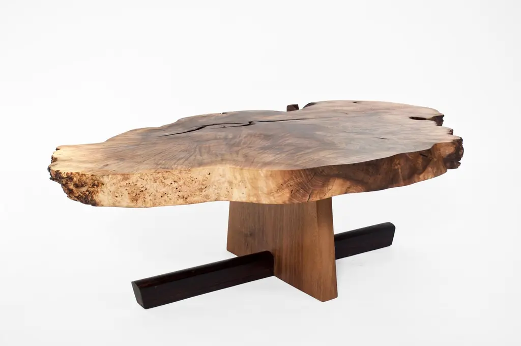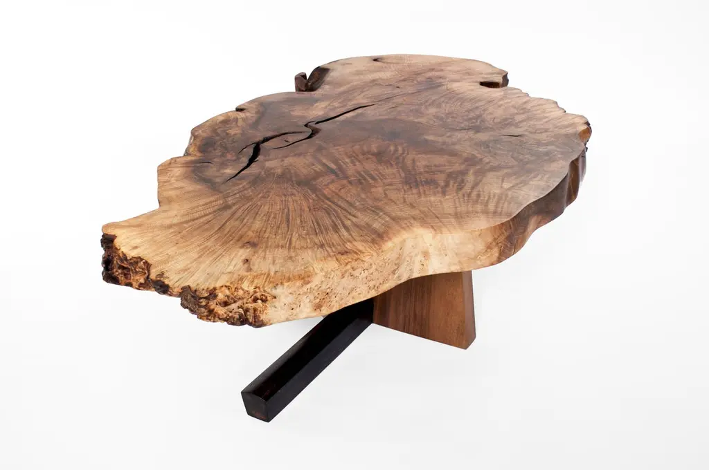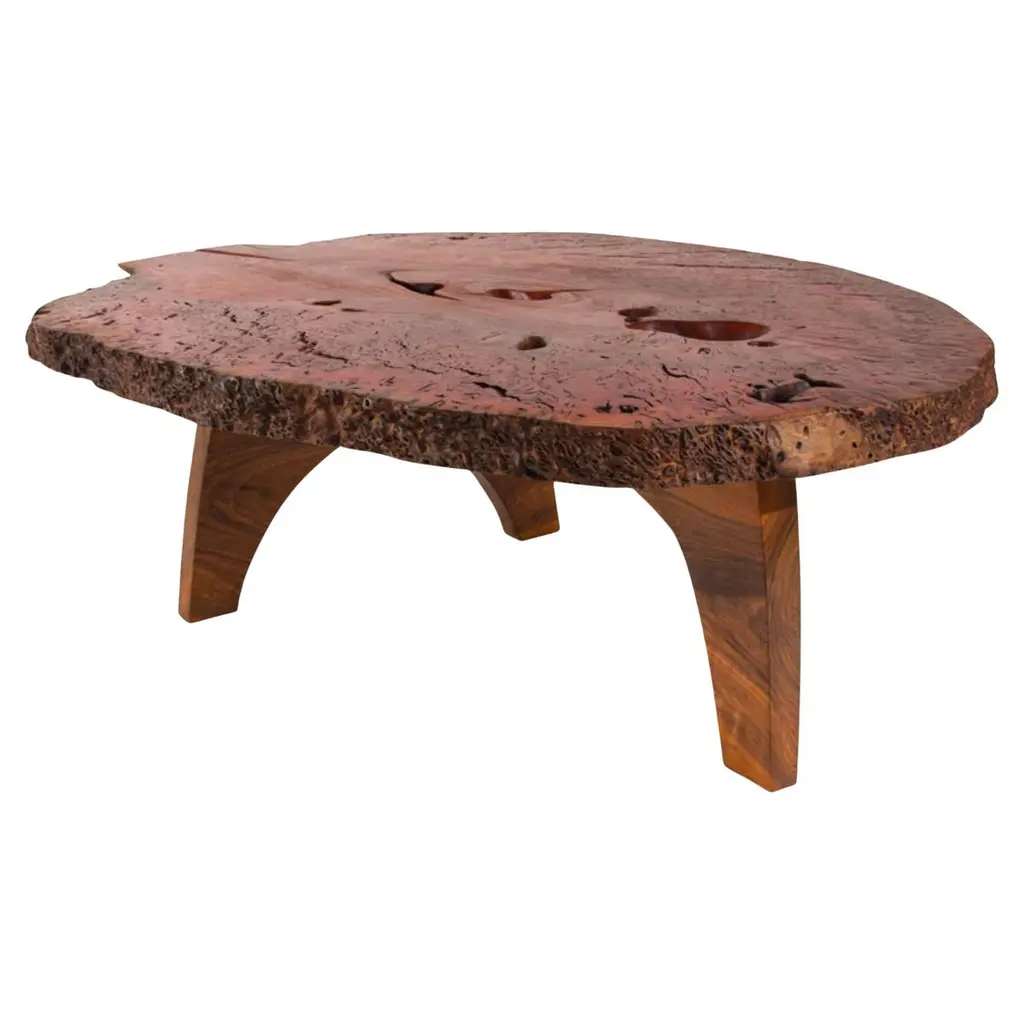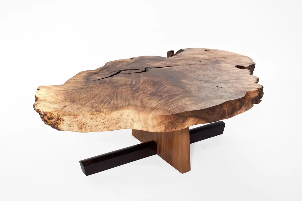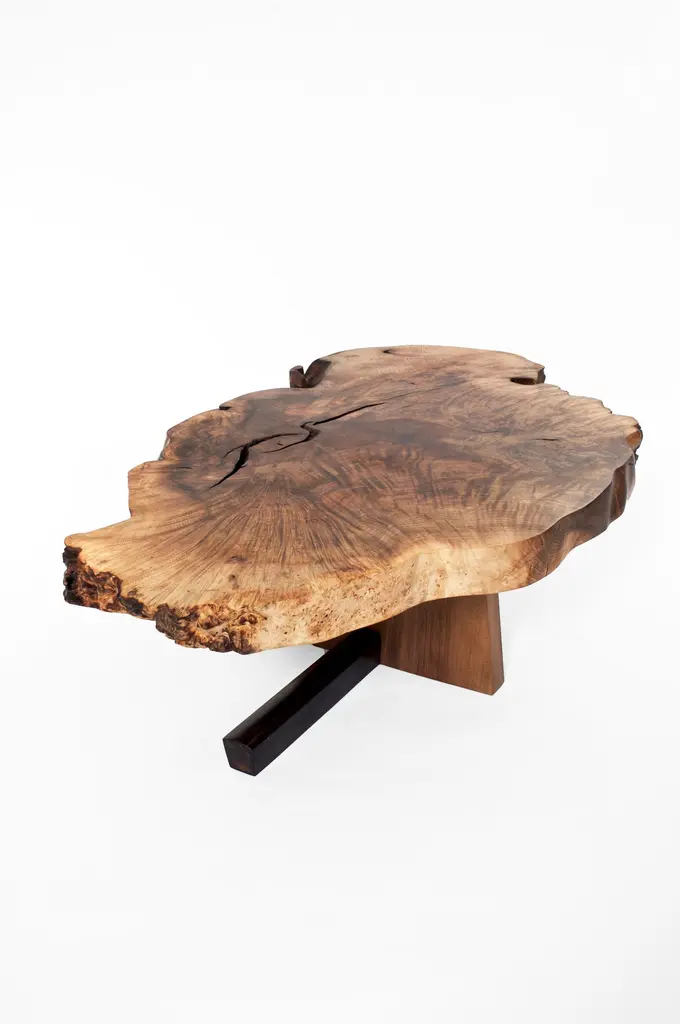 T2611 Coffee Table in Wenge, Caucasian And European Walnut by Jörg PietschmannDimensions: D 72 x W 117 x H 37 cm.Materials: Caucasian walnut, European walnut, and wenge.In Pietschmann’s sculptures, trees that for centuries were part of a landscape and founded in primordial forces tell stories inscribed in the memory of their fibers.The forms Jörg Pietschmann pares from ancient trees are extensive and astonish with their physical presence, a combination of elegance and primeval nature. Pietschmann’s sculptures are monuments to the trees from which they derive.Being endowed with the ruggedness of primeval matter gives them a veritable vitality: figures that appear to have grown into their sculptural form of their own accord. But Pietschmann’s tangibly present bodies have undergone a considerable degree of metamorphosis.In order to generate these unique tree specimens he examines the tree’s morphology and intrinsic inner map until the courses of its grain, of a curve, knots and cracks concur with his projections. The exploratory process is accompanied by constant modification, giving at the start of each new piece no more than an intimation of the figure that will later emerge. In their completion, Pietschmann’s sculptures once more become universal form.Jörg Pietschmann`s workshop is situated on the countryside close to Hamburg. He works with indigenous timber as oak, lime tree, beech, poplar, olive tree and maple felled by the wind or human hand, together with tropical timber found on his travels.