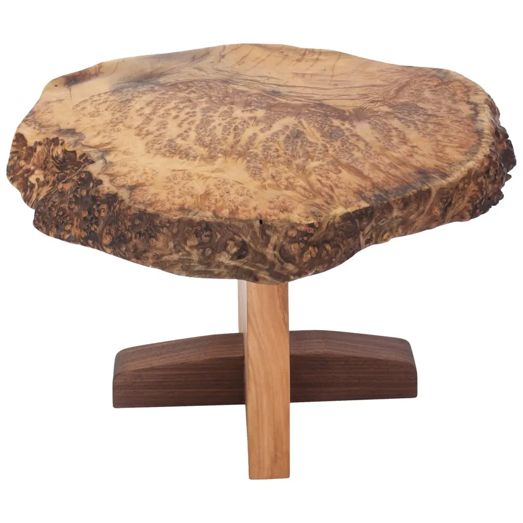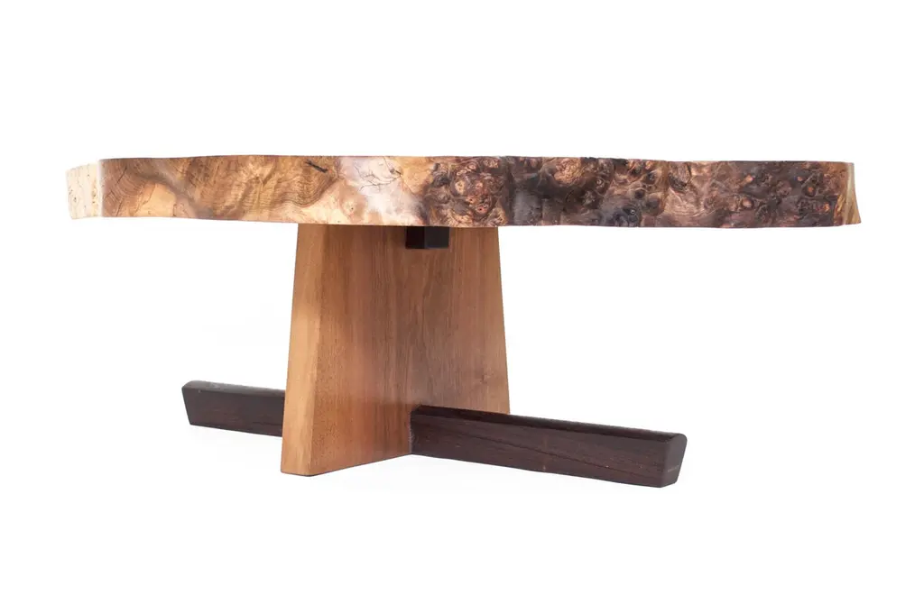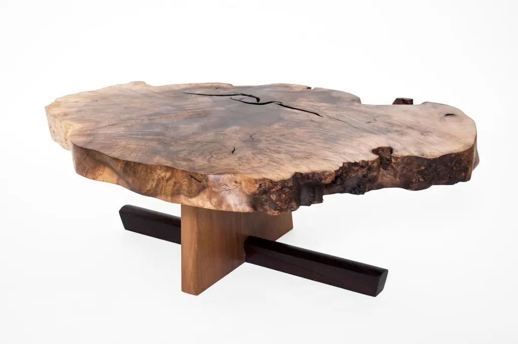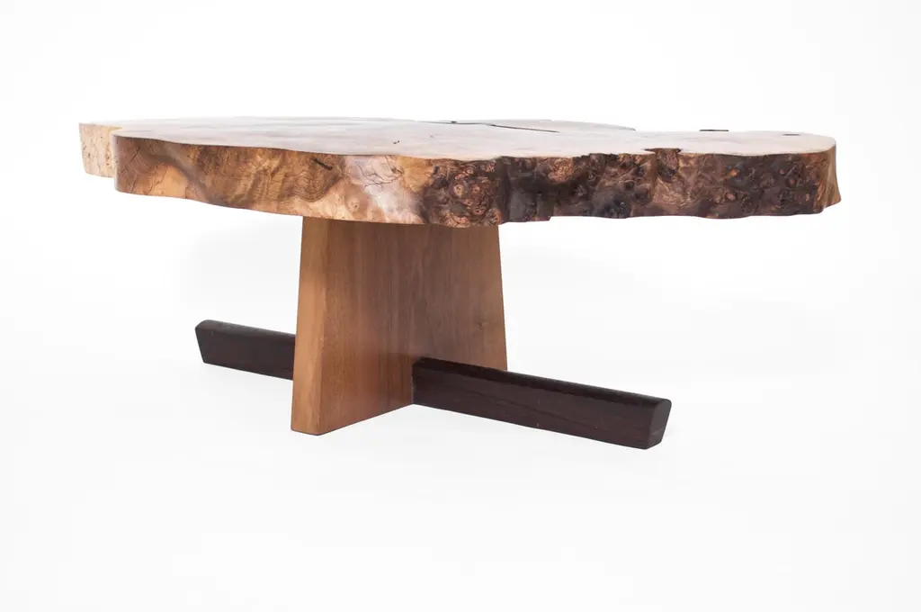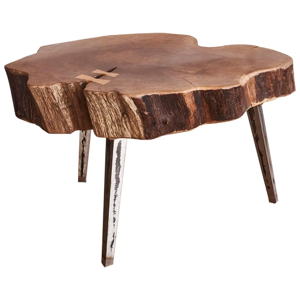 T2611 Coffee Table in Wenge, Caucasian And European Walnut by Jörg PietschmannDimensions: D 72 x W 117 x H 37 cm.Materials: Caucasian walnut, European walnut, and wenge.In Pietschmann’s sculptures, trees that for centuries were part of a landscape and founded in primordial forces tell stories inscribed in the memory of their fibers.The forms Jörg Pietschmann pares from ancient trees are extensive and astonish with their physical presence, a combination of elegance and primeval nature. Pietschmann’s sculptures are monuments to the trees from which they derive.Being endowed with the ruggedness of primeval matter gives them a veritable vitality: figures that appear to have grown into their sculptural form of their own accord. But Pietschmann’s tangibly present bodies have undergone a considerable degree of metamorphosis.In order to generate these unique tree specimens he examines the tree’s morphology and intrinsic inner map until the courses of its grain, of a curve, knots and cracks concur with his projections. The exploratory process is accompanied by constant modification, giving at the start of each new piece no more than an intimation of the figure that will later emerge. In their completion, Pietschmann’s sculptures once more become universal form.Jörg Pietschmann`s workshop is situated on the countryside close to Hamburg. He works with indigenous timber as oak, lime tree, beech, poplar, olive tree and maple felled by the wind or human hand, together with tropical timber found on his travels.