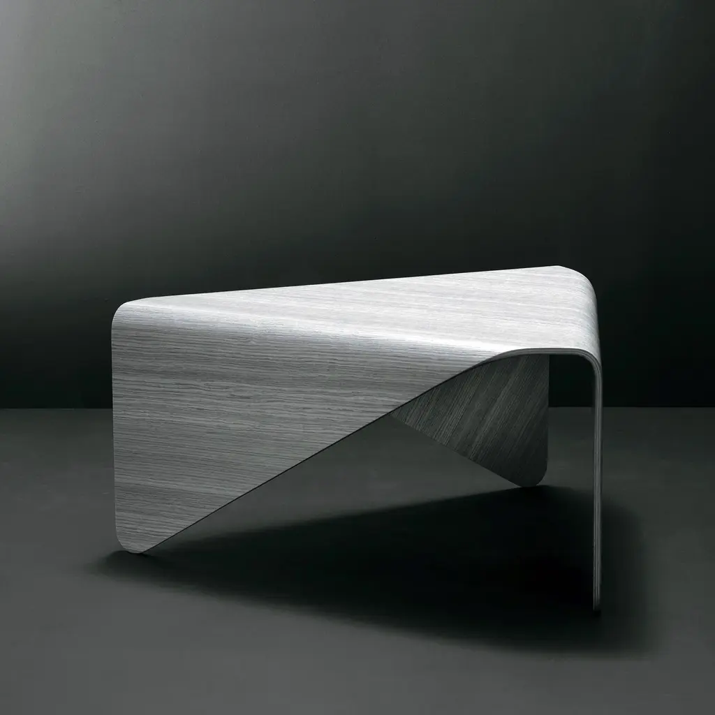 Isokon’s T46 takes the form of an equilateral triangle fashioned in 7 layers of laminated wood, creating a strikingly elegant coffee table. Designed in 1946 by Hein Stolle, the prototype was not put into production until its 2001 discovery by London’s Isokon and now offered in molded birch, oak or plywood veneer and made in the UK.