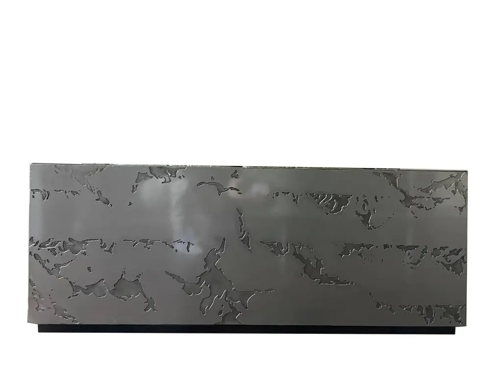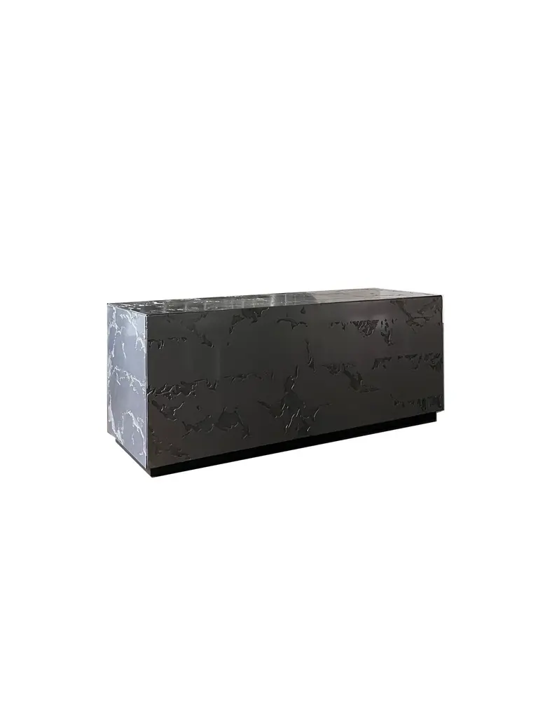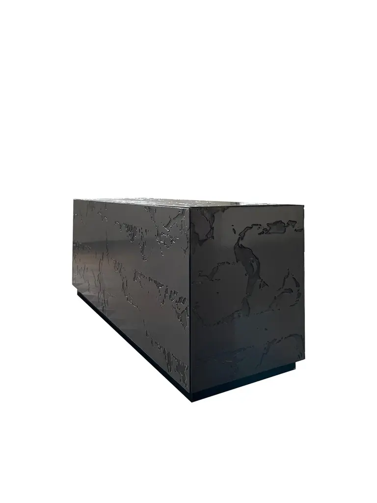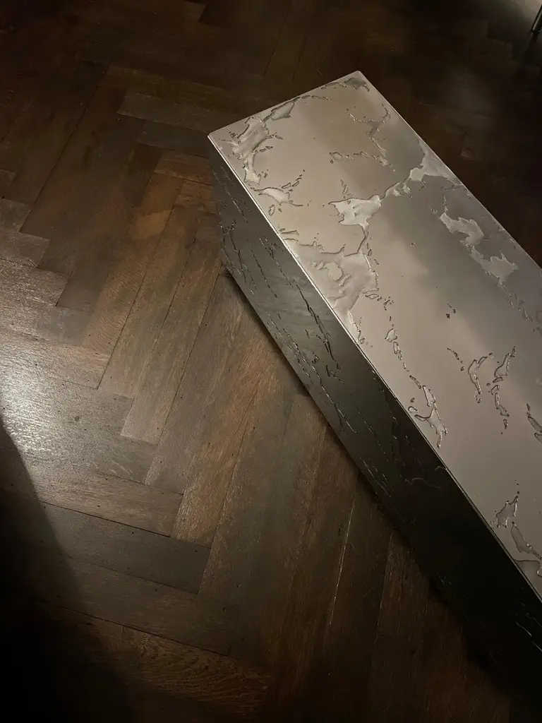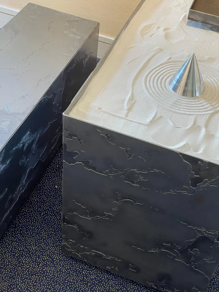 Table Basse et Jardin Zen en Pierre D'acier small by Chanel KapitanjMaterials: Gray or black patinated steel. Glossy or matt varnish in the oven.Dimensions: L50 x W 30 x H 40 cm.Also available to measure, and in other shapes (cylinders, coffee table, etc.).Please contact us.Textured steel coffee table. The designs are made by hand, so each piece is unique. Each element is immersed in an acid bath for 4 hours, cleaned and sanded.The result obtained and the bite depth is random. Everything is then varnished in the oven. Available in matt or glossy varnish. Gray steel or black patinated steel finish.The Zen garden is a call for calm and appeasement. The texture of steel stone is reminiscent of mineral, nature and sand. Supplied with a rake and sand this piece adds a touch of serenity and relaxation to your interior. In these times of tension and in light of the news, a little peace and time for yourself is important.Born in Liège in 1992, Chanel Kapitanj studied Industrial Design in Belgium. Her fascination for metallic materials and manual work prompts her to train as a metallurgical welder. As a result, in 2017, he launched his Design and Blacksmithing studio.It is with a minimalist approach and the highlighting of metallic materials that he tackles his projects.