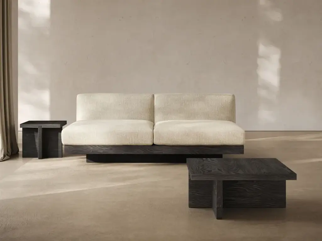 Table low Rudolf is a table made of oak. Disponibile in diversi modelli:B8521003: Rectangular - BlackB8521004: Square - BlackB8521007: Square - CognacAfter successful collaborations on tableware and outdoor furniture, Serax and Vincent Van Duysen join forces again to create a sofa collection representing the DNA of both institutions. “I thought it would be a nice idea if we could translate a custom-made product I very often produce in my projects into an edition piece. That’s how this collection started to take shape.” The name Rudolph was derived from Rudolf Michael Schindler, a major protagonist of mid-century American modernism. “I admire him a lot. The Mid-century style is very inspirational for my work; think of the typical built-in banquettes lining modern interiors. But the most significant inspiration for this collection was the sofa I have in my home in Portugal because of its proportions, lines, and the serenity you feel when looking at it or sitting on it.” The Rudolph sofa comes in a freestanding version, in a two to three-seater size, and single-seaters, with side tables in wood and marble tops. The freestanding side and centre tables complete the collection.After successful collaborations on tableware and outdoor furniture, Serax and Vincent Van Duysen join forces again to create a sofa collection representing the DNA of both institutions. “I thought it would be a nice idea if we could translate a custom-made product I very often produce in my projects into an edition piece. That’s how this collection started to take shape.” The name Rudolph was derived from Rudolf Michael Schindler, a major protagonist of mid-century American modernism. “I admire him a lot. The Mid-century style is very inspirational for my work; think of the typical built-in banquettes lining modern interiors. But the most significant inspiration for this collection was the sofa I have in my home in Portugal because of its proportions, lines, and the serenity you feel when looking at it or sitting on it.” The Rudolph sofa comes in a freestanding version, in a two to three-seater size, and single-seaters, with side tables in wood and marble tops. The freestanding side and centre tables complete the collection. “I chose to work with solid black or cognac tinted wood and marble for their texture, warmth, and tactility. All fabrics selected for this collection are custom made in Belgium and come in off white, beige, sand, smoke and bone color schemes. “Rudolph is an organic and super comfortable sofa range as well as extremely versatile. We are very happy with the final result, which is both very Serax and very Vincent Van Duysen.
