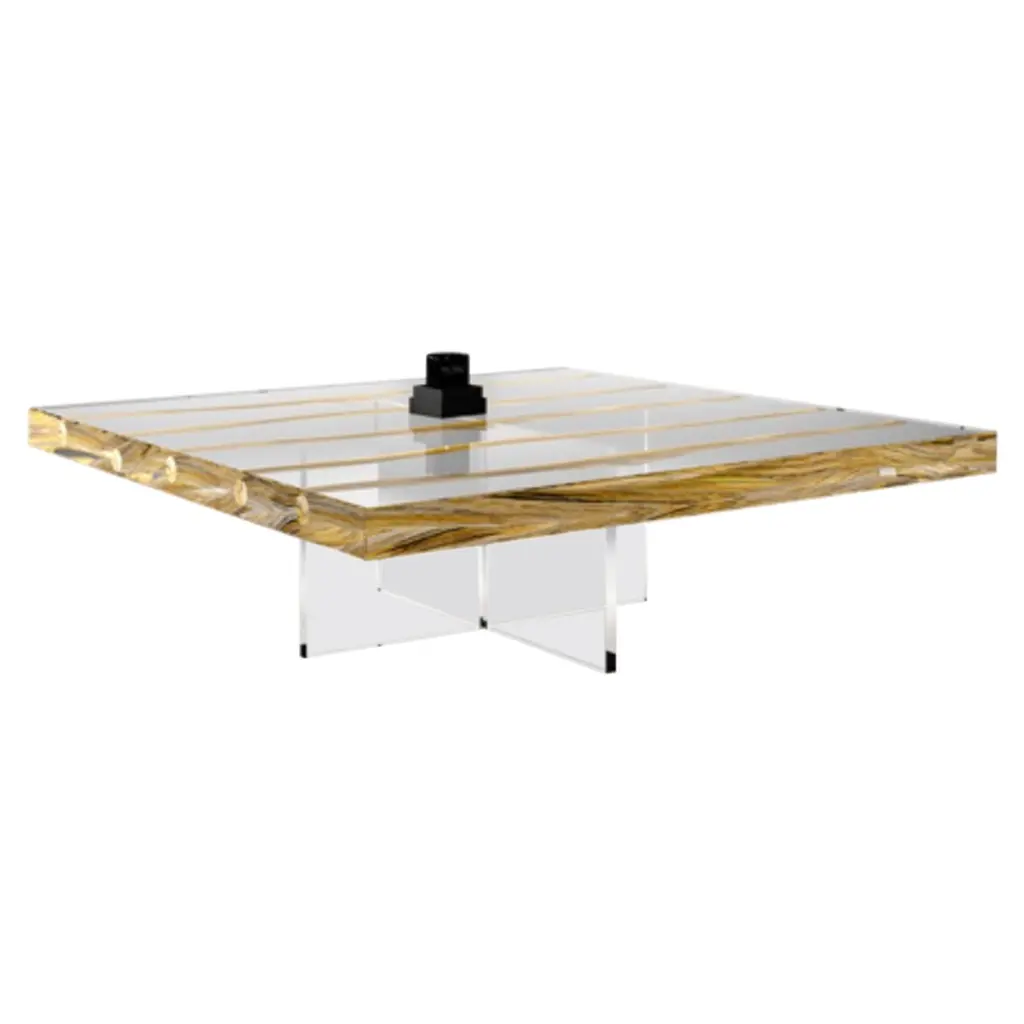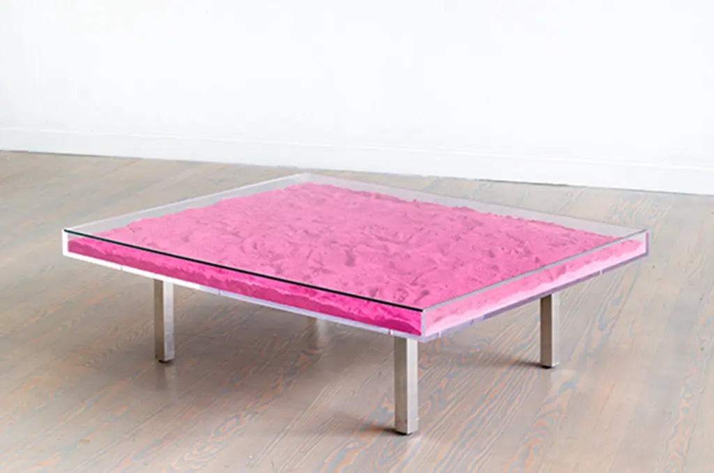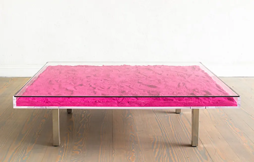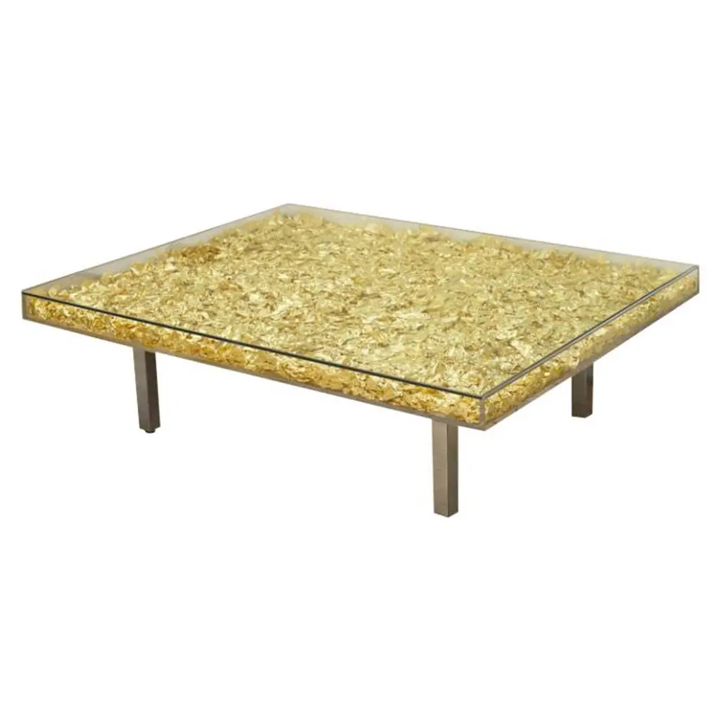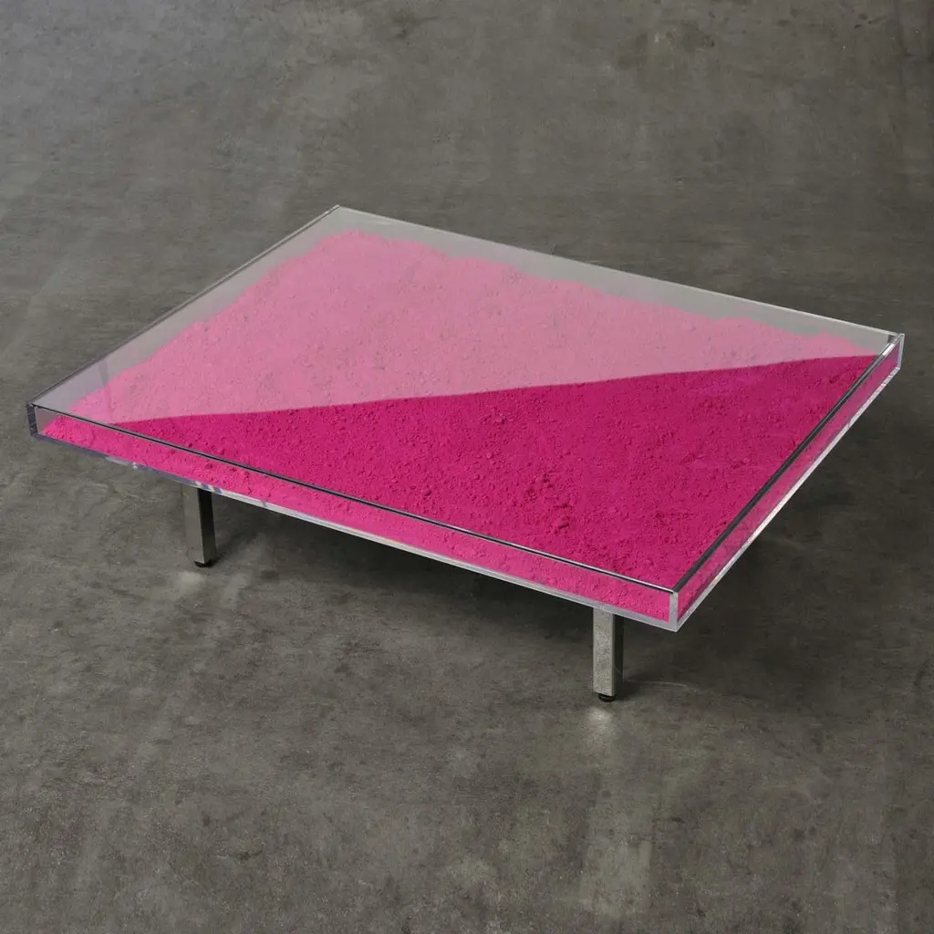 Of all the artist-designed furniture from the last century this is perhaps one of the most famous examples. This iconic table is from an edition begun in 1963 under the supervision of Yves Klein's widow, Rotraut Klein-Moquay, based on a model he designed in 1961. The artist died in 1962 and other than the two models owned by his estate there are no vintage tables in this edition. From 1963 to the present, the Yves Klein Estate in Paris, France has overseen the production of this coffee table edition. We work directly with the estate and the tables we sell have a signed and numbered placard of authenticity issued by the estate affixed to the underside. They are new and in pristine condition and ship directly from Paris all-over the world.Klein designed the table in the three materials most common to his work at the time: International Klein Blue (IKB™) pigment, rose pigment, and gold leaf, and all three variations have very strong and active secondary markets. The coffee tables are a controlled edition which means that the estate produces a limited number each year. The exact number produced of each variation is not made public though certainly in the early years few, if any, tables were made. Over the last decade as the tables have been in more demand their availability has been more limited which has, in turn, created their strong secondary market. What is most important to understand about this edition is that the estate does not view tables made at an earlier date as any more valuable than those produced today.The sides and base of the table are plexiglass and the top is glass which make the table surprisingly functional and easy to maintain. We supply detailed installation instructions for all three table variations that can be followed by any experienced art installer. If you are in the New York City area we are available to oversee the installation or can assist in finding an installer here or throughout the world.Please contact us for pricing information or with any additional questions about this edition.