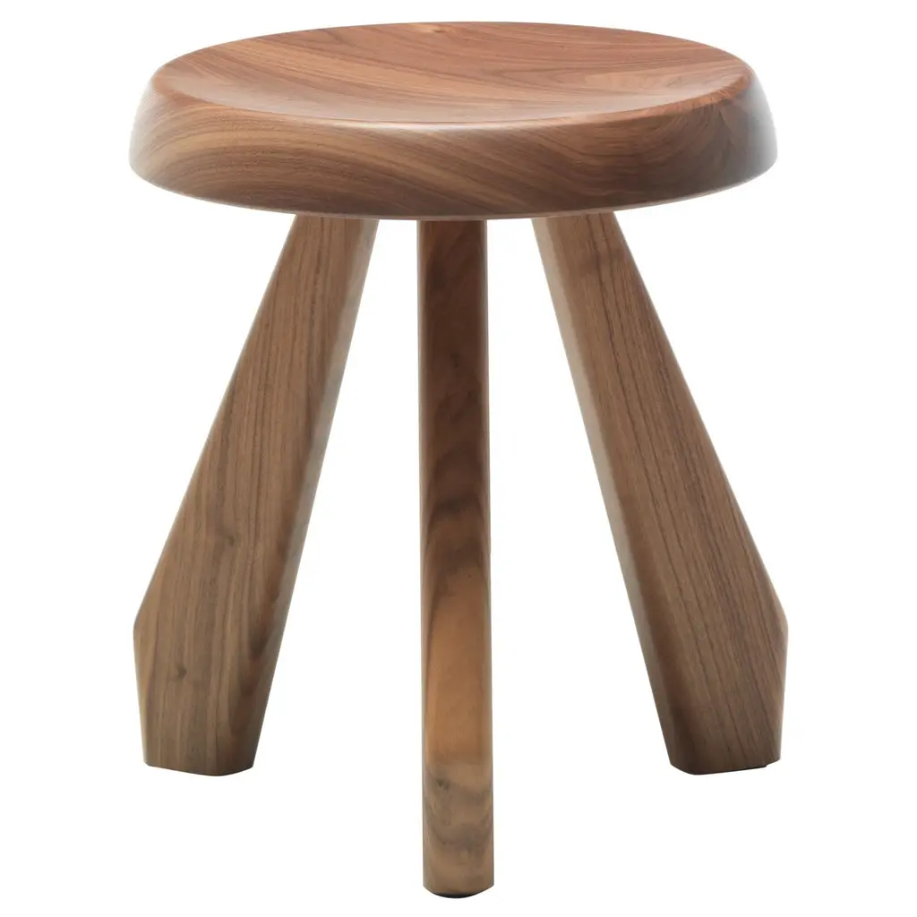 Both pieces are inspired by the mountains. While the latter takes its name from the milking-stool used by alpine shepherds, the former is inspired by the French locality much loved by designer and architect Charlotte Perriand. These furnishing accessories stand out for the honesty of their simple shapes and for the concrete expression of their materials and function. The turned seat meets the stylised legs both in the Tabouret Berger, a lower version with three legs in hand-turned solid wood, and in the taller Tabouret Méribel, which has three angular legs. Produced by Cassina thanks to a meticulous work of craftsmanship that respects the authenticity of the original design, these small masterpieces can be used on their own or in creative compositions. The use of solid wood communicates a pleasant sense of softness, and we see the continuity of the grain right the way across the seat to the borders, nature creating a unique pattern on each.Placed individually or in lively arrangements, the two low tables bring the pleasing lightness of solid wood to indoor settings emphasized by the continuity of the grain between the top and the edges and the countless natural variations in the wood.TOP Solid oak or American walnut slats.LEGS Solid oak or American walnut.FINISH Natural or black stained oak.