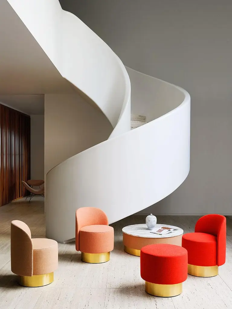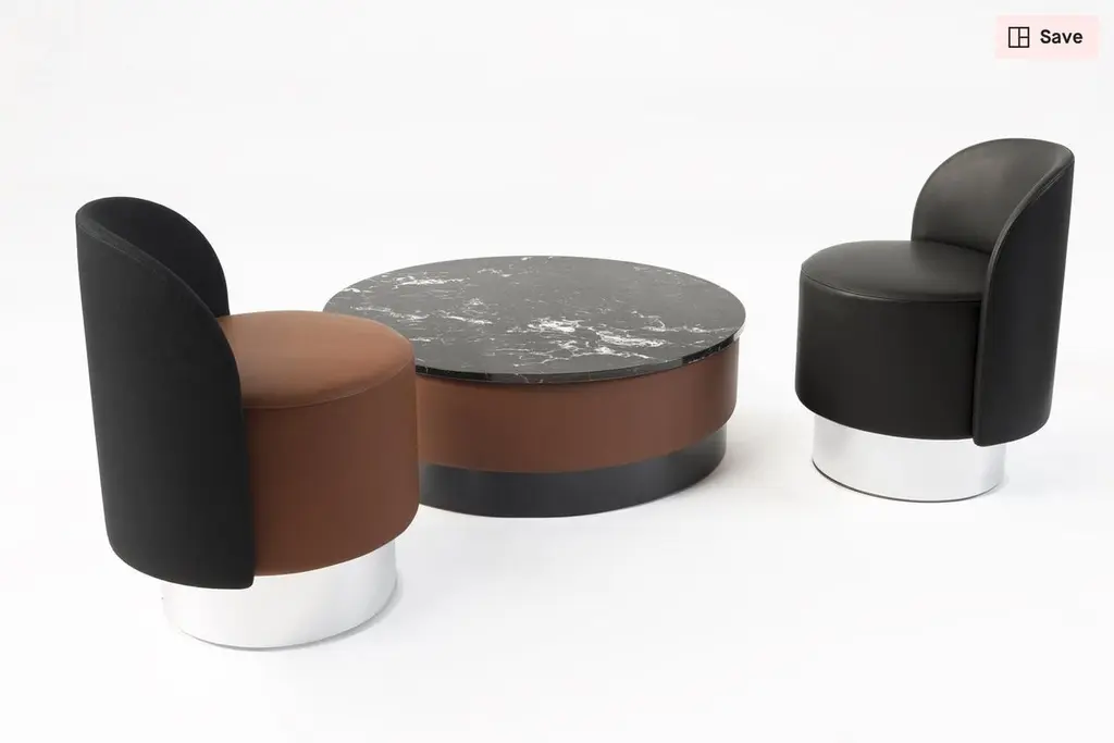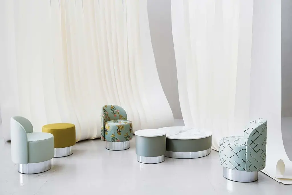 The new project with Studiopepe is a collaboration with designers Arianna Lelli Mami and Chiara Di Pinto, the creative minds behind the consultancy. Pastilles is a collection of small armchairs, ottomans and coffee tables, with soft and enveloping shapes that bring back childhood memories, the sweets. A contemporary reinterpretation of the Classic cockpit armchair, with a sinuous shell that contains the seat and that gives excellent comfort to the design. Completed by two tables of different sizes and an ottoman, these elements create a matched family of shapes that can be used as a system or as single objects.Base:01. Gloss aluminium02. Gloss black03. Matt black04. Matt champagne gold.