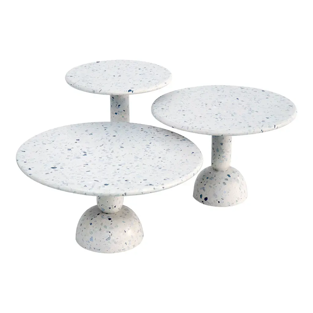Inspired by Stellar Works' commitment to East-West harmony, the Taiko side tables draw from the iconic Taiko drums. Their rounded aesthetics and commanding presence influence the carefully crafted shapes, blending cultural elements for visually striking and functional design. Available in three sophisticated terrazzo combinations - ice white, color gold, and carbon black - the Taiko side tables seamlessly combine form and function. The Taiko side tables stand as a testament to the successful fusion of innovation and functionality in contemporary furniture design.