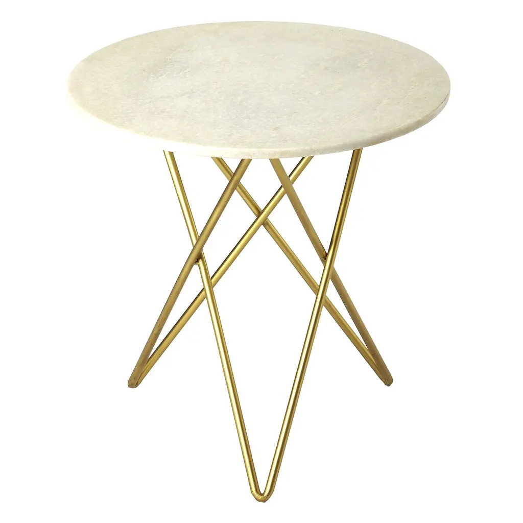 Tall Mini O Table, Brass - White Marble