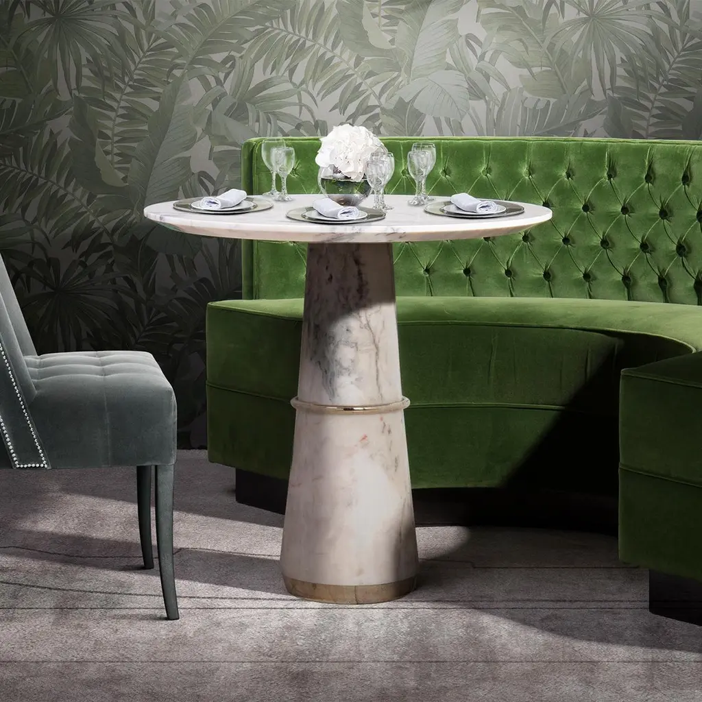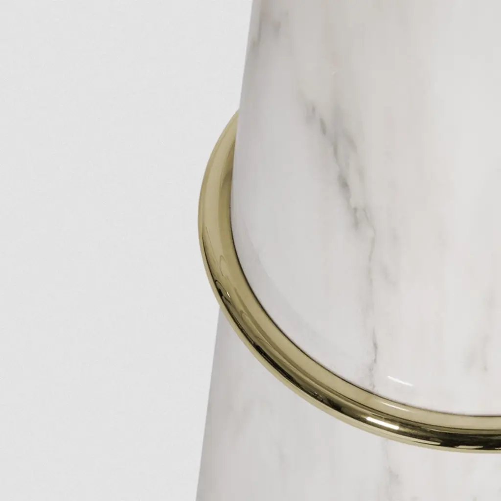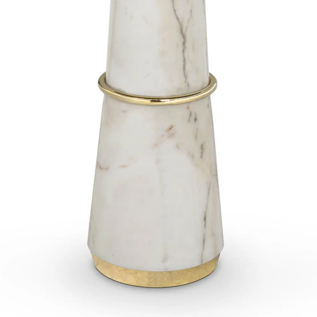 Coffee table Tama high all in solid white marble,with polished brass finishes.