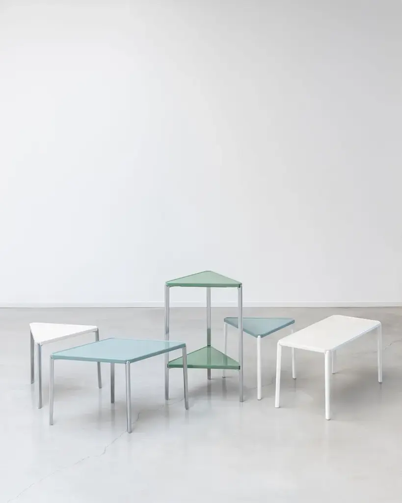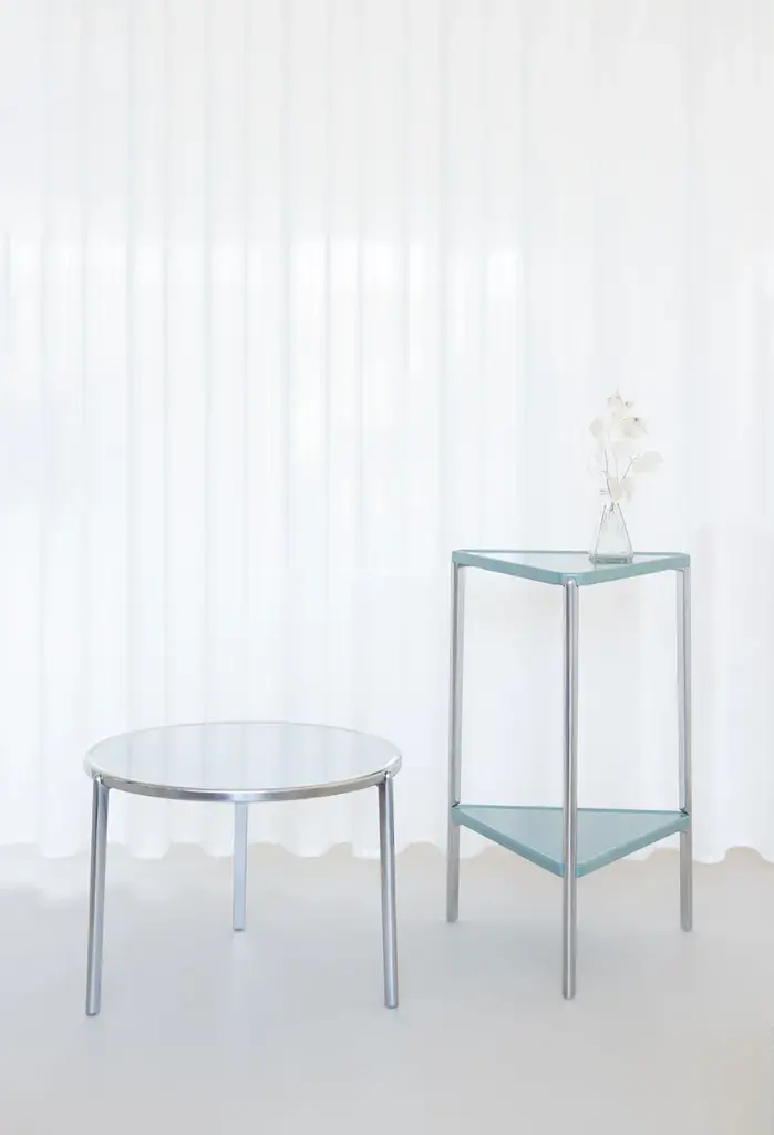 The Tambour coffee tables, designed in 2012 by Ronan & Erwan Bouroullec and made of die-cast aluminium, are designed to adapt to any environment. Structure in die-cast aluminium and polyester-coated aluminium (outdoor version). Liquid-painted concrete top, glossy finish.