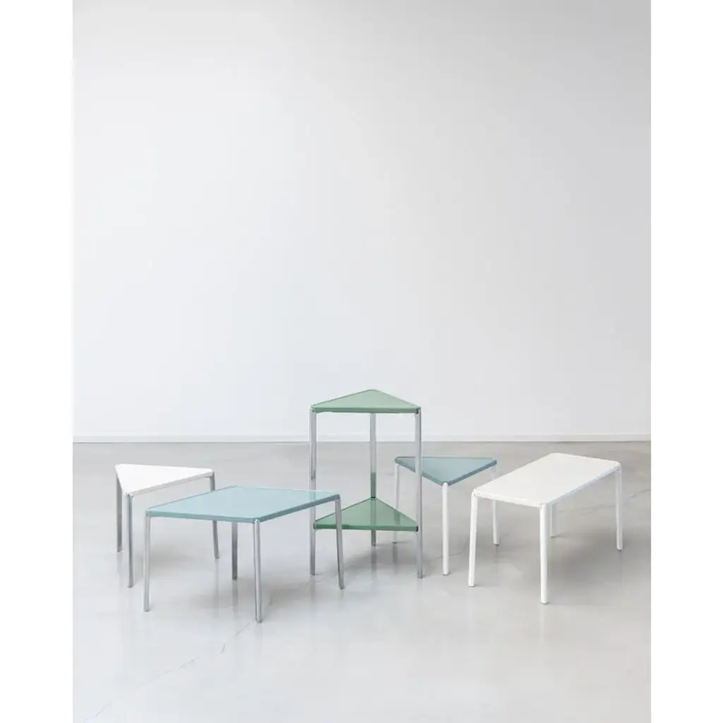 Magis' Tambour low table, designed by Ronan and Erwan Bouroullec, is a versatile coffee table for both indoor and outdoor use. Constructed with an aluminum frame and a concrete tabletop, the coffee table pairs raw industrial esthetics with a gentle color palette. Practical details, such as the subtle edges of the tabletop, add the finishing touch to the overall design. Tambour tables are created to seamlessly blend into various environments, whether it's a vintage-inspired interior or a space embodying modern minimalism, in a private residence or perhaps a restaurant. Launched in 2012 and expanded in 2023, the Tambour collection reflects the Bouroullec brothers' exceptional ability to strike a balance between formal elegance and uncomplicated simplicity. The various sizes and shapes within the series also allow for delightful combinations.