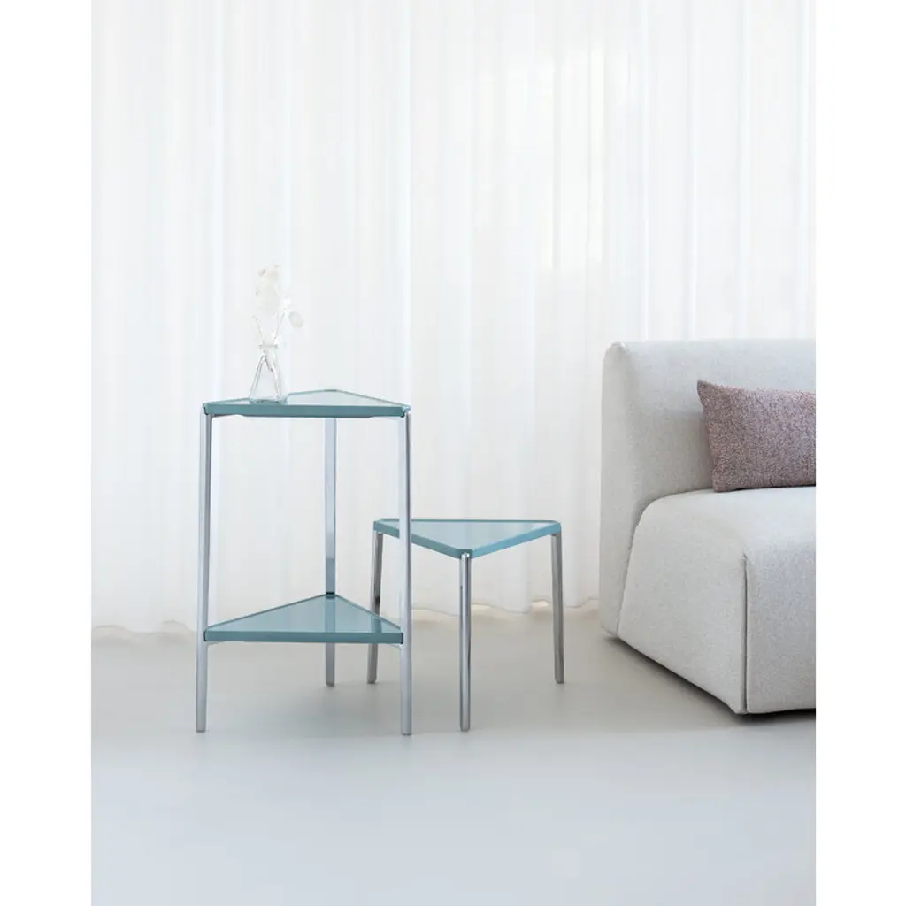 Tambour Low Table, 44 Cm, White - Light Blue