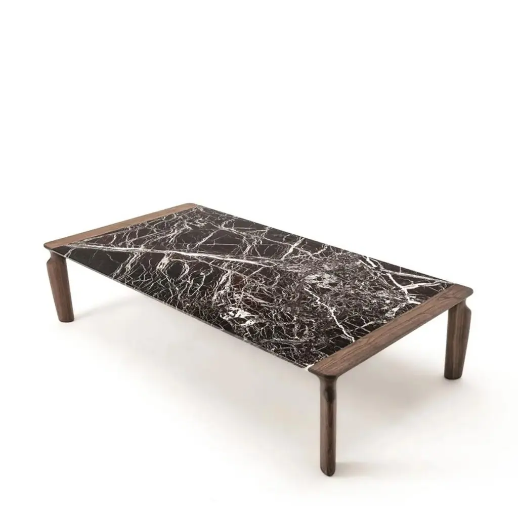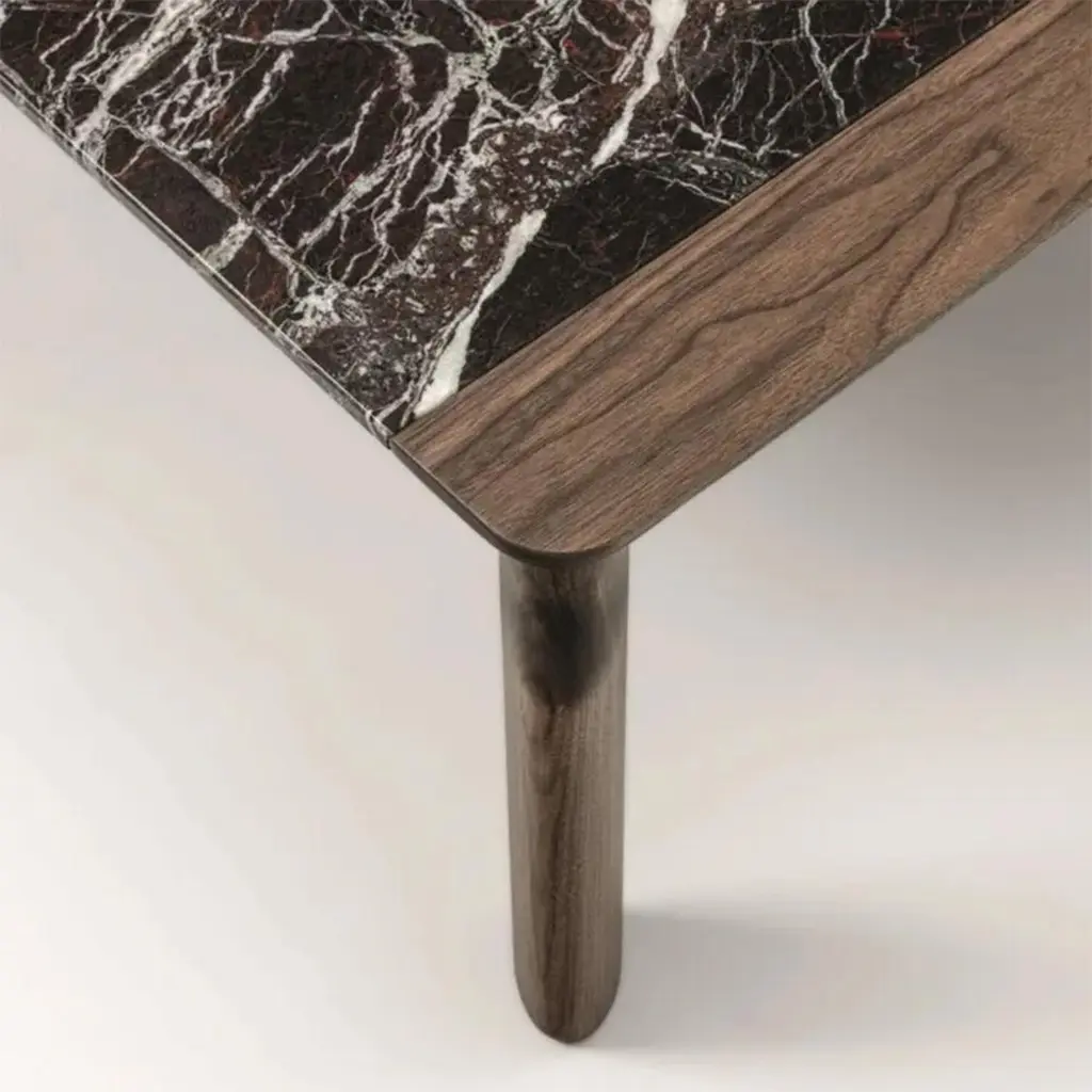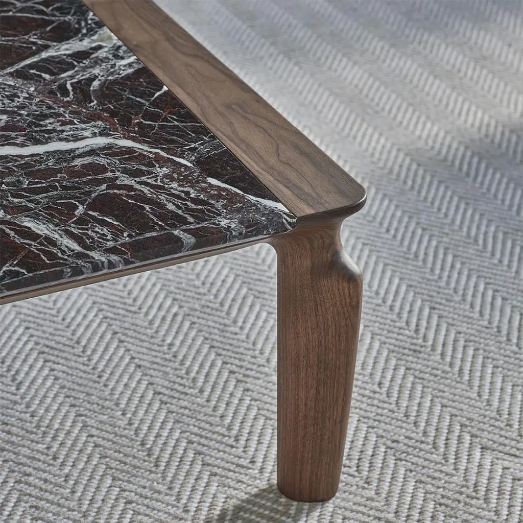 Coffee Table Taorma Square with solid walnut woodframe and feet and with polished marble top in red level finish.Also available on request in solid walnut wood in moka stained finish or in wenge stained finish.Also available on request with grey marble or emperador marble top. Price: 9200,00€Also available on request with other marble finish, including up-charge.