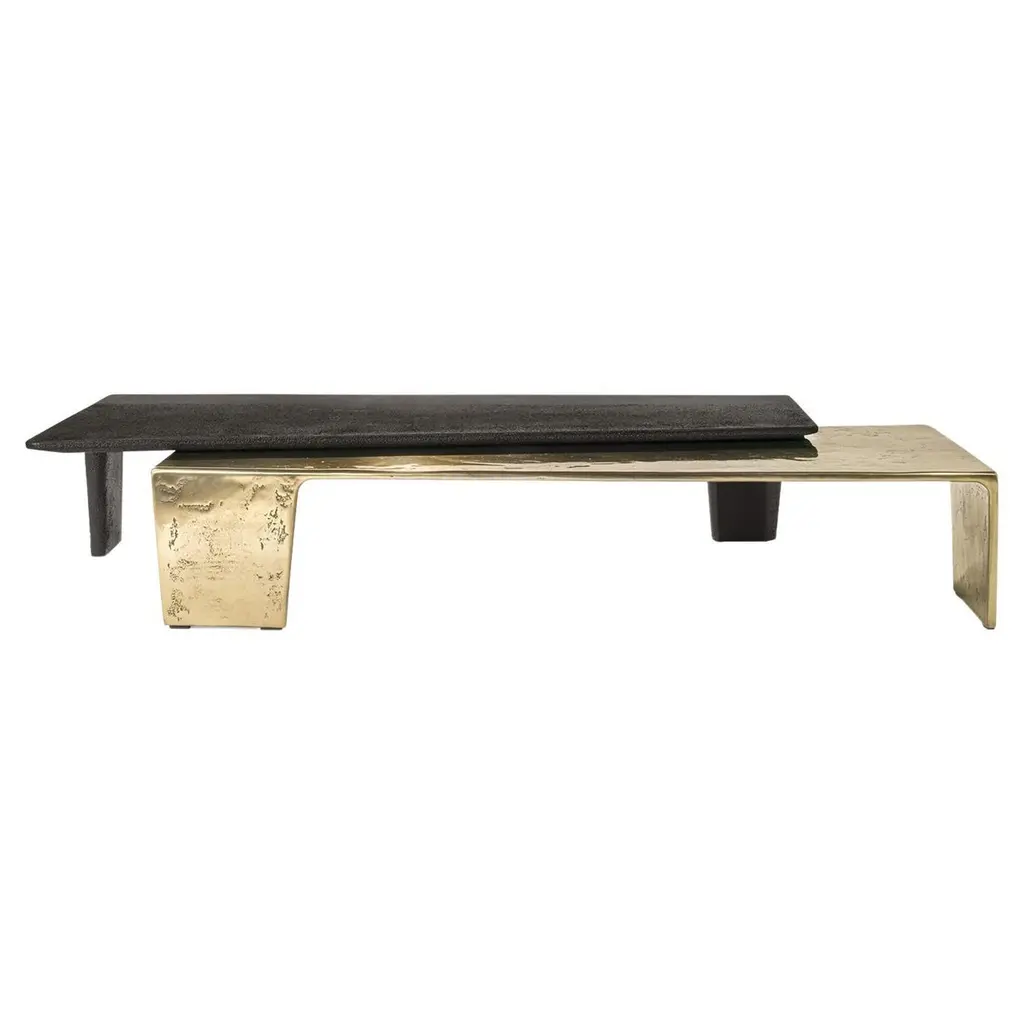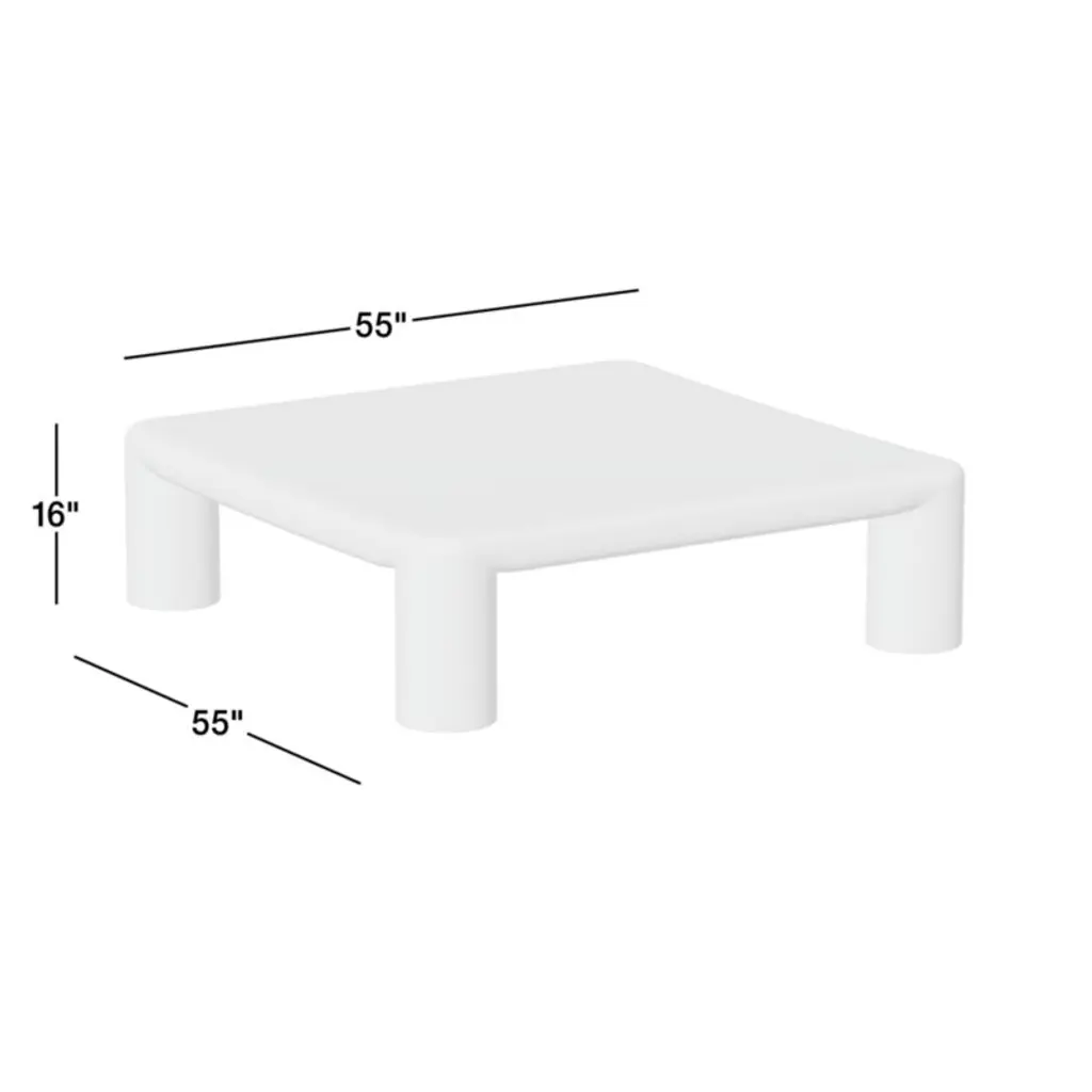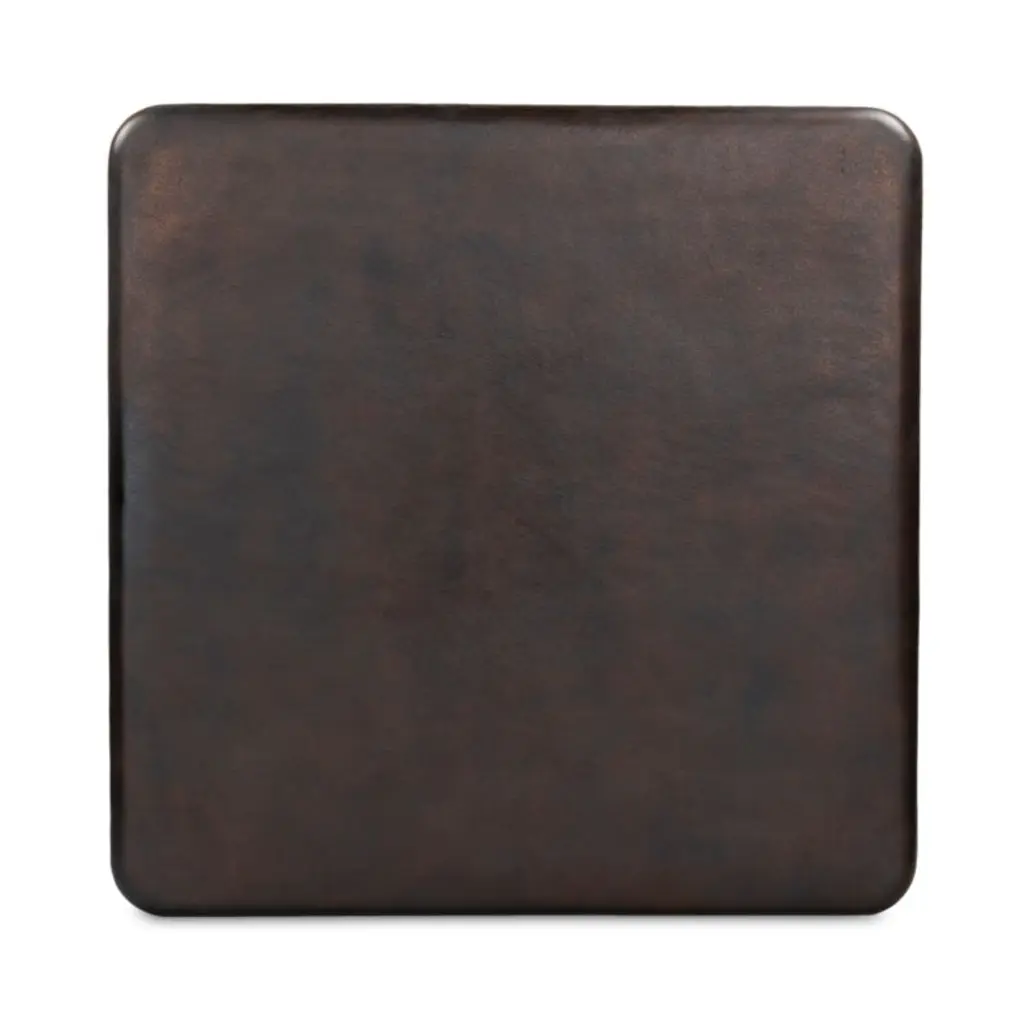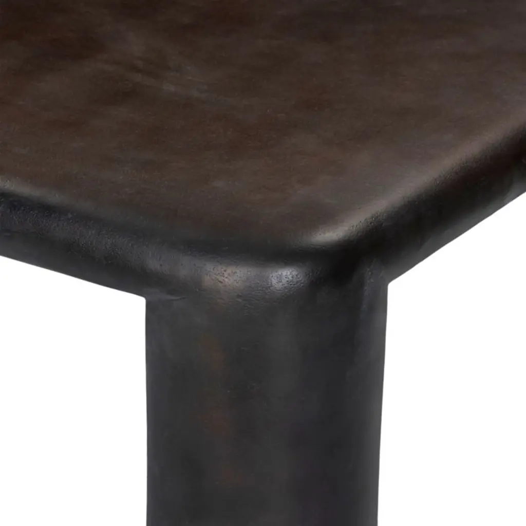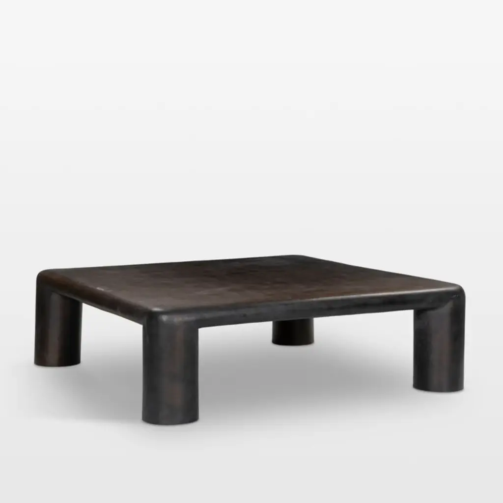 A statement-making mix of industrial and luxe lets Targon blend in beautifully with any style of room decor, indoors our out. Made of cast aluminum, the coffee table has a seamless, fluid form with chunky, cylindrical legs that flow into a square top softened with rounded edges. The distressed bronze finish accentuates the table's rustic-meets-modern look.