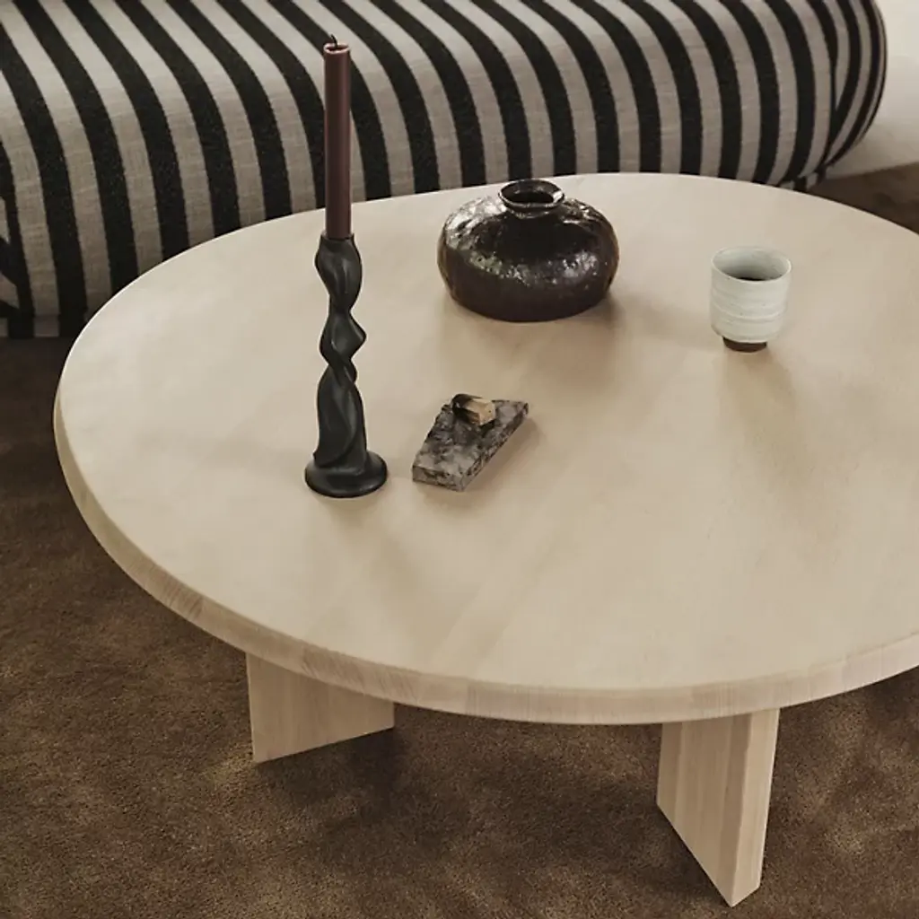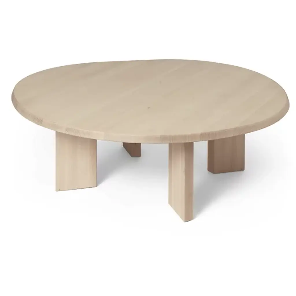 The Tarn Coffee Table from Ferm Living is crafted from solid, FSC™ certified beech wood for lasting durability and a warm, natural appeal. Its organic shape, clean lines, and sleek silhouette are highlighted by a beautifully beveled edge, adding character and elegance. Designed to blend into a variety of living spaces, this versatile coffee table combines stylish form with practical functionality, which makes it an ideal centerpiece for any modern room.