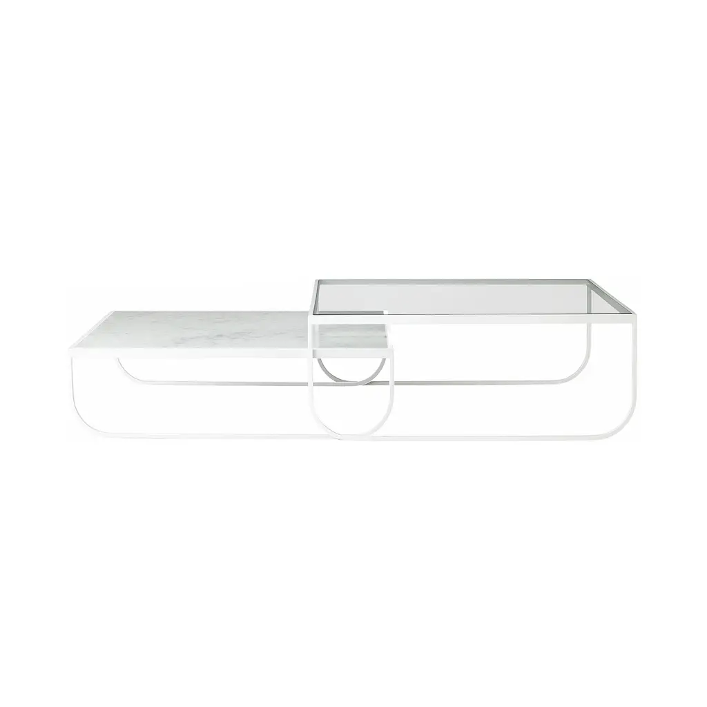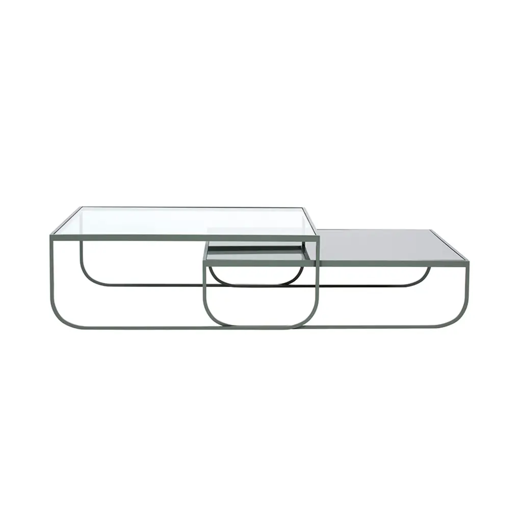 With an ebullient look that recalls the French cinema Icon, the curved metal framework of Tati’s higher coffee table offers a range of tabletop choices in transparent or lacquered glass. Designer-architects Mats Broberg and Johan Ridderstråle's adaptable piece can be used solo as a cocktail table or for informal dining—or it can be paired to slide together with its lower Tati counterpart. An abundance of float glass tabletop colors offers a distinctive look for any interior.