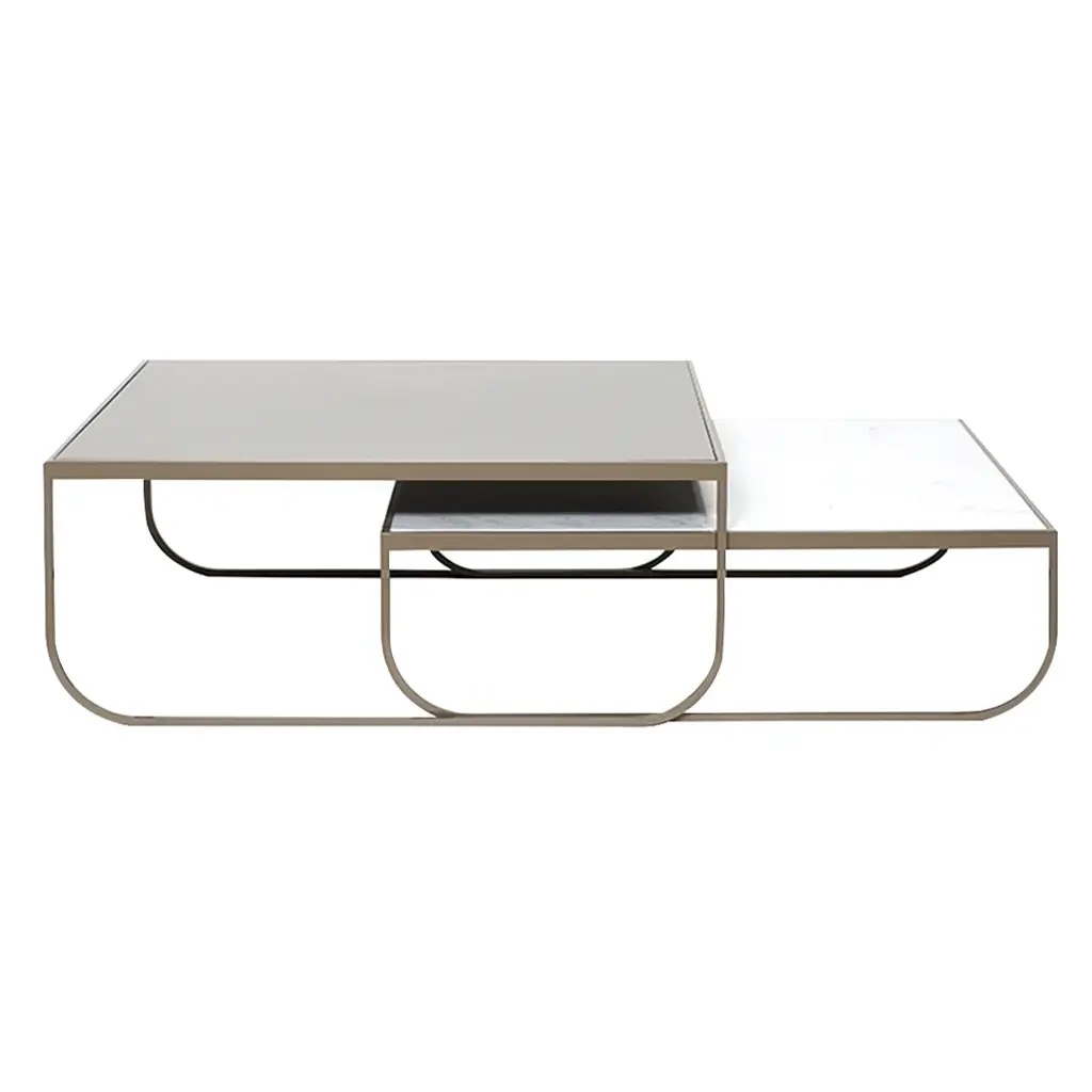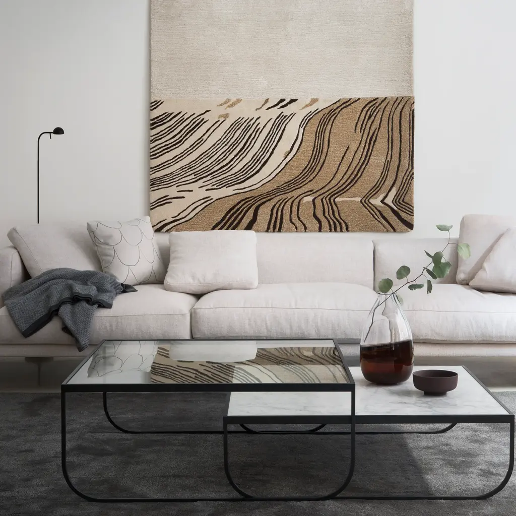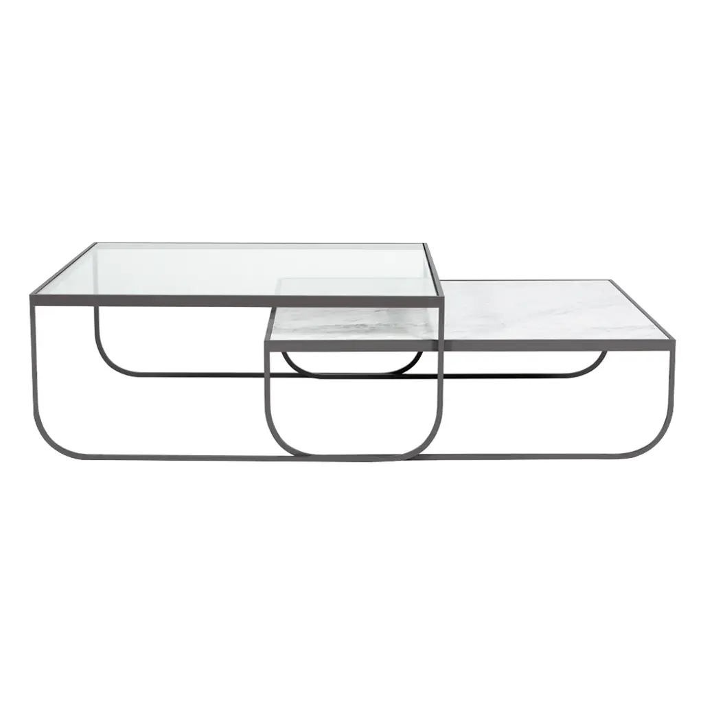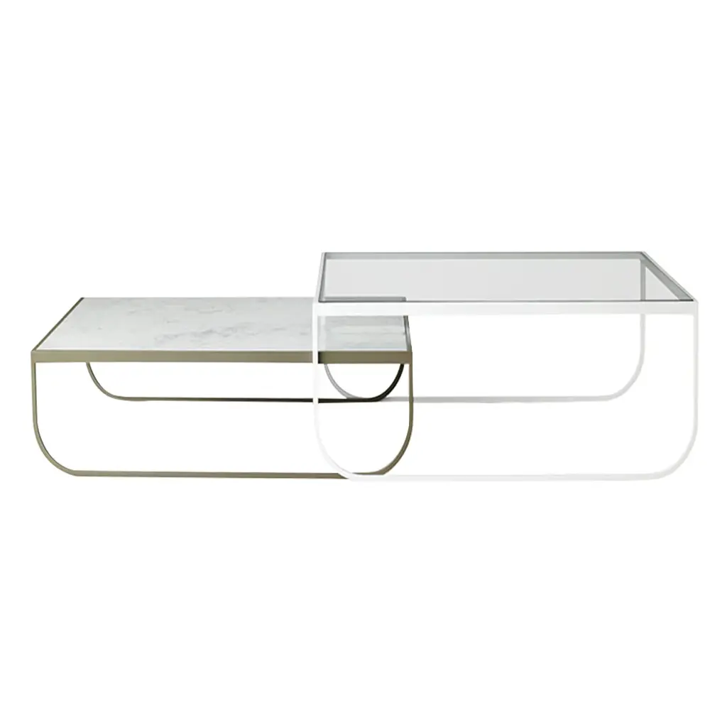 With its intriguing and unique patterning, Tati's square coffee table gets a top surface in luxe Carrara or Carnico marble. Contrasting with the curvilinear metal frame of designers Johan Ridderstråle and Mats Broberg's signature series, the table comes in 2 heights—and the slightly smaller lower model can slide into the taller one to be used as a pair. To go with either of the marble choices, the powder-coated frame comes in varied neutral and accent hues.