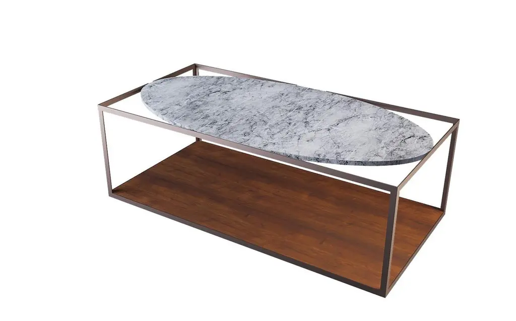 Rich marble makes an elegant counterpoint to the graceful curves of Asplund's spare coffee table in lacquered metal.. Available in both high and low versions, each Tati can be used on its own or be paired up with the lower model sliding under the other. In creamy Carrera or grey Carnico varieties, each length of marble is unique in Mats Broberg and Johan Ridderstråle's geometric design, with the metal base offered in a range of complementary hues.
