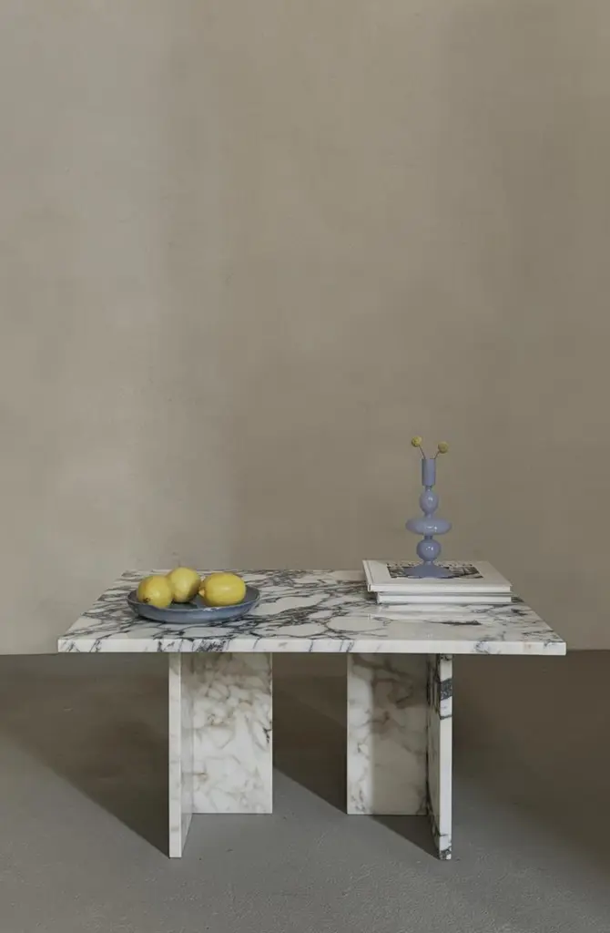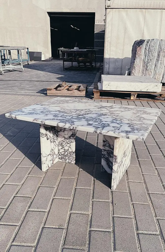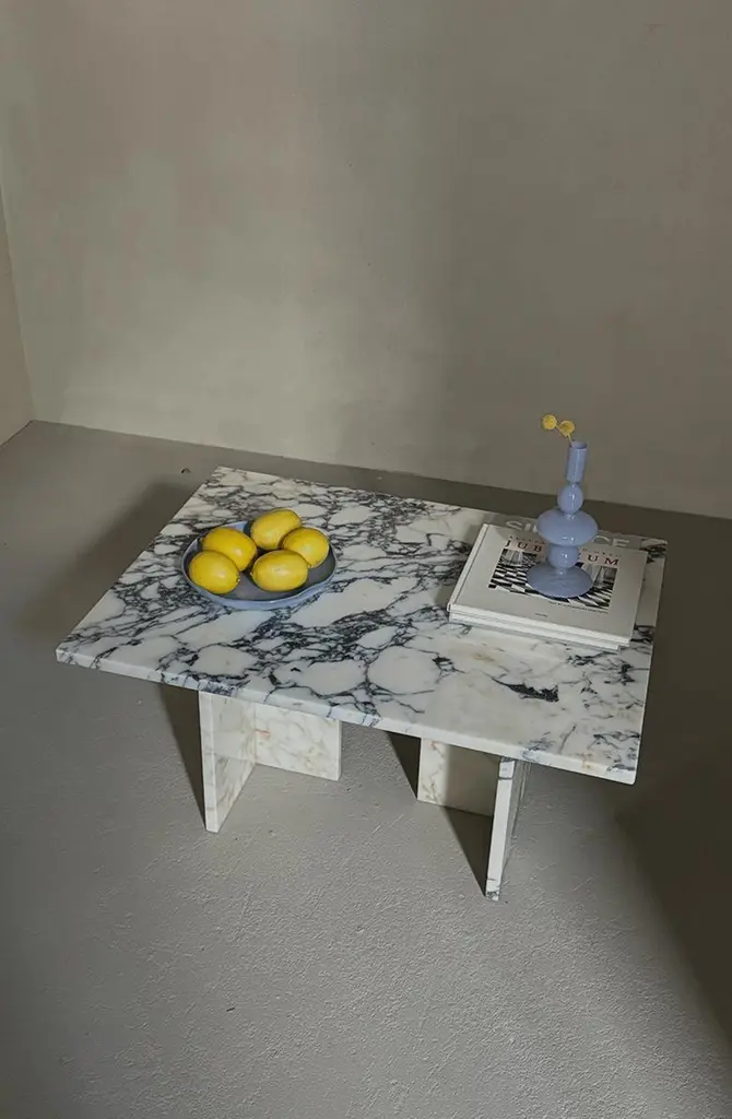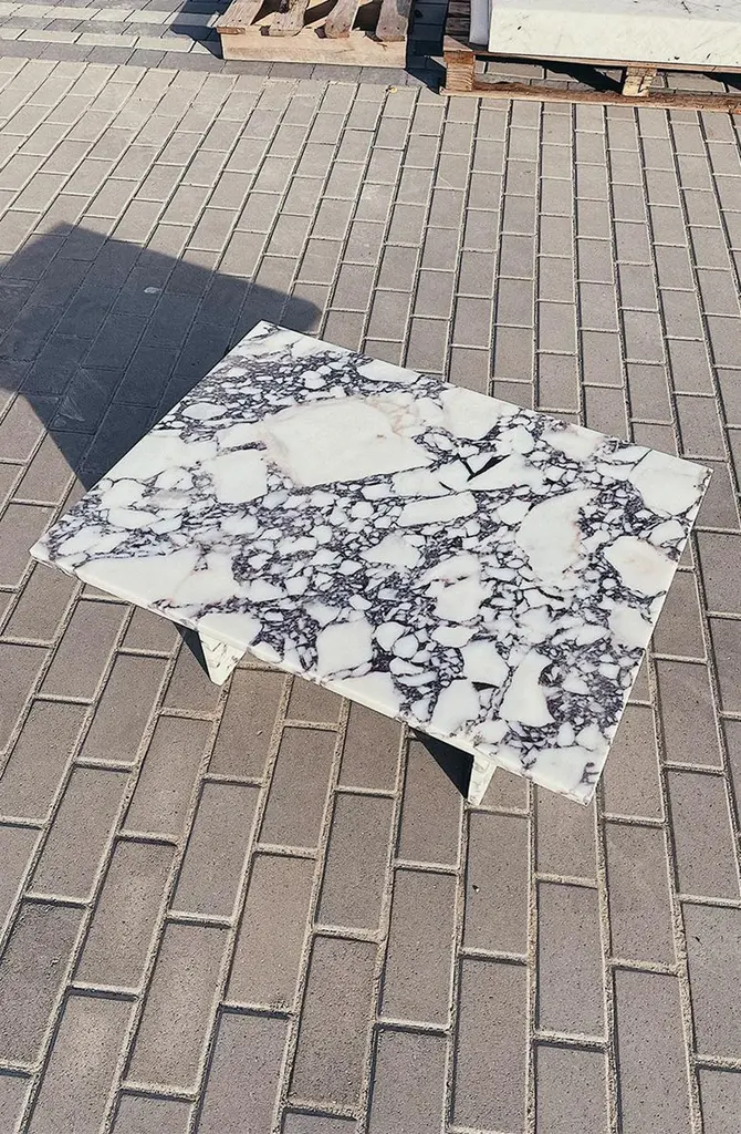 Tattoo Calacatta Viola Coffee Table by Un’commonDesigned by Małgorzata Korycka.Dimensions: D 55 x W 75 x H 38 cm.Materials: Calacatta Viola marble.Available in different stone options: Carrara, Calacatta Viola, Rosso Levanto, and Travertine. Please contact us.Tattoo is a coffee table made entirely of stone, which gives it an elegant and unique character. Minimalist form and homogeneous material draw attention to the beauty of the material from which the furniture is made. Stone tops of our furniture are made of selected slabs of marble from different parts of the world min. Our furniture tops are made of selected slabs of marble from all over the world, including Italy, Spain, and Iran. Its natural origin and the complex process of its creation make it almost impossible to extract two identical pieces of stone, which makes it an ideal material for Un'common furniture. Despite its weight and durability, it requires care in treatment and use, but good treatment pays off every day. The tops of our furniture are impregnated with specialized preparations.Our Polish workshop designs and hand-makes furniture from marble and steel. Our furniture should not only be well-designed – it should be a feast for the senses. Nothing can produce this effect quite as good as marble.It is a beautiful, refined, natural material used for centuries in architecture, art, and everyday life. There are many different stone quarries, offering different types and colors of marble. However, because it is a natural material formed in a very complex process, it is virtually impossible to extract two identical pieces of stone. In our opinion, in a world ruled by plastic and mass production, this thrill of surprise is a bit of genuine luxury, reserved only for natural materials and their enthusiasts.Thanks to the physical properties of stone and precise workmanship, Un’common furniture is built to last. Over time, a natural patina may form on the surface, adding extra charm to your beautiful and refined furniture, which – if treated well – will reward you every day. Nothing can beat the taste of coffee when you drink it at a marble table.