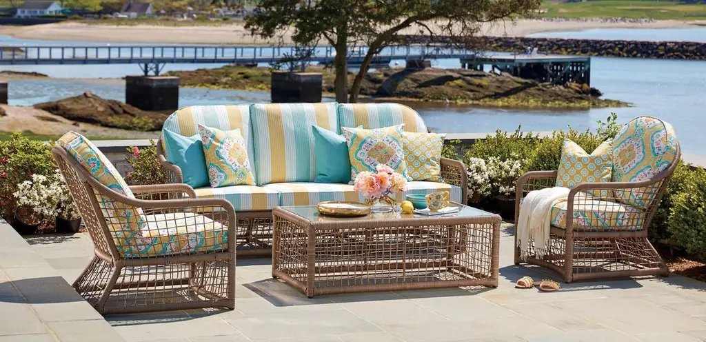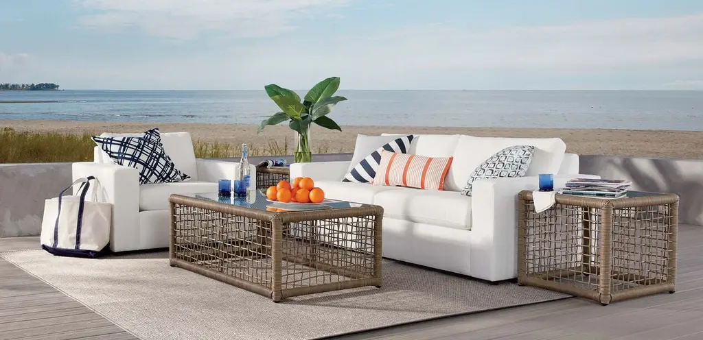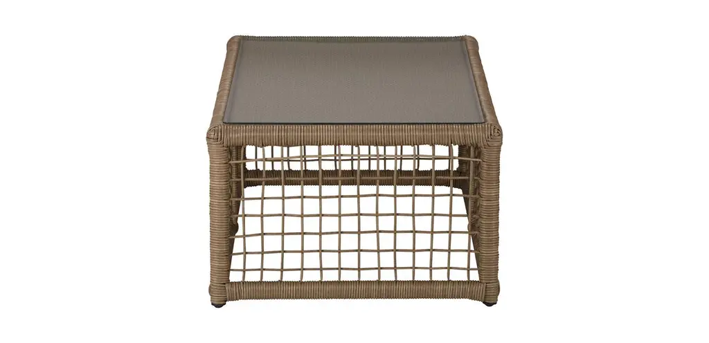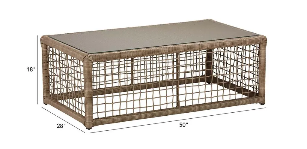 Inspired by woven island hammocks and sunny afternoons. Features a sturdy aluminum frame wrapped in durable all-weather wicker, with a tempered glass top.