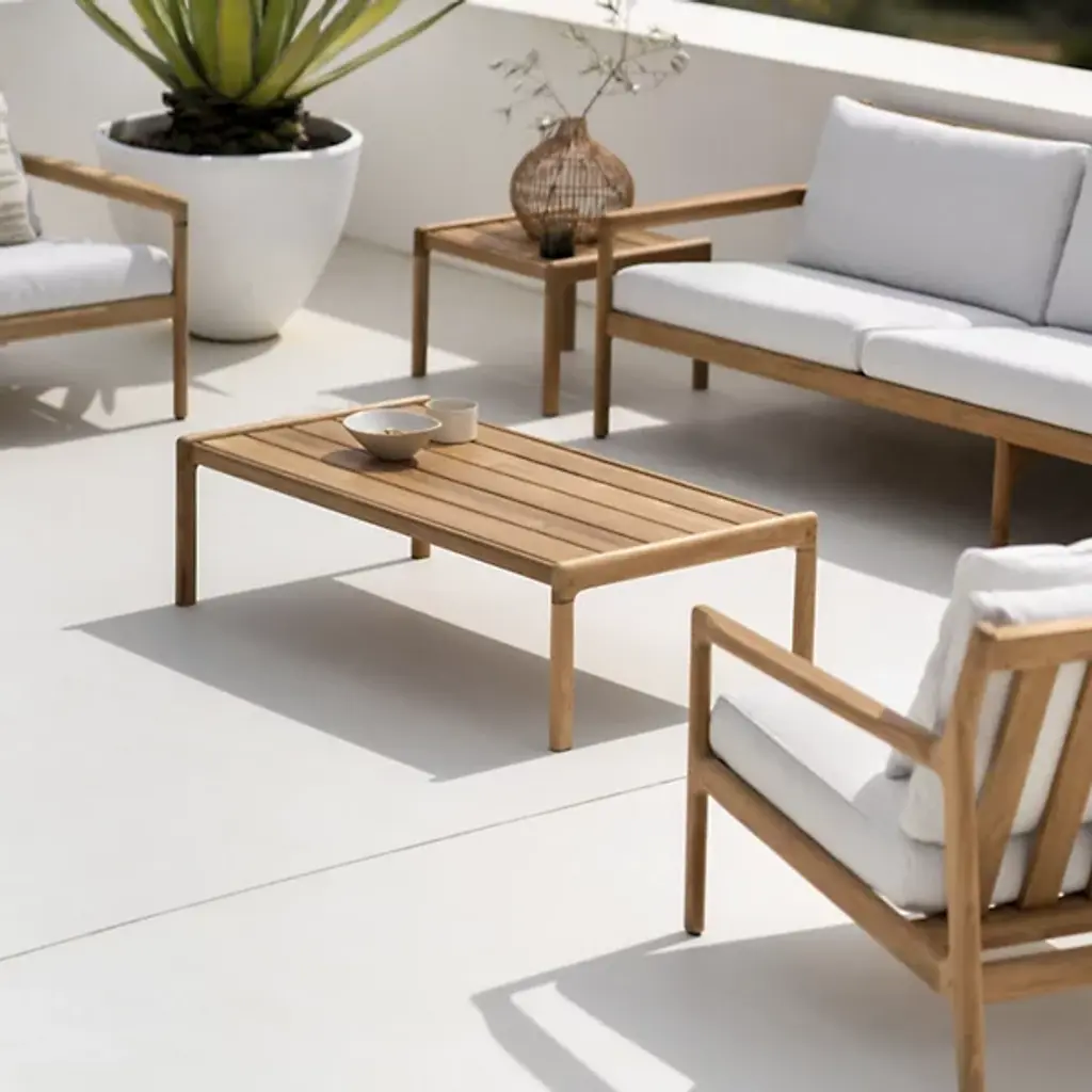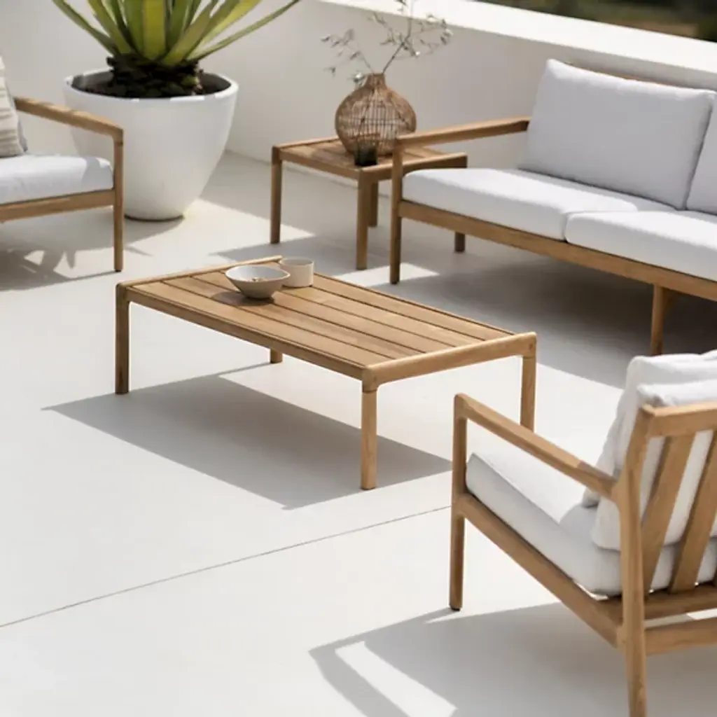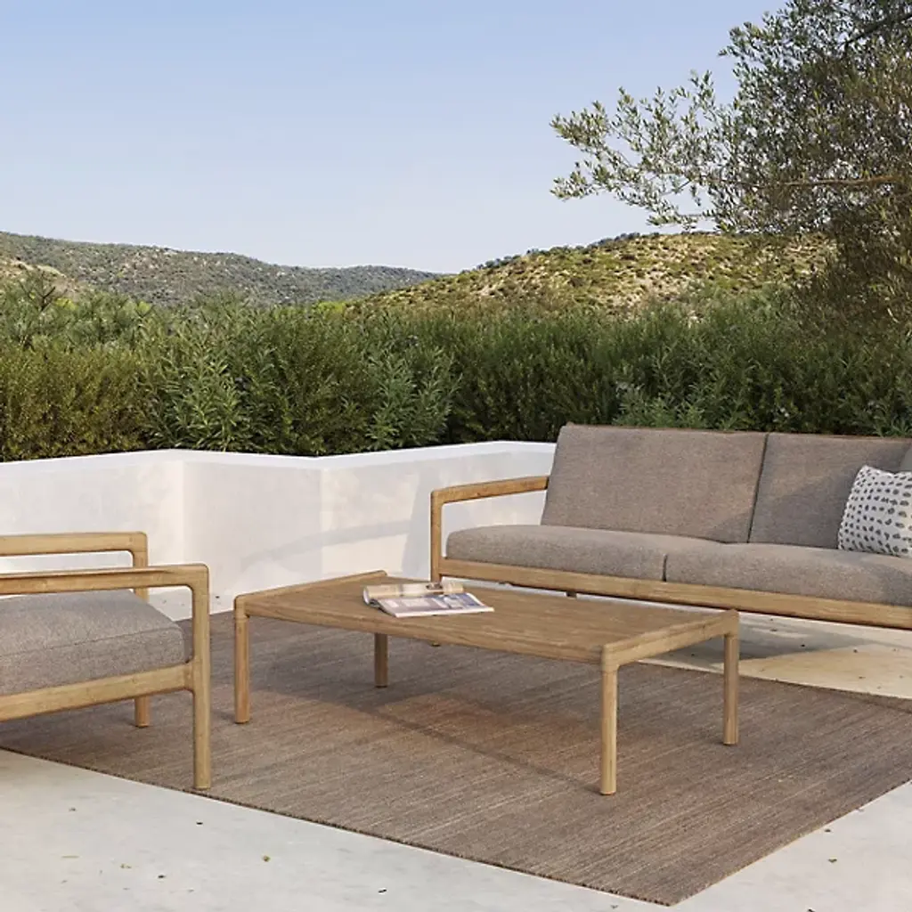 The Teak Jack Outdoor Coffee Table from Ethnicraft holds your refreshments while setting a refined tone. With this piece, it’s easy to savor the precious moments you have outside. Rain or shine, this natural teak wood coffee table holds its own with weather-resistant properties. While strong, the teak is a true beauty as it displays golden hues and rich texture. The coffee table spreads out with minimalist legs and a water-wicking tabletop. The top gives you plenty of room for placing reading material, a drink, and some lovely décor.