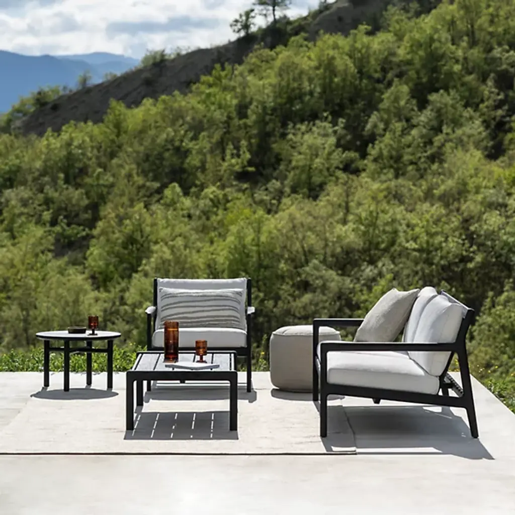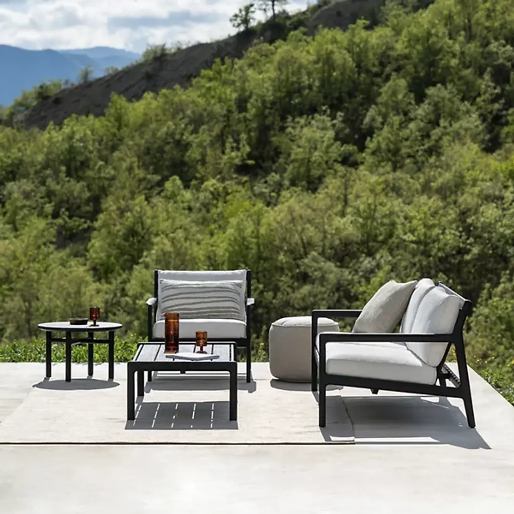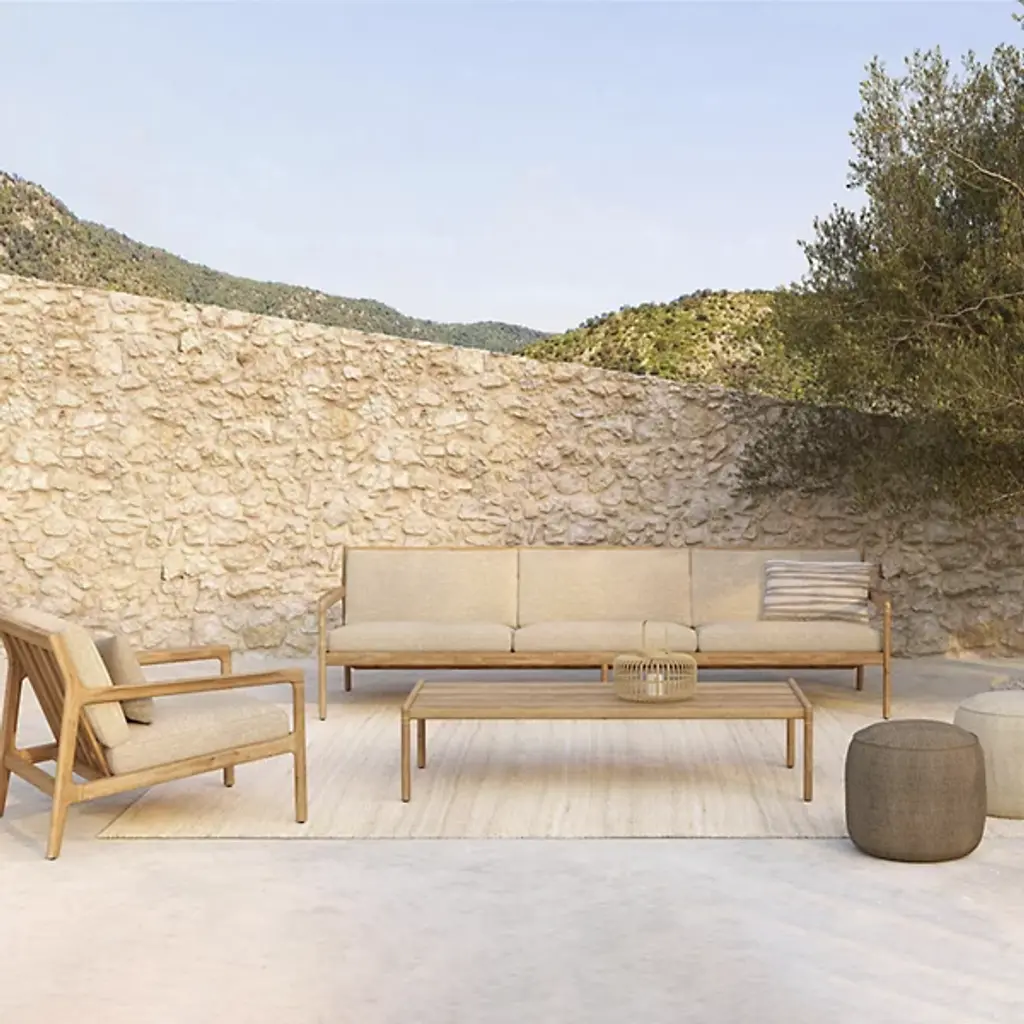 The Teak Jack Outdoor Coffee Table from Ethnicraft holds your refreshments while setting a refined tone. With this piece, it’s easy to savor the precious moments you have outside. Rain or shine, this natural teak wood coffee table holds its own with weather-resistant properties. While strong, the teak is a true beauty as it displays golden hues and rich texture. The coffee table spreads out with minimalist legs and a water-wicking tabletop. The top gives you plenty of room for placing reading material, a drink, and some lovely décor.