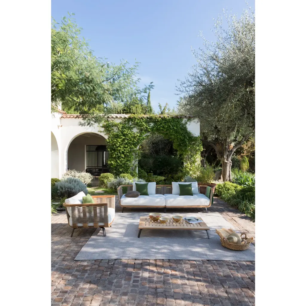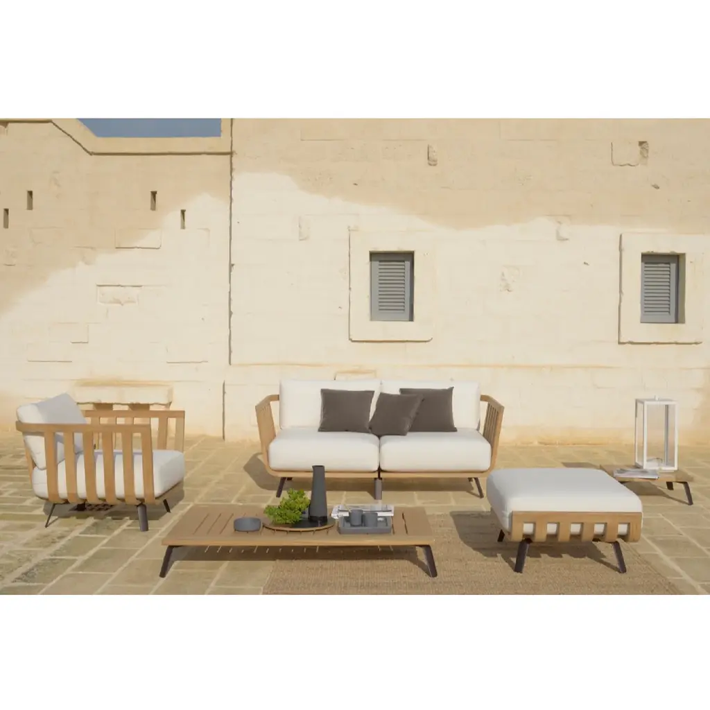 Introducing the Teak Outdoor Low Coffee Table by Unopiu. Crafted with a luxurious teak structure and elegant aluminum feet, this table exudes sophistication. Its sleek square design, makes it perfect for any outdoor space. Upgrade your garden with this exclusive piece.