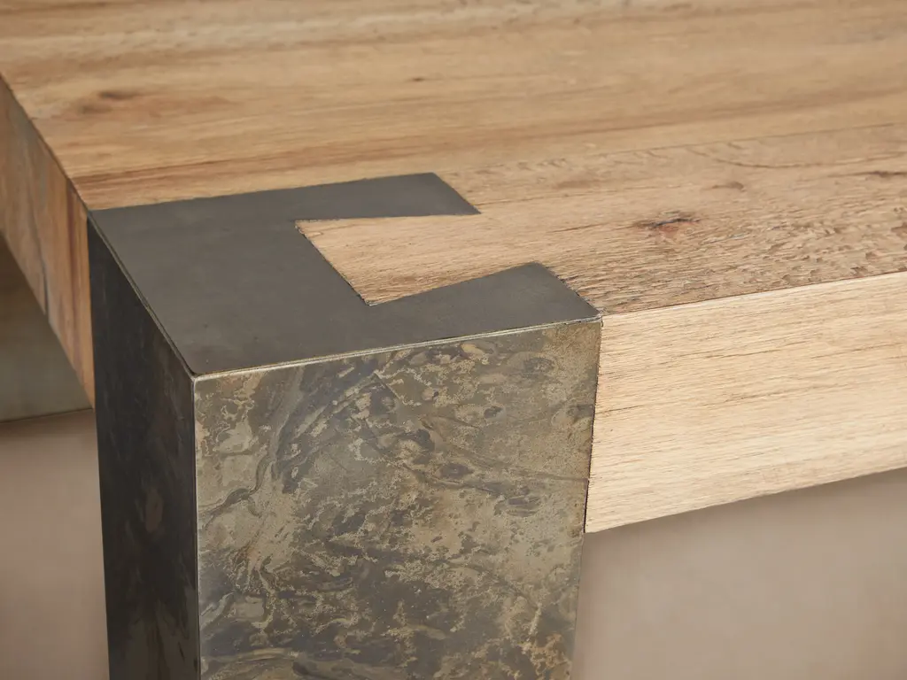Deeply grained Mexican oak, from trees both reclaimed and sustainably harvested, is hand-lacquered by our artisan partners to highlight its every organic imperfection. Soon after, it’s joined with naturally oxidized steel, equal in character and distinction, to create the remarkable pieces of our Telluride Collection.