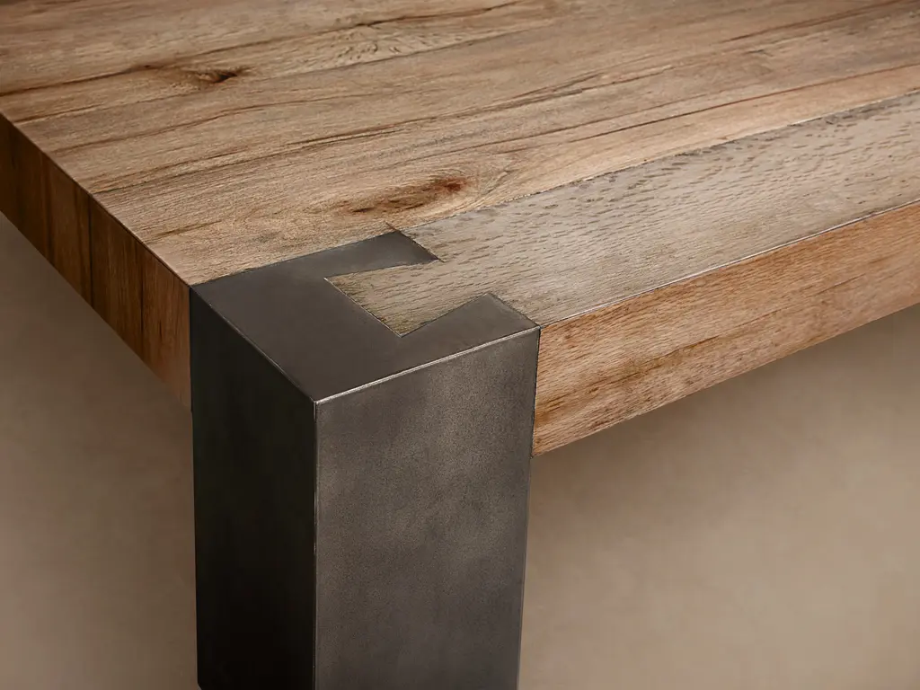 Deeply grained Mexican oak, from trees both reclaimed and sustainably harvested, is hand-lacquered by our artisan partners to highlight its every organic imperfection. Soon after, it’s joined with naturally oxidized steel, equal in character and distinction, to create the remarkable pieces of our Telluride Collection.