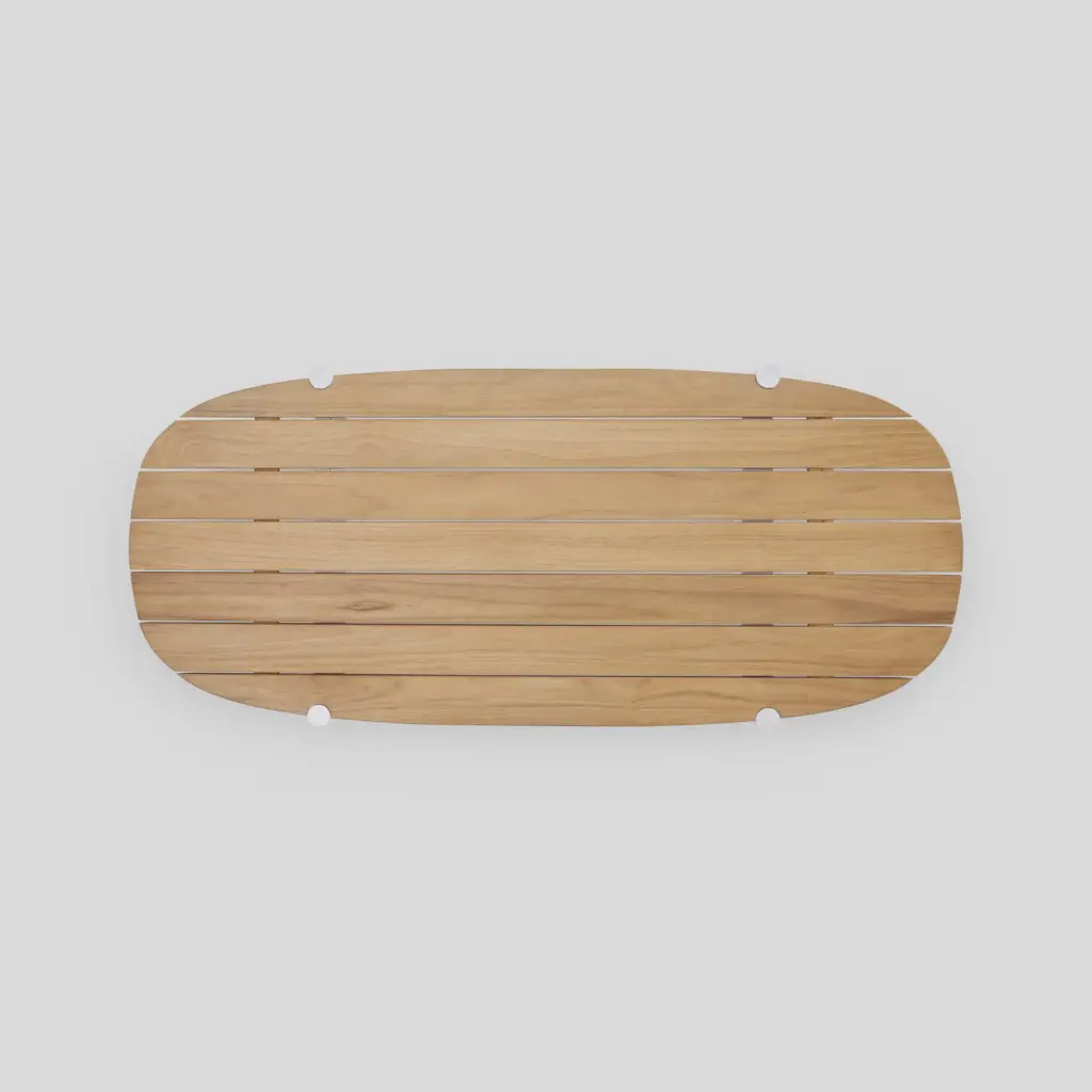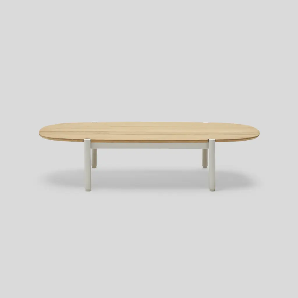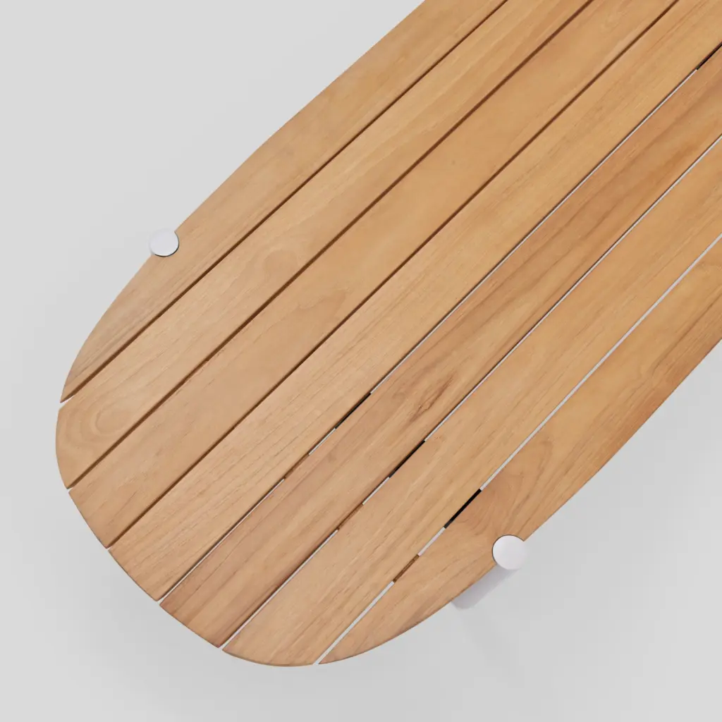 Long and low-profile, the Terra Coffee Table offers plenty of surface area for drinks, bites and the like. Features handcrafted solid teak slats atop sturdy powder-coated tubular aluminum legs. Part of the Terra lounge collection, this outdoor coffee table sits comfortably in front of a sofa, sectional or several chairs.