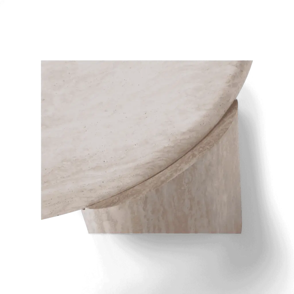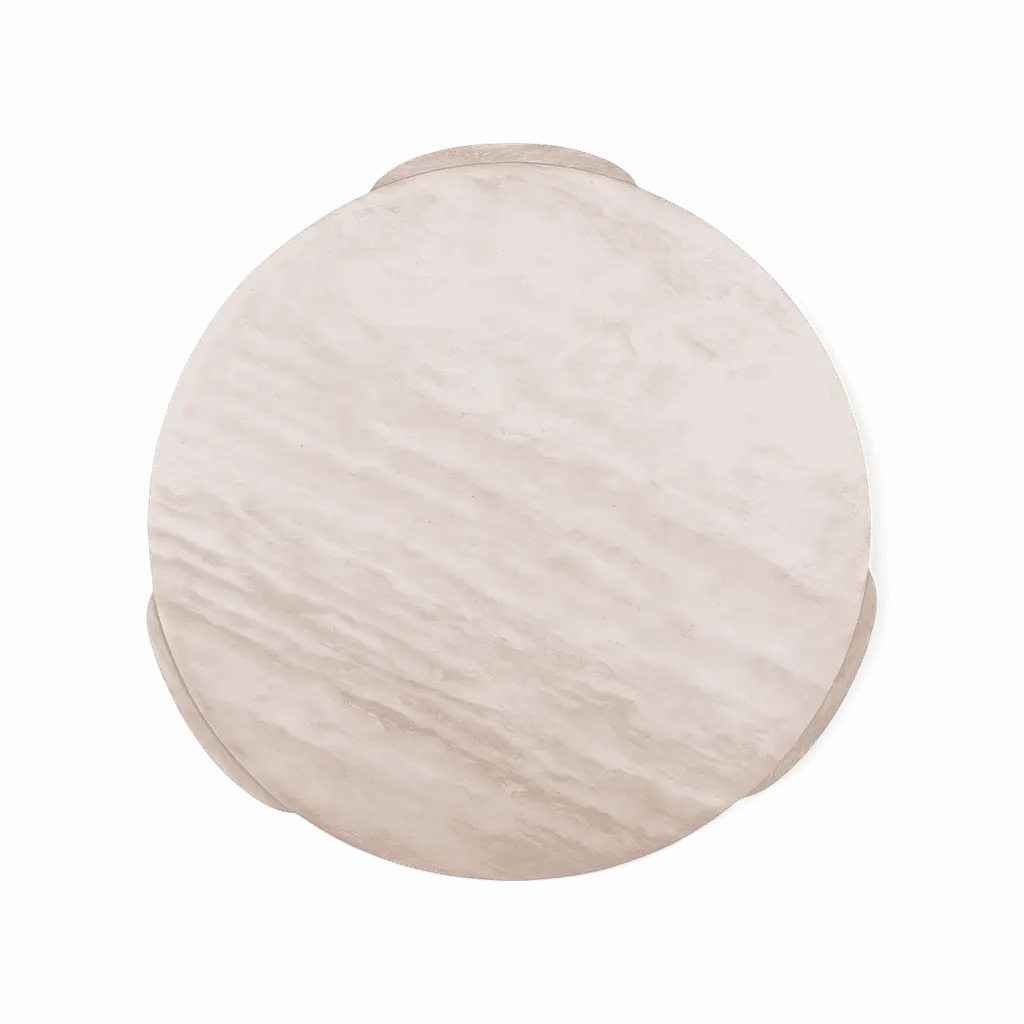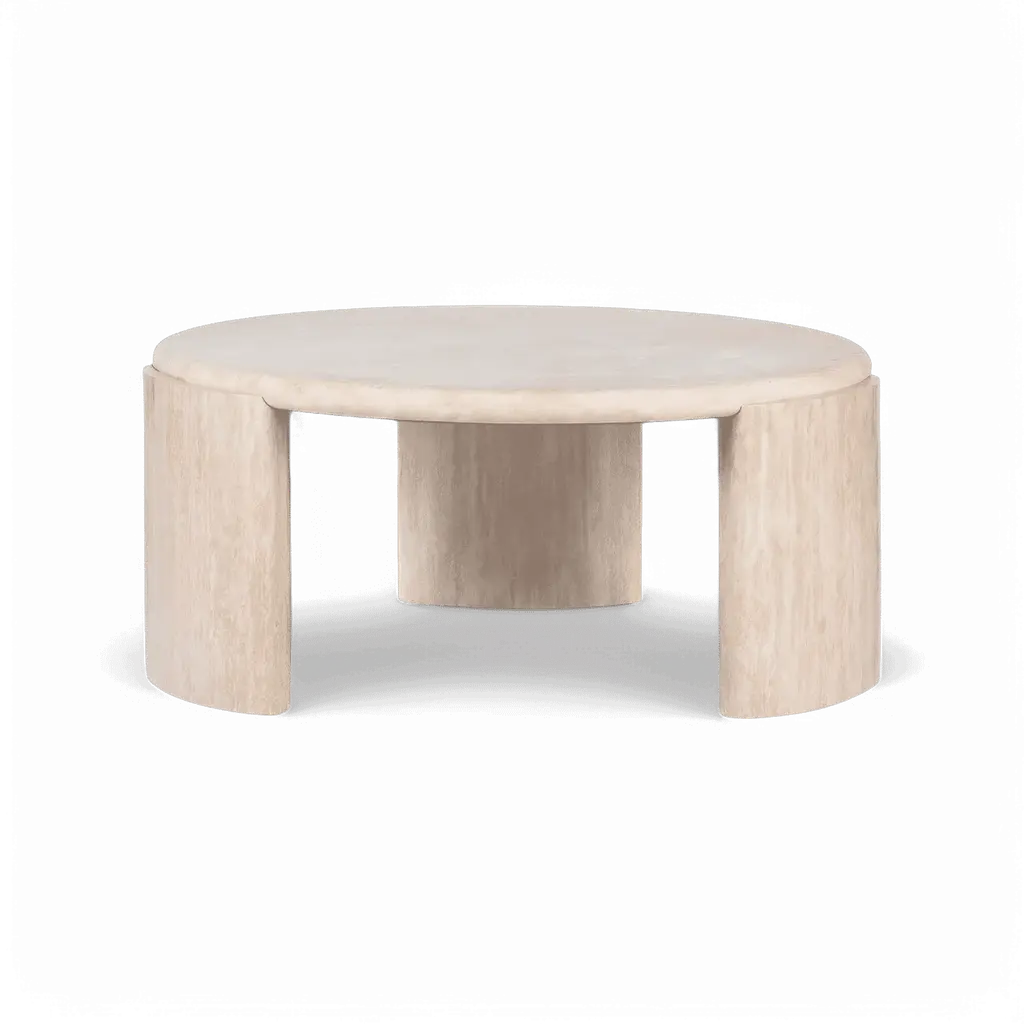 The Terra Coffee Table Travertine combines modern elegance with natural charm. Its round tabletop, crafted from composite travertine, showcases a warm, earthy tone with subtle variations that mimic the beauty of natural stone. Supported by three uniquely positioned legs, the design offers a contemporary and artistic aesthetic, making it a perfect statement piece for any living space. The Terra Coffee Table Travertine balances style and functionality, creating a centerpiece that complements both minimalist and eclectic interiors.Tabletop Material: Composite Travertine | Base Material: Wood with Beige Paint