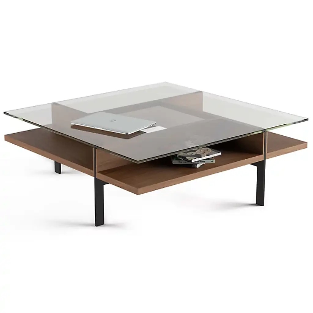 The BDI Terrace Square Coffee Table is your living room's new centerpiece. Crafted from robust wood, this piece stands up to regular use while oozing curb appeal. Its generously-sized, square design makes it an ideal partner for sectional sofas. The table also features open yet segregated storage areas that deliver an ample storing space with a hint of enclosure. Sitting atop the table is a tempered glass surface, demonstrating both strength and security.