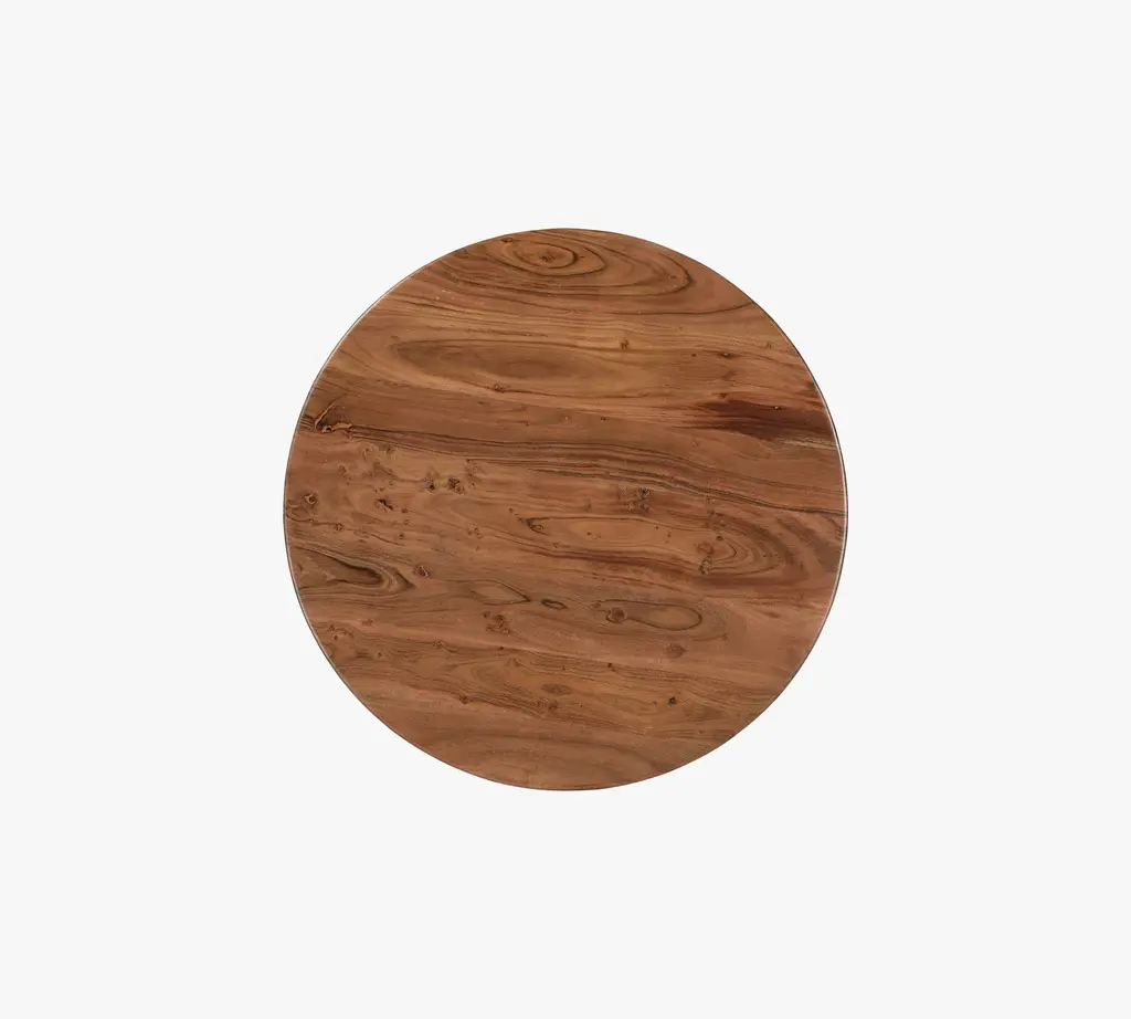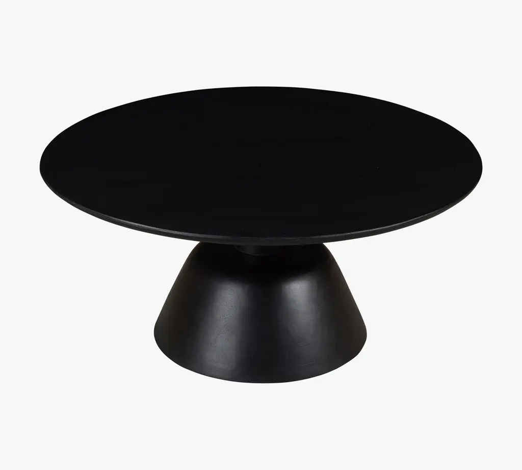 This table makes a statement in pattern and form. With its cuffed neck and softly conical base, it’s crafted in either of two solid, kiln-dried woods, making their virtues part of your decor. One richly showcases the wood’s knots and grain, while the matte black version underscores its shapely curves.