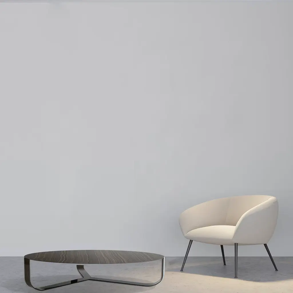 "Teseo" is a round coffee table with an iron structure, while the top is made with ceramic tile.