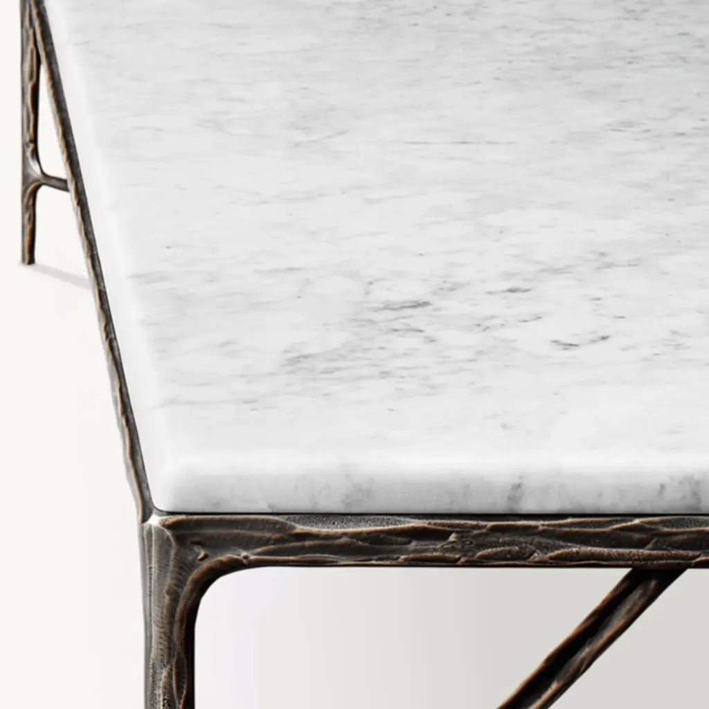 Inspired by the sculptural works of Salvador Dalí and Diego Giacometti, our collection by Julie Lawrence merges the rustic sensibility of hand-forged solid brass or solid stainless steel with cool marble. Employing an ancient fabrication process, artisans hand hammer the metal bars to reveal an alive, imperfect and organic texture. The pounded, tapered silhouettes are a rich counterpoint to the smooth, honed stone.SHOP THE ENTIRE COLLECTION