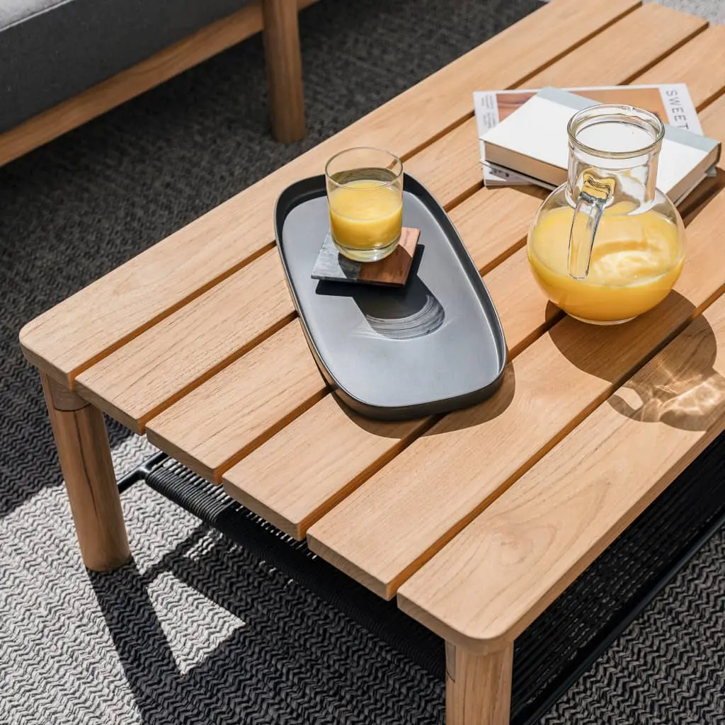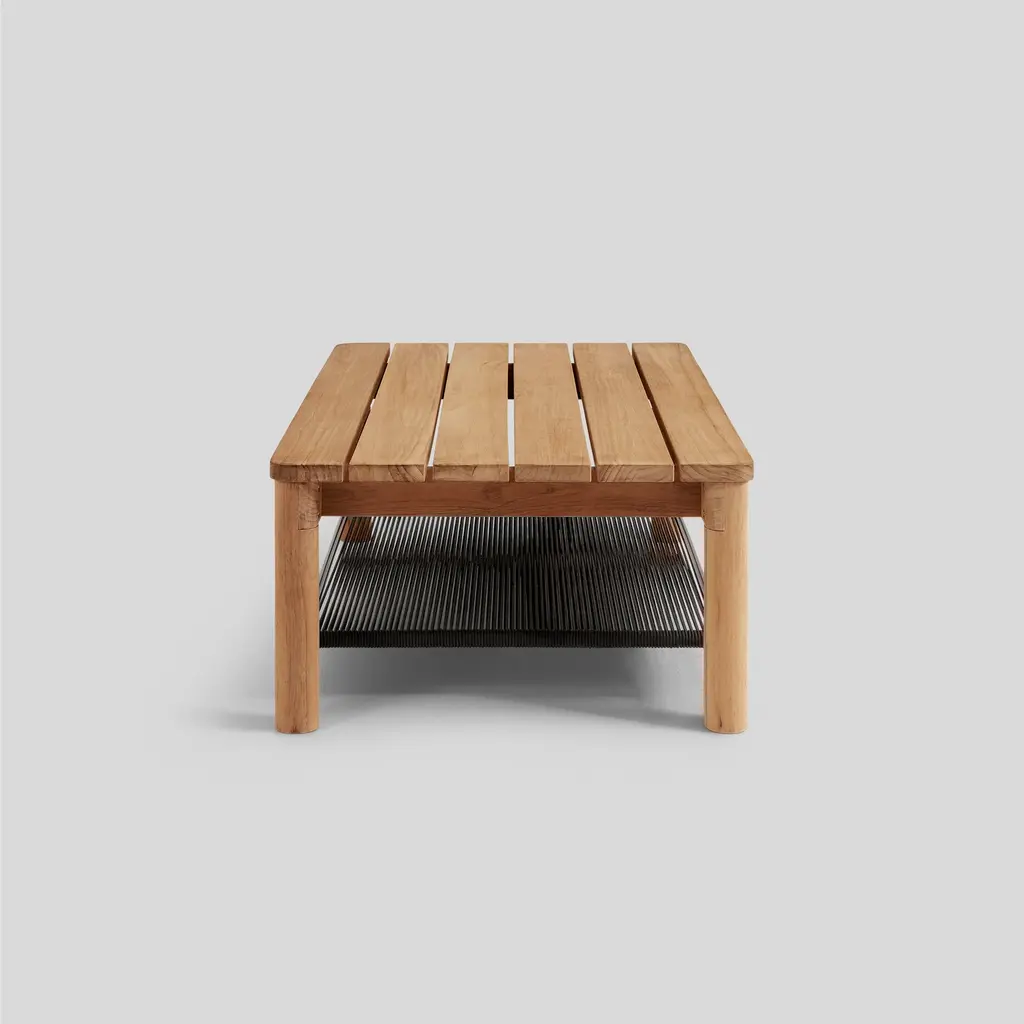 Our Haven Coffee Table features FSC-certified solid teak, a slatted top and a rugged roped shelf for added storage. Perfect for evening drinks, pair with our teak outdoor sofa and put your feet up.