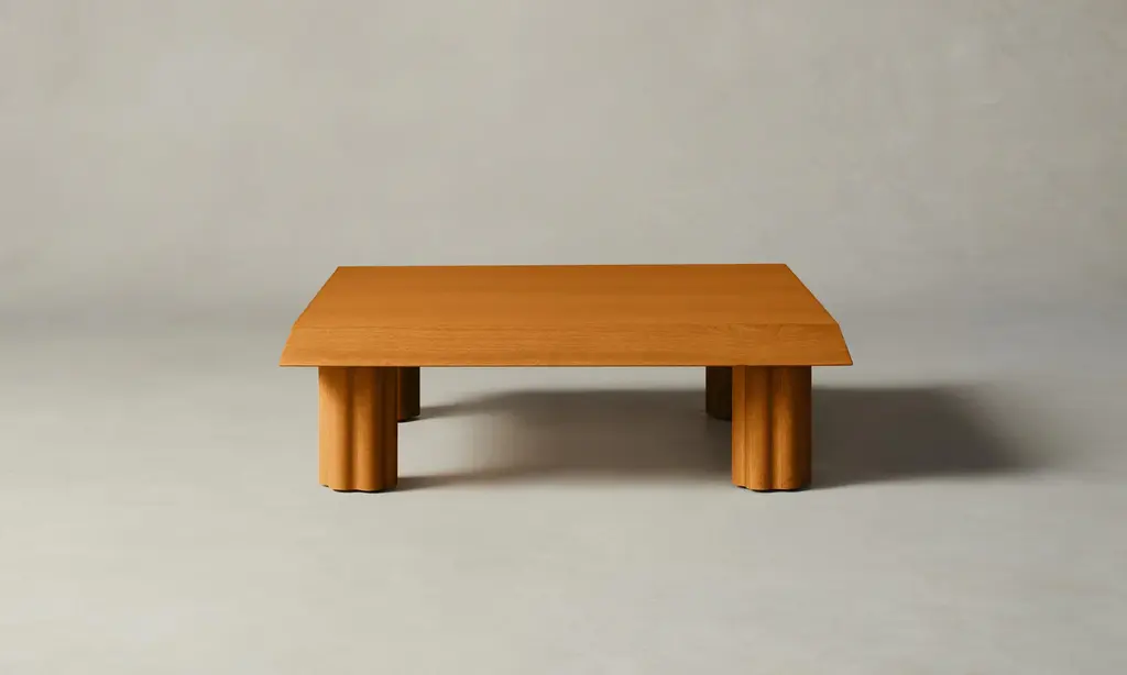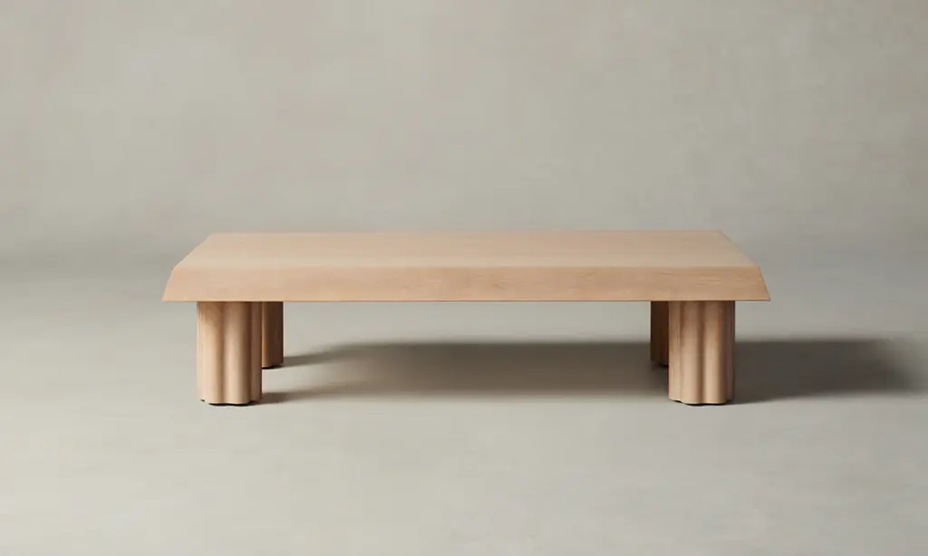 The Dean Rectangular Coffee Table is a display of masterful woodcraft. Bringing together sharp lines and smooth curves, it boasts a beveled-edge tabletop and fluted column legs. Handcrafted at a family-owned workroom in upstate New York.