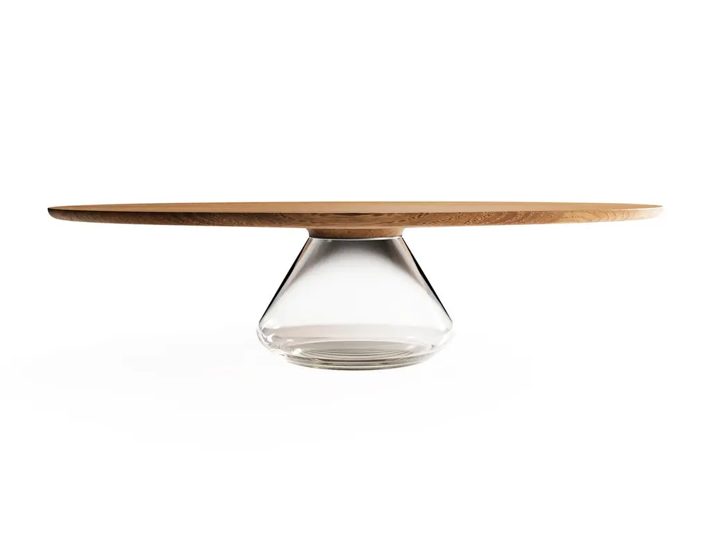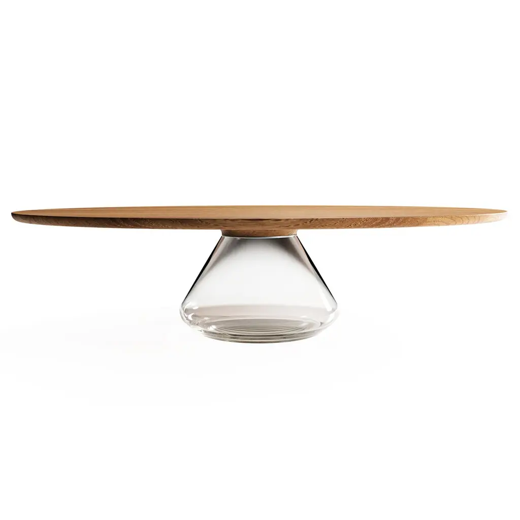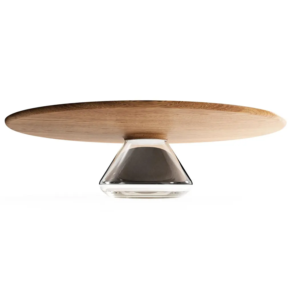 The Eclipse I, limited edition coffee table by Grzegorz MajkaLimited Edition of 8Dimensions: 54 x 48 x 14 inMaterials: Glass, oakThe total eclipse of every interior? With this amazing table everything is possible as with its Minimalist style it will definitely eclipse all things around, spreading its hidden beauty. Focusing on arresting things not seen from the very first perspective inspired to create the piece of work called The Eclipse. When finally noticed attracting all the recipients by its unique form.New application and new ideas? Why not to use the glass but the other way round as it is typically done with Classic tables, glass top and the glass base?As a result of this idea we can admire the solid and beautiful tempered smoked glass top sustained by glamorous handmade glass base. When joined together the exclusive and elegant coffee table came to light.Grzegorz Majka is a self-taught Polish artist who explores the concepts of modularity, sculptural form, and artisanal processes in the design of furniture and lighting. His work seamlessly blends craft and contemporary design, incorporating high-quality noble materials like natural stone, wood, metals, and hand-blown glass. Guided by a deep respect for the inherent character of materials, Grzegorz highlights natural irregularities, textures, and patterns - veins in stone, the living patina of untreated metals, the organic feel of brushed surfaces. These elements are not hidden but embraced, inviting collectors on a sensory journey through touch and time.His studio practice focuses on handcrafted limited-edition furniture that is not only functional, but also living, authentic, collectible art.