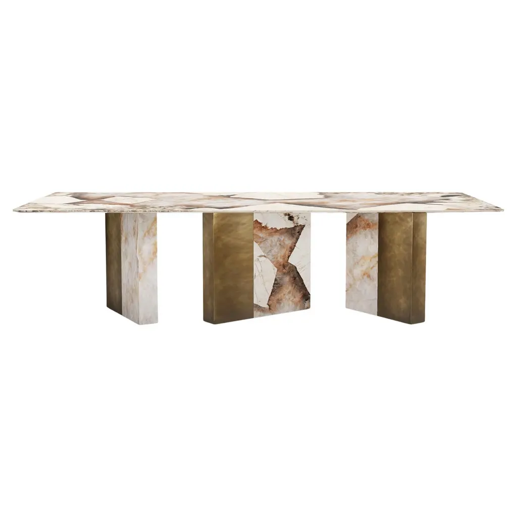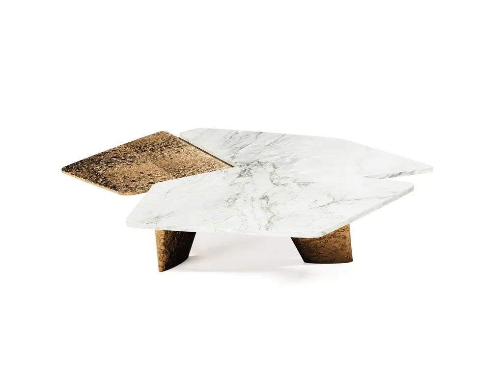 The Elements I coffee table, 1 of 1 by Grzegorz MajkaEdition 1 of 1Dimensions: 53.14 x 37.40 x 10.04 inMaterials: Aluminium, quartz and brass“The Elements I” is one of a kind and one of the series of various coffee tables that will be presented in a near future. Created of the two totally different shapes, structures reveals some symbiotic influence between each other. One delicate - second more sharp, one smooth - second chaotic correlating in a way as one could not create the complete piece without the other. Almost like a kind of relationship, almost like a yin-yang dependence. Materials used in this composition: natural quartzite in its irregular shapes and structures and solid aluminium plate in Windy Gold Brass finish which works here as strong base of the stones. All elements connected in that way and in the form of presented coffee table would be a perfect match to all kinds of interior.Grzegorz Majka is a self-taught Polish artist who explores the concepts of modularity, sculptural form, and artisanal processes in the design of furniture and lighting. His work seamlessly blends craft and contemporary design, incorporating high-quality noble materials like natural stone, wood, metals, and hand-blown glass. Guided by a deep respect for the inherent character of materials, Grzegorz highlights natural irregularities, textures, and patterns - veins in stone, the living patina of untreated metals, the organic feel of brushed surfaces. These elements are not hidden but embraced, inviting collectors on a sensory journey through touch and time.His studio practice focuses on handcrafted limited-edition furniture that is not only functional, but also living, authentic, collectible art.