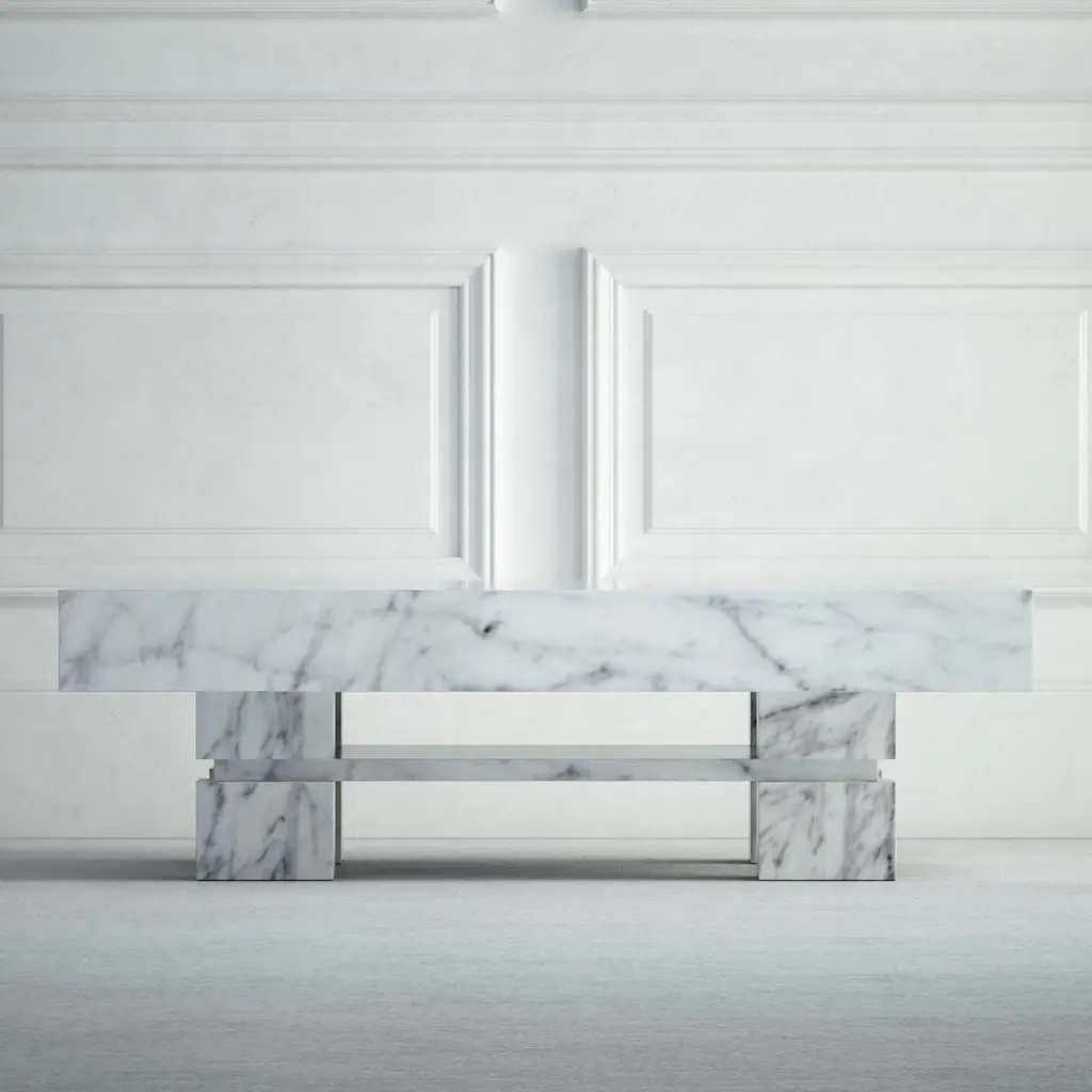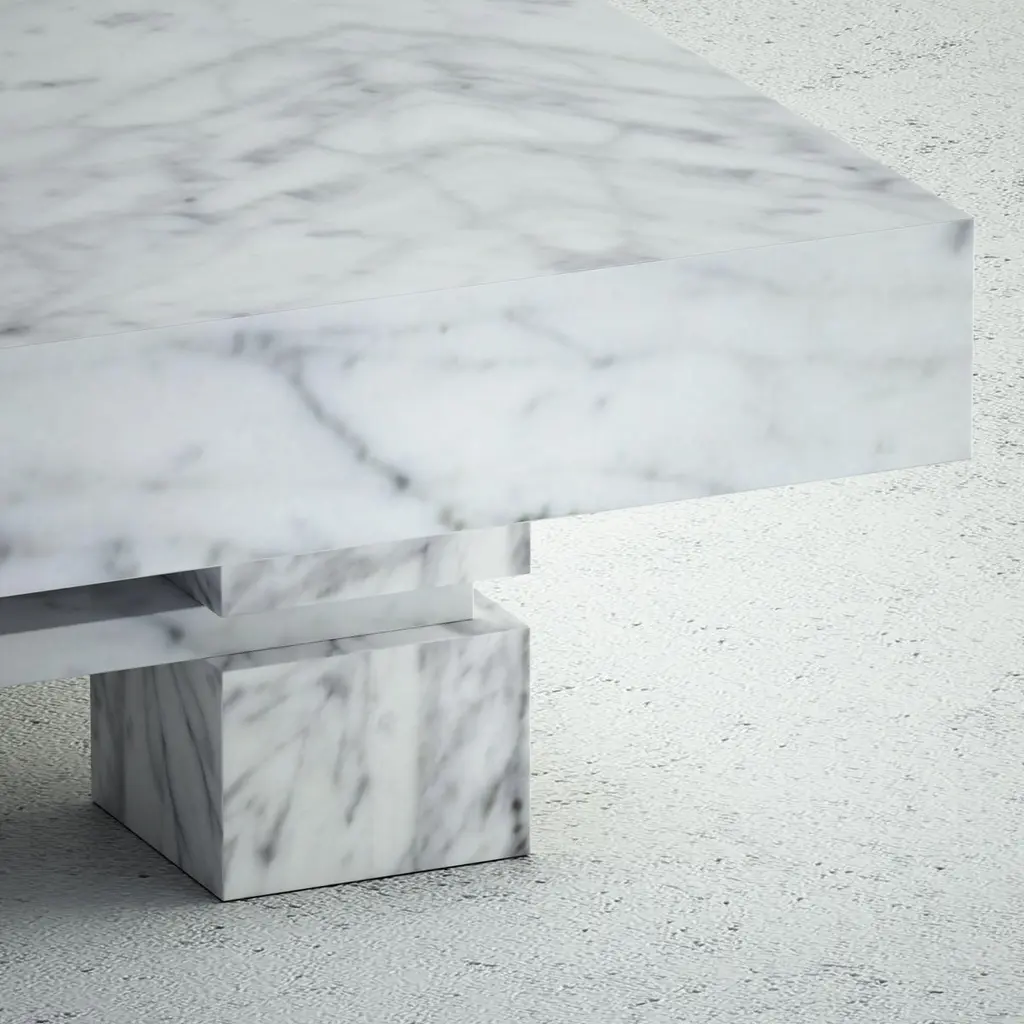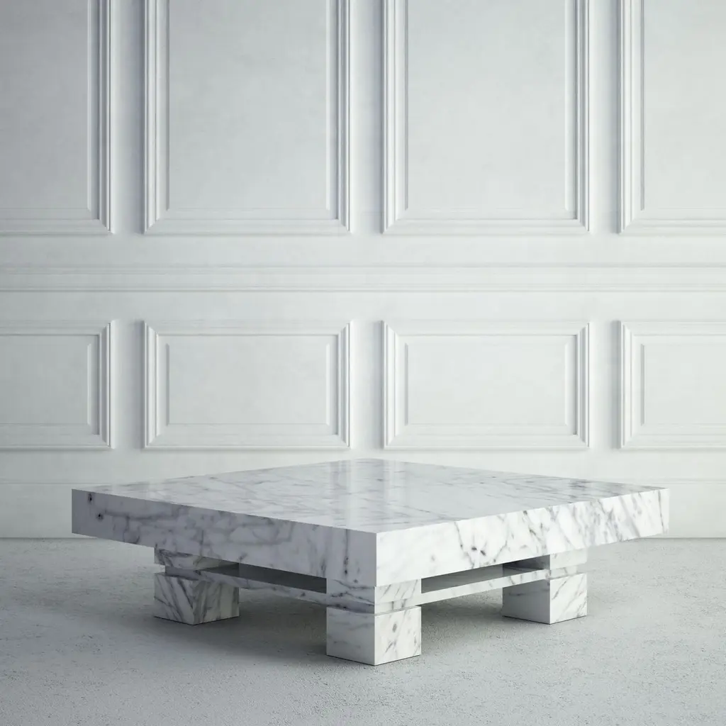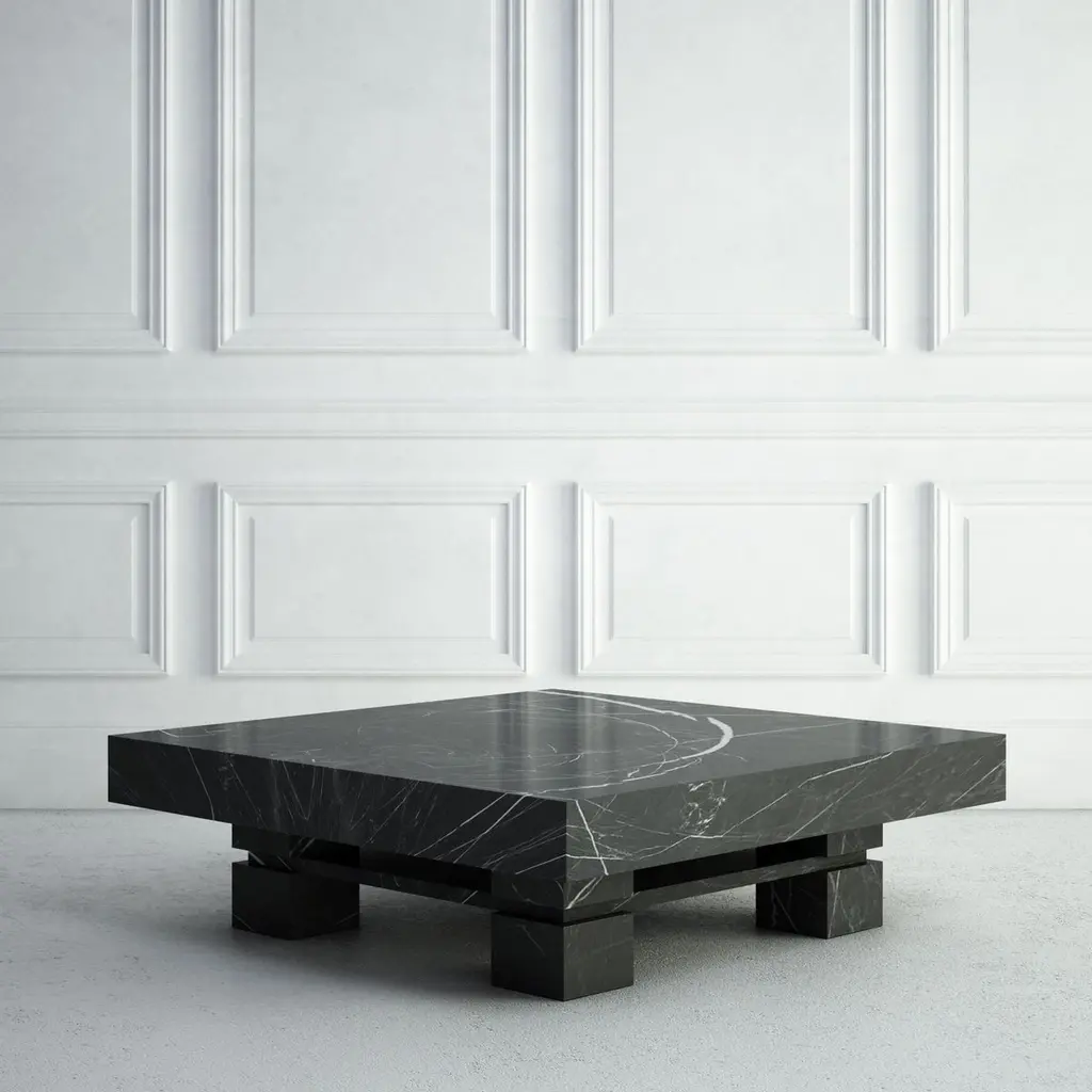 The Elodie: A Modern Stone Coffee Table With A Square Top And Four Square Bases