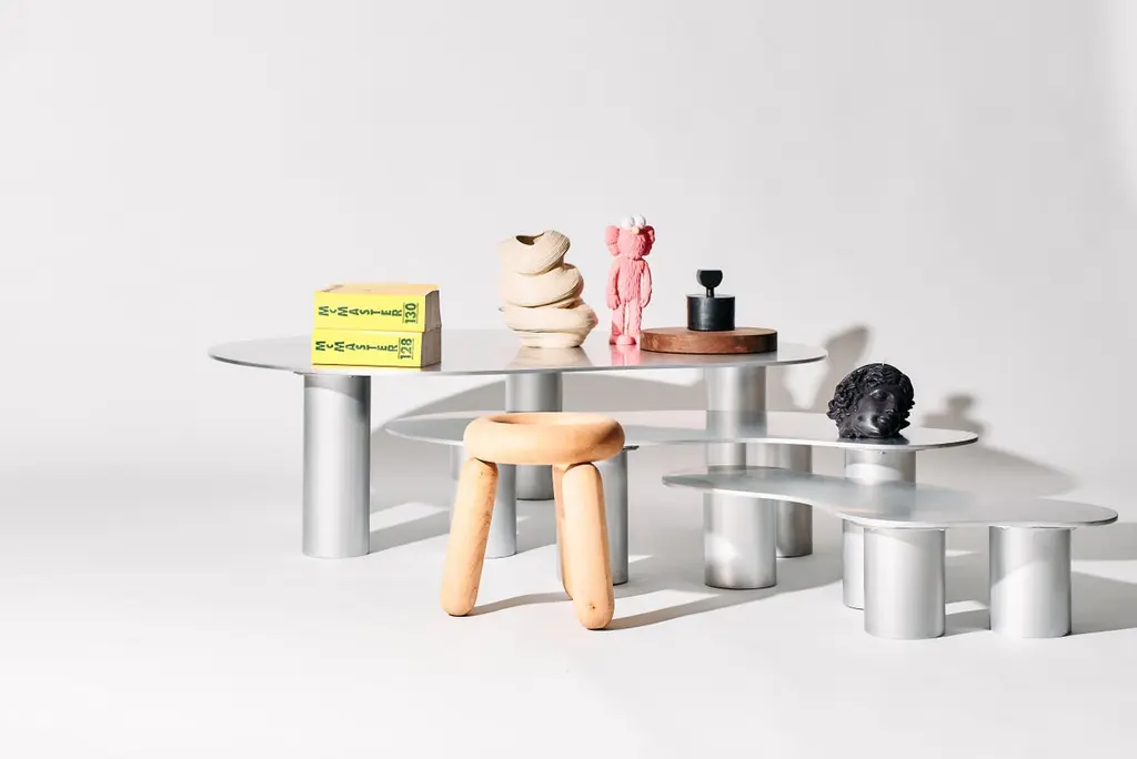 The Puddle Table Collection - Large Aluminum Coffee Table With Cylinder Legs