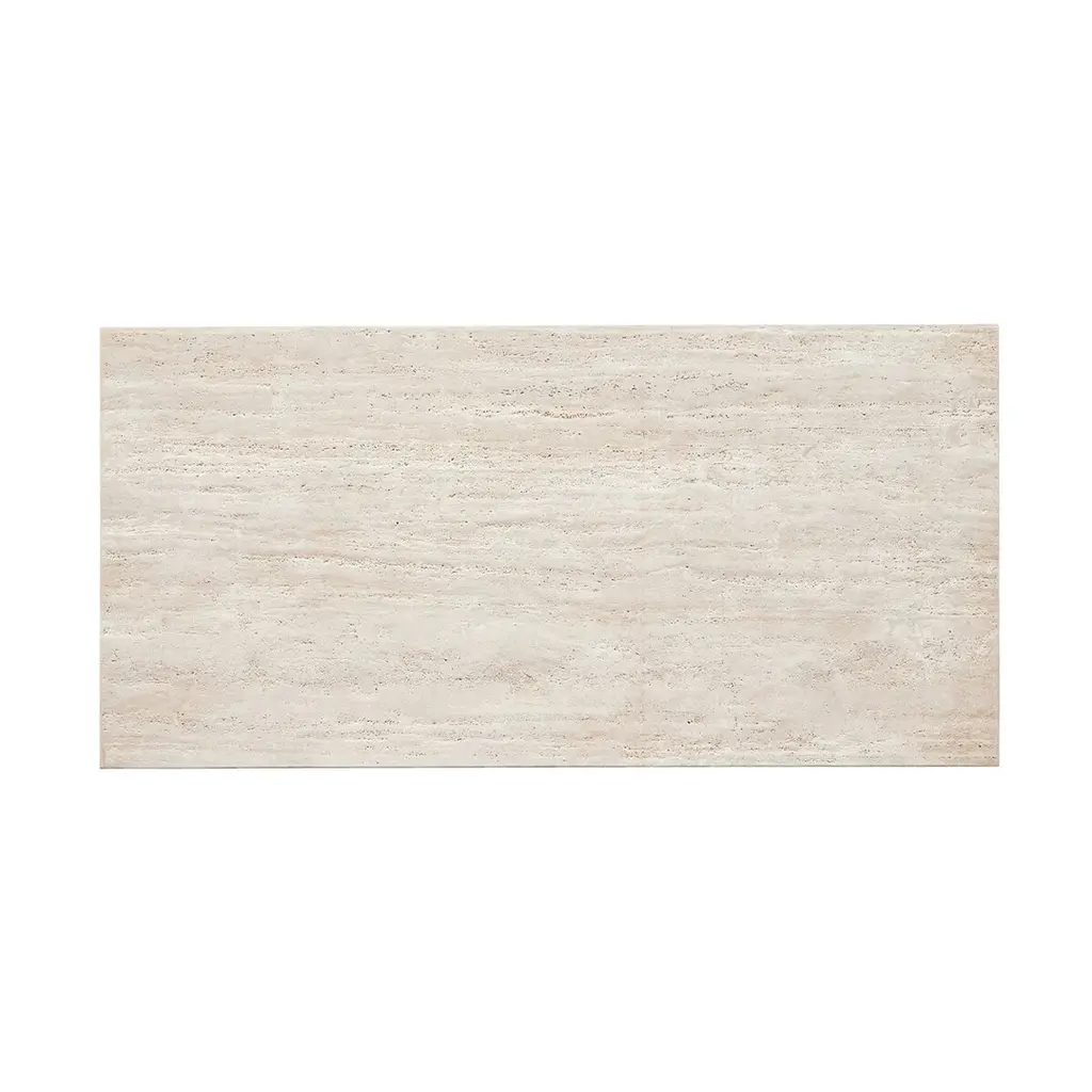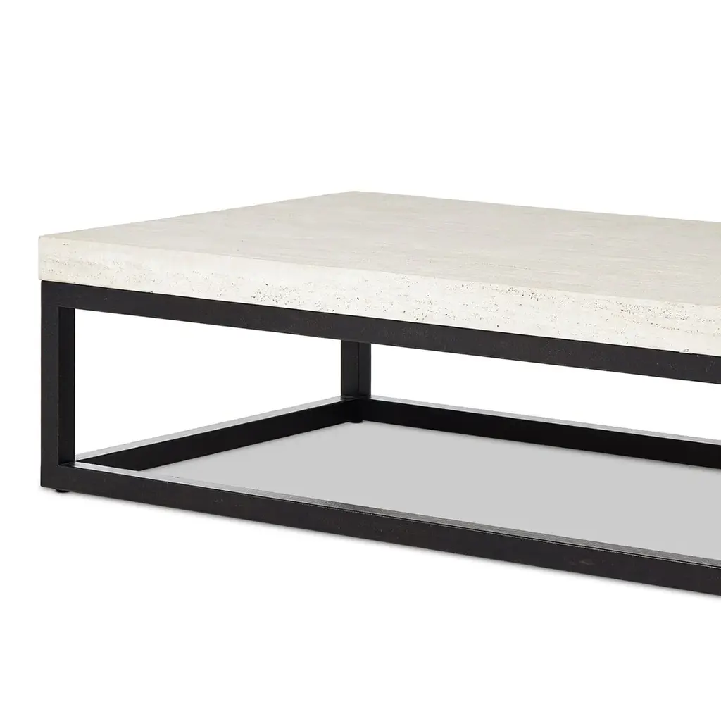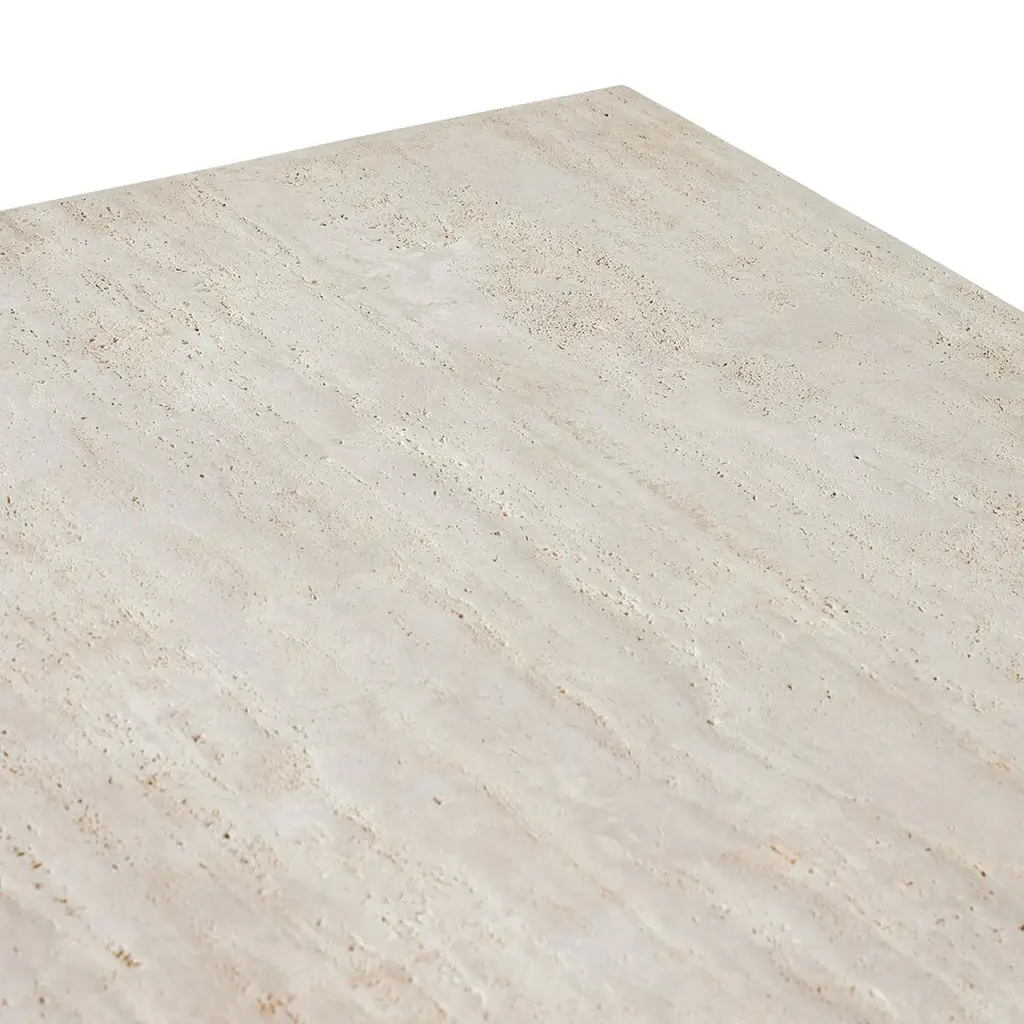 Airy while substantial, for an intriguing balance of scale. Bronzed iron forms an open, angular frame for a rectangular tabletop of solid white travertine. By the makers at Van Thiel, known for their antique-inspired pieces and hand-applied finishes. Ships In 10-14 Business Days Bronzed iron base Travertine marble top This image is for illustrative purposes only. The colors shown are accurate within the constraints of lighting, photography, and the color accuracy of your screen.