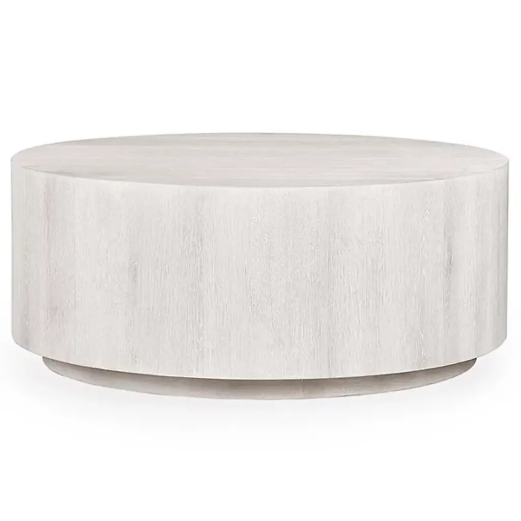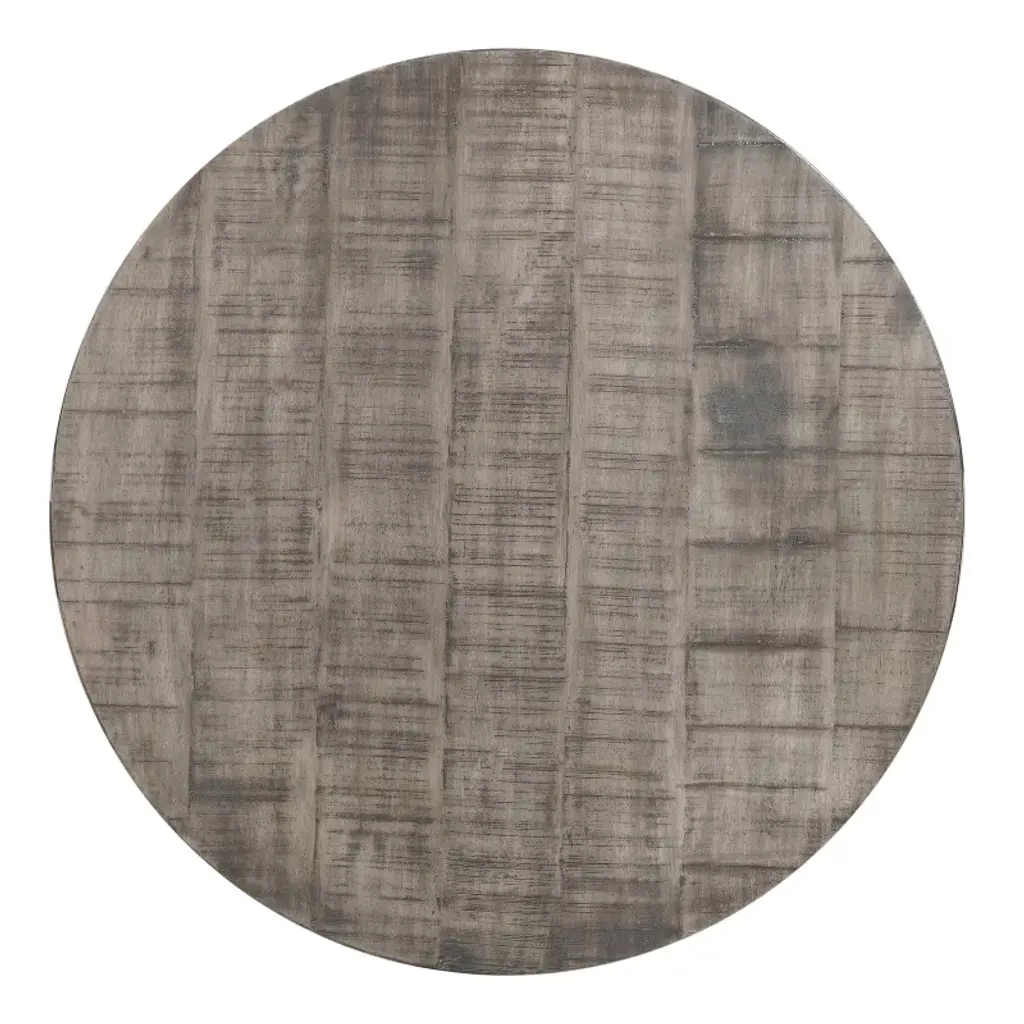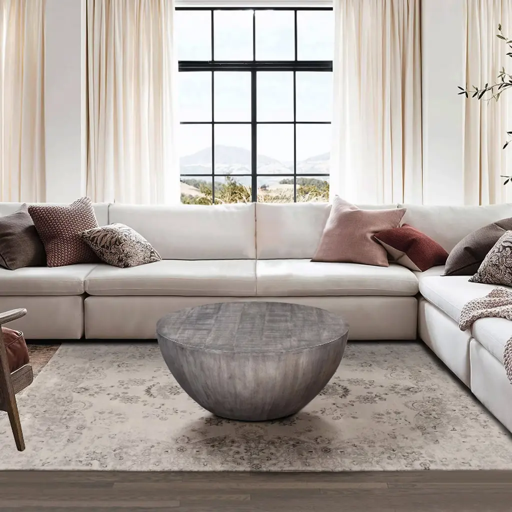 Whether at the foot of your sofa or rounding out a spacious living room, this handcrafted wooden round coffee table is a crucial piece for elevating with your living ensemble whether it is modern rustic or contemporary in style. The perfect place to enjoy coffee and a snack, to entertain guests, or simply to spend relaxing evenings with family and friends, this table has naturalistic wood grain details in a warm olive gray tone with a rustic vintage finish. Its smooth round top is roomy enough for ample decorations, and the attached levelers protect the floor from being scraped while keeping great balance. This is the perfect piece for renewing your social space and for casually resting drinks on a calm Sunday afternoon.