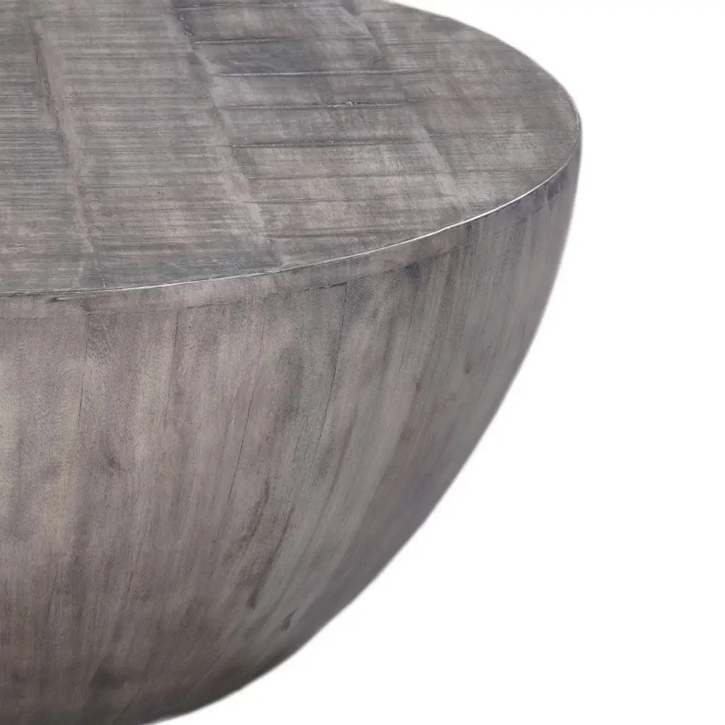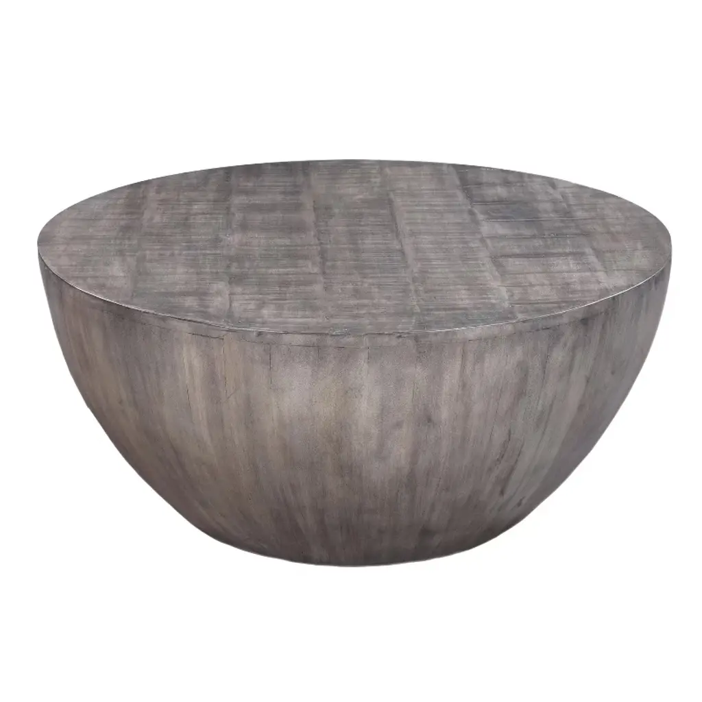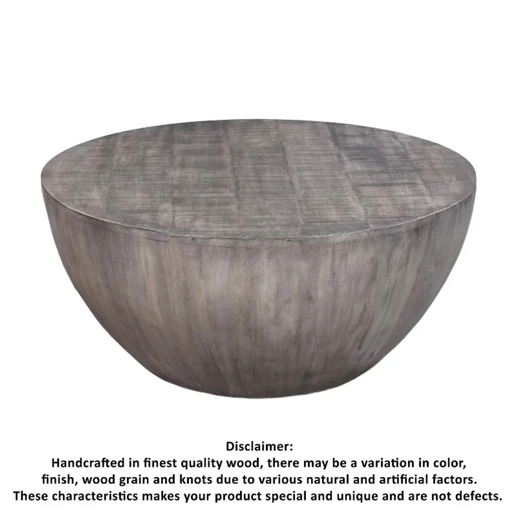 The Urban Port 36" Round Drum Shaped Handcrafted Mango Wood Coffee Table Olive Gray