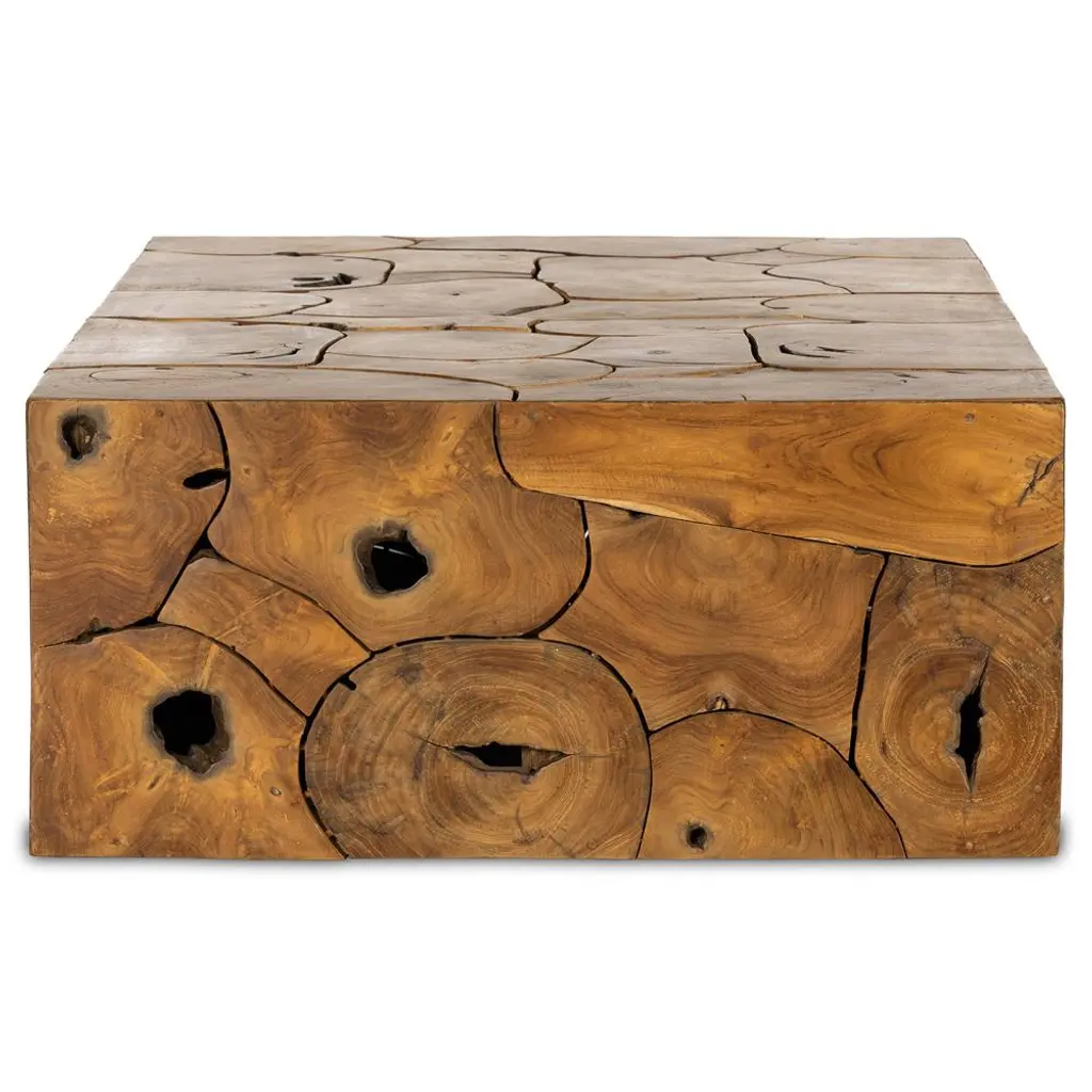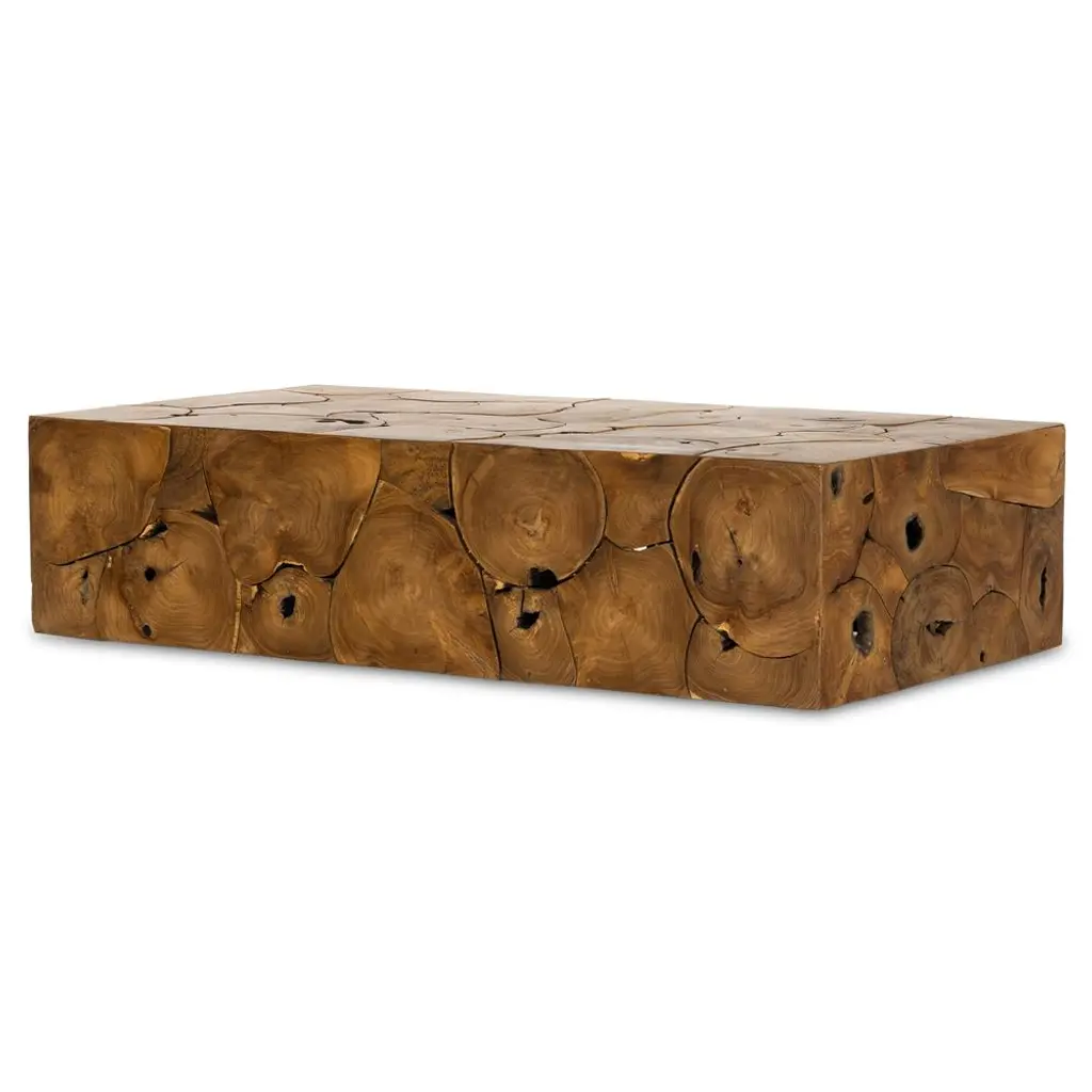 Thorn Mid Century Modern Natural Teak Rectangular Block Outdoor Coffee Table
