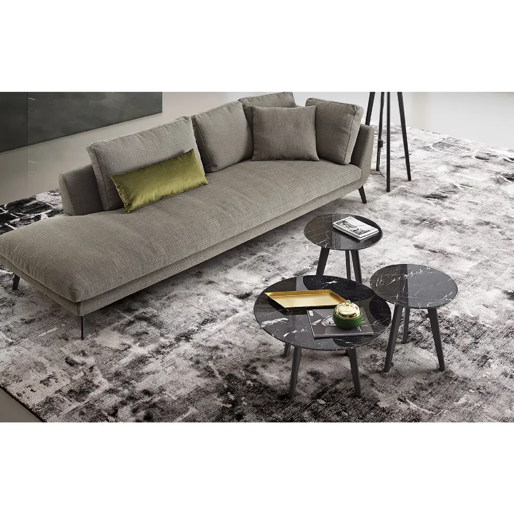Introducing the Three-Legged Round Coffee Table from Dema Edgar. Crafted with a metal frame in a rich dark brown finish, this table exudes luxury and sophistication. Choose from a variety of leg and top options, including marble, leather-covered wood, or birch veneer, to create a truly exclusive piece.